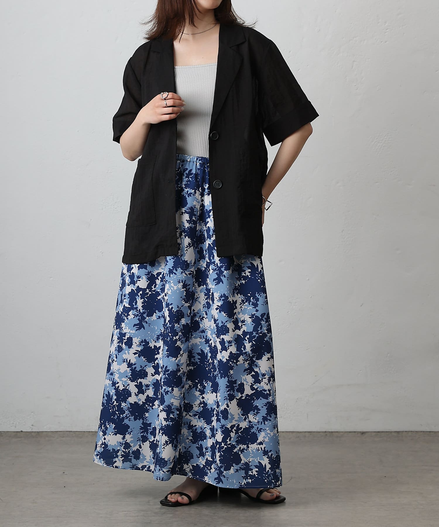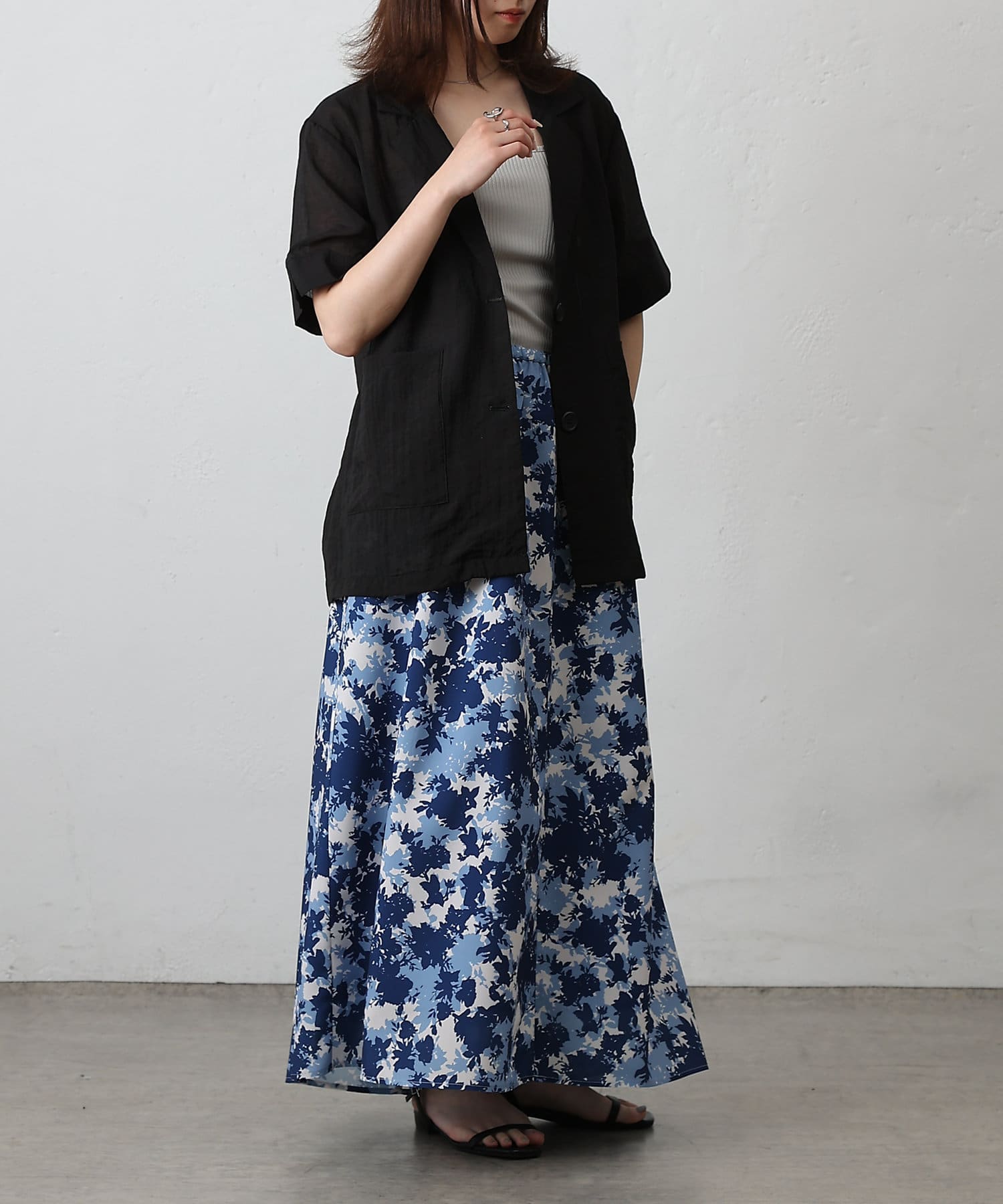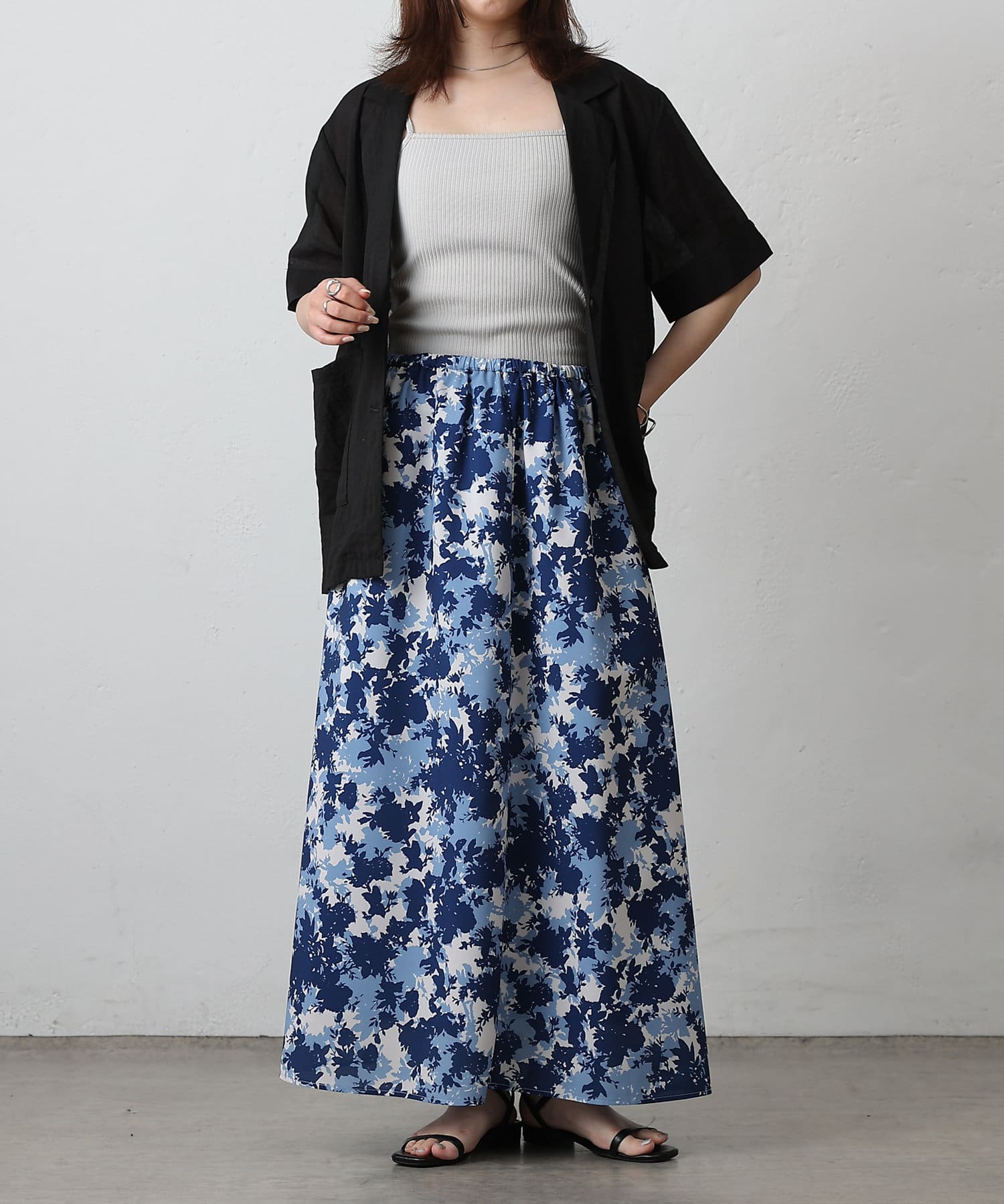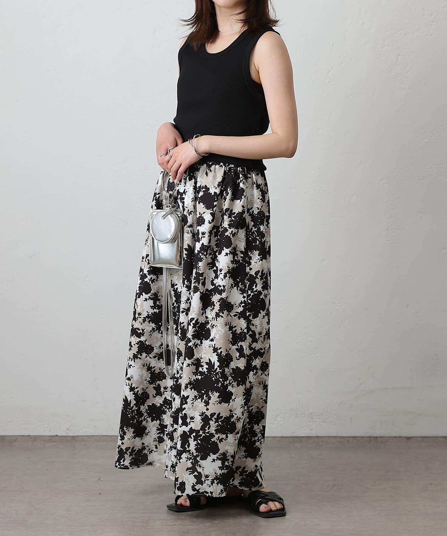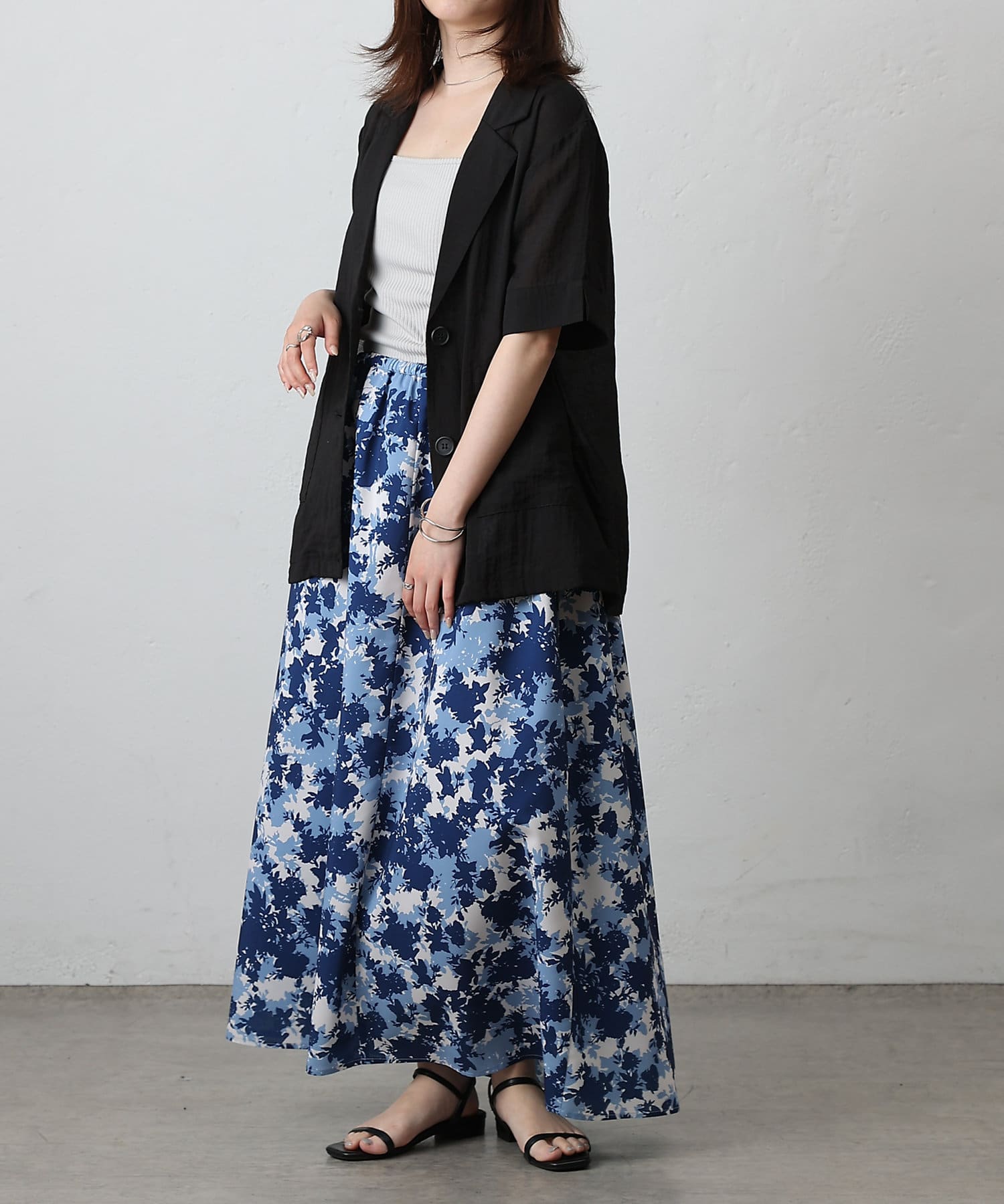 華やかなボタニカル柄プリントがコーディネートの主役になるフレアスカート。