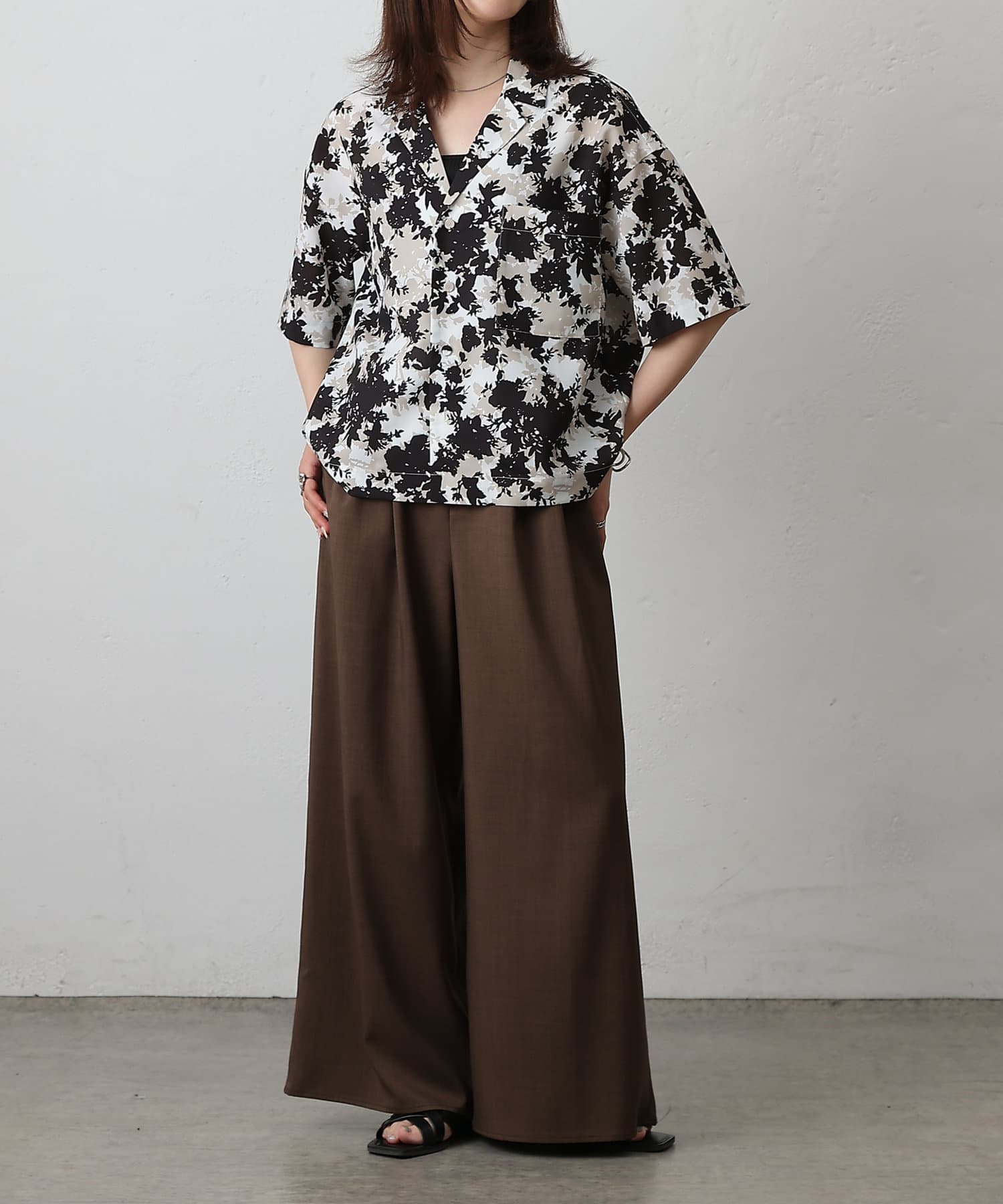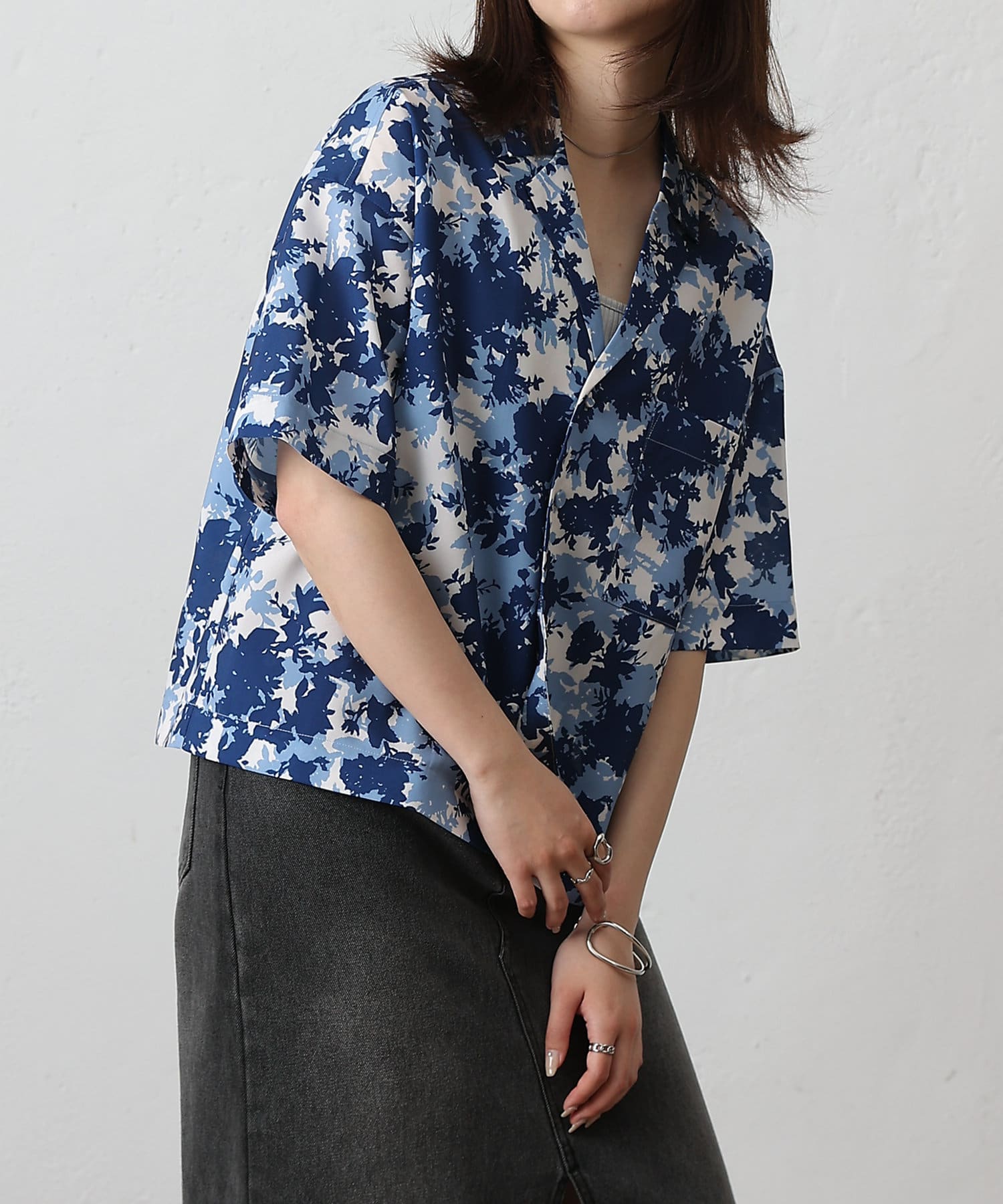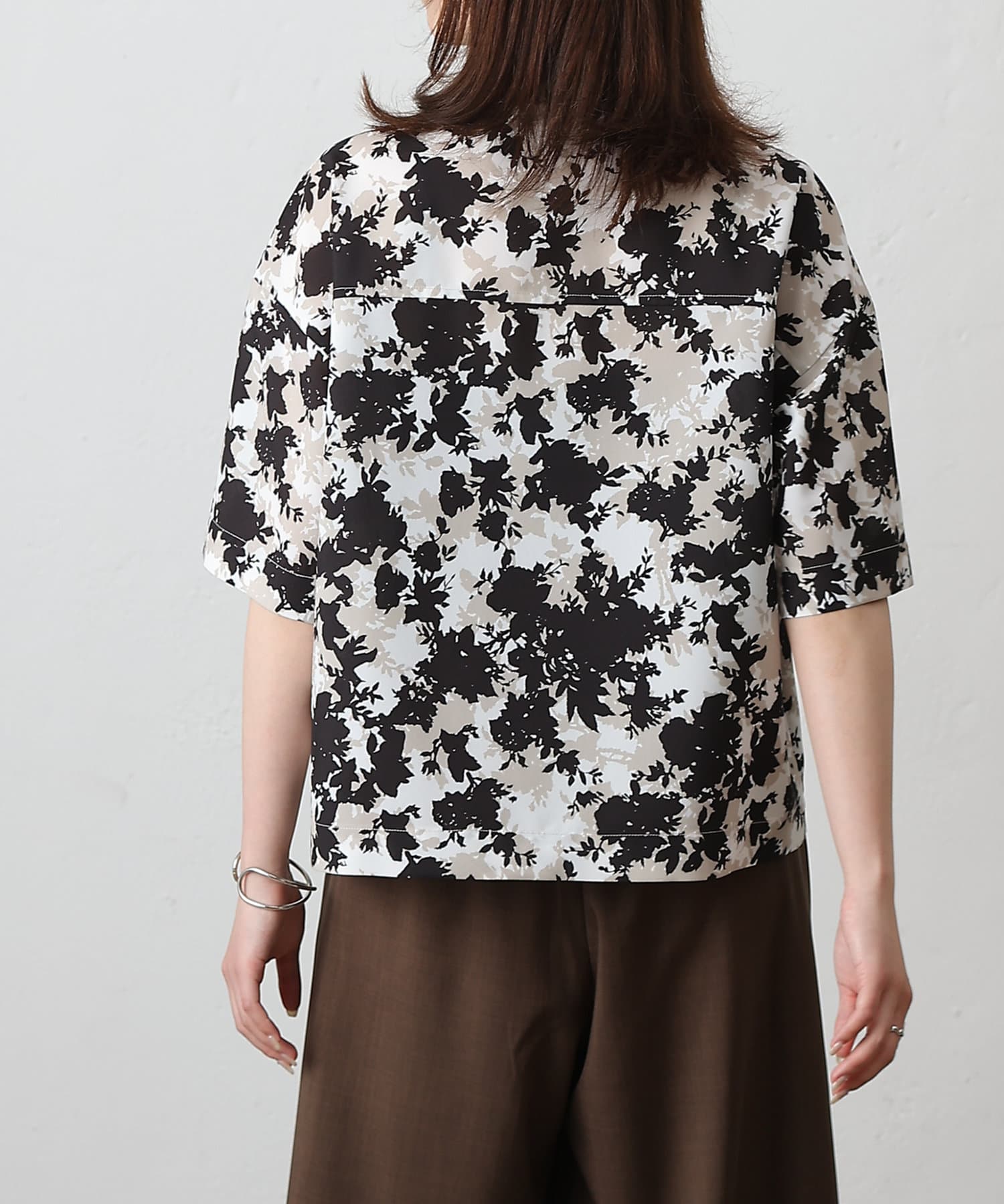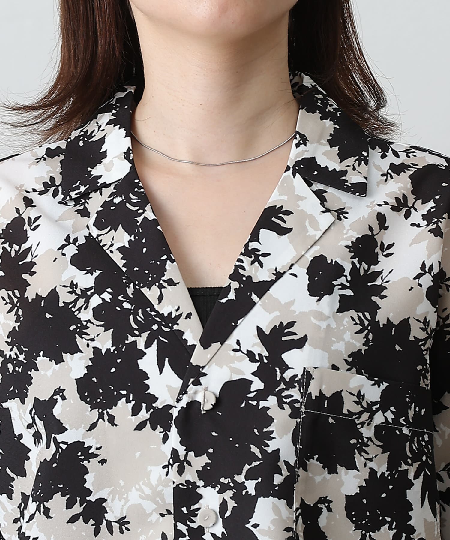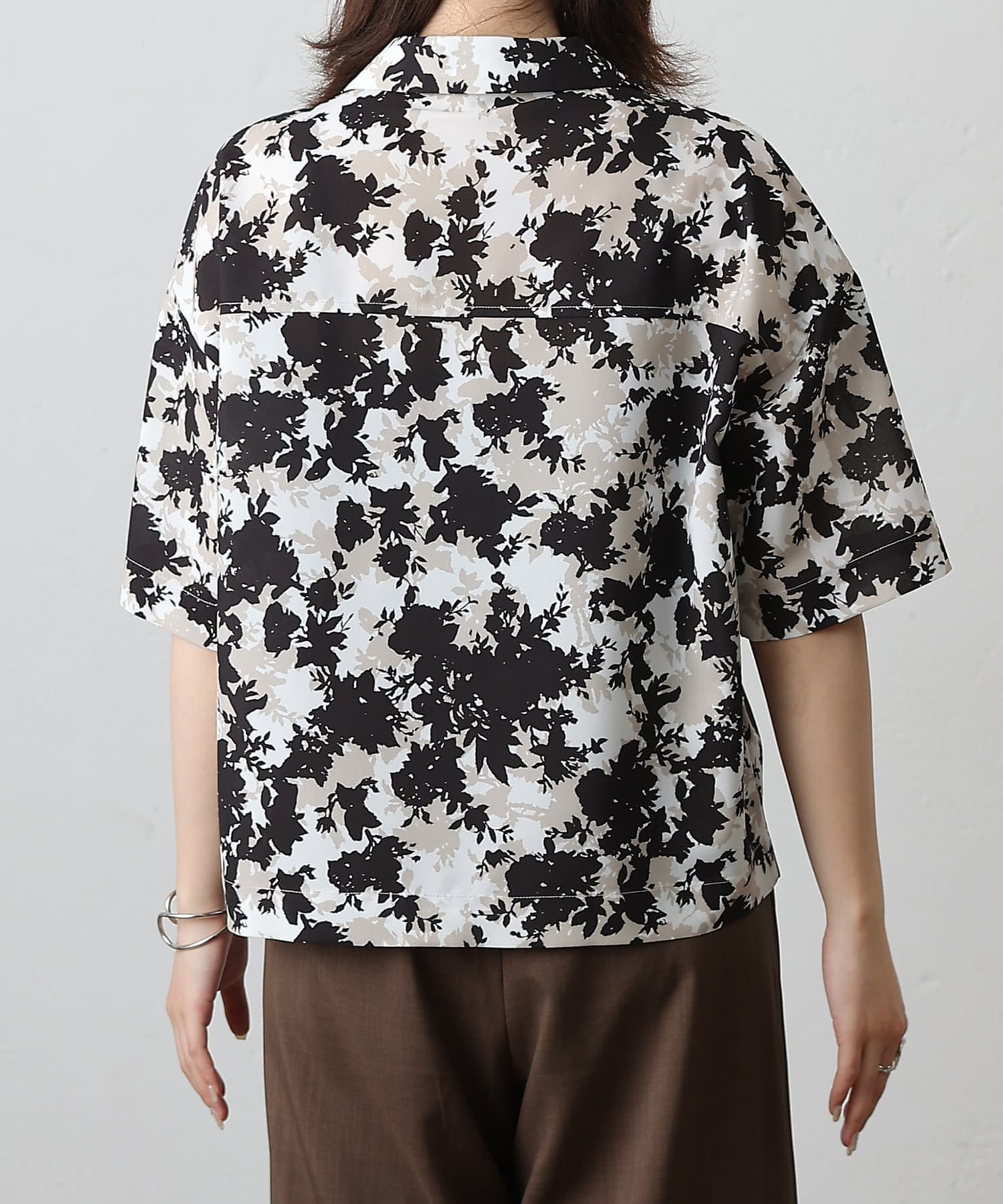 【華やかなボタニカル柄が目を惹く半袖開襟シャツ】