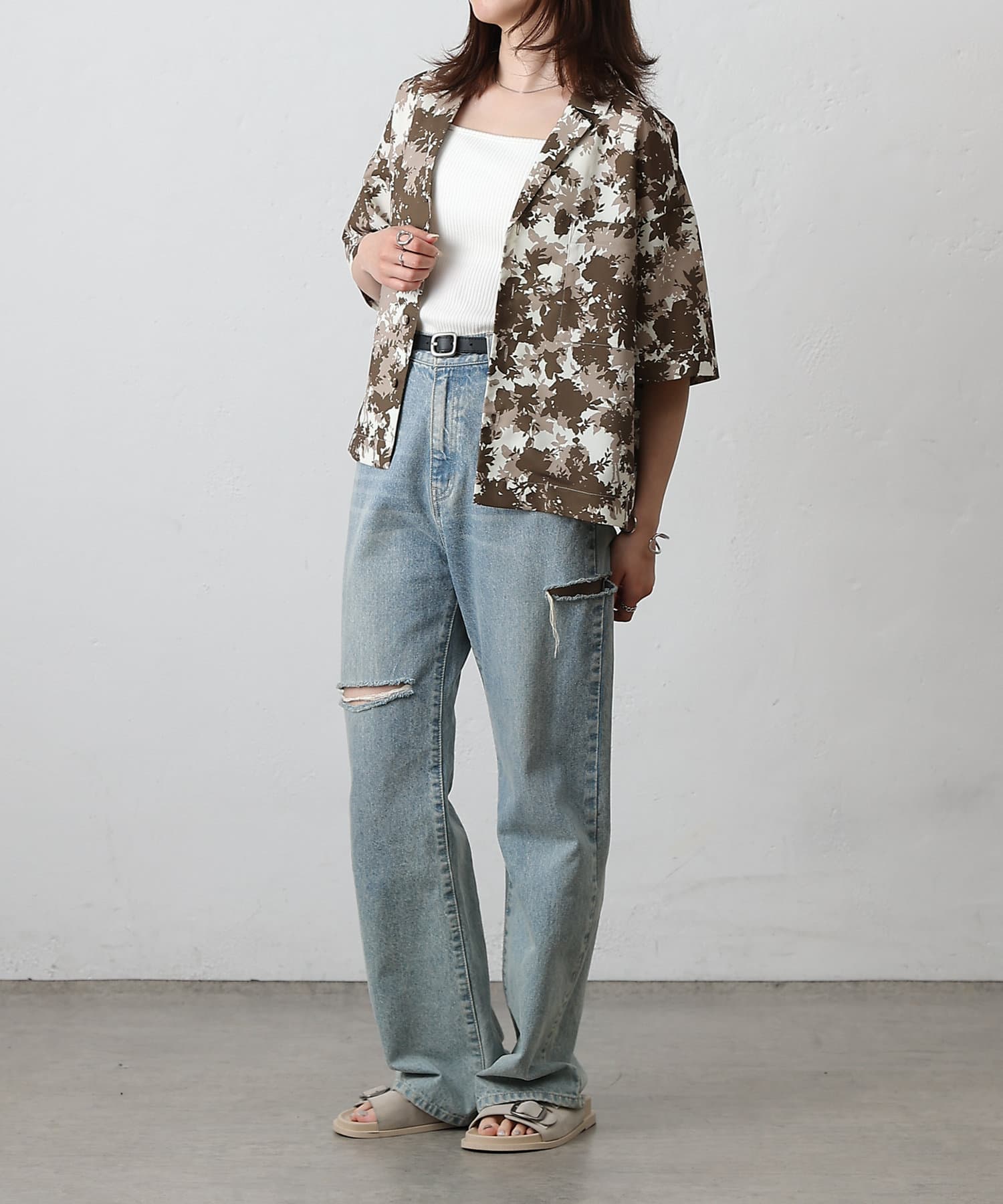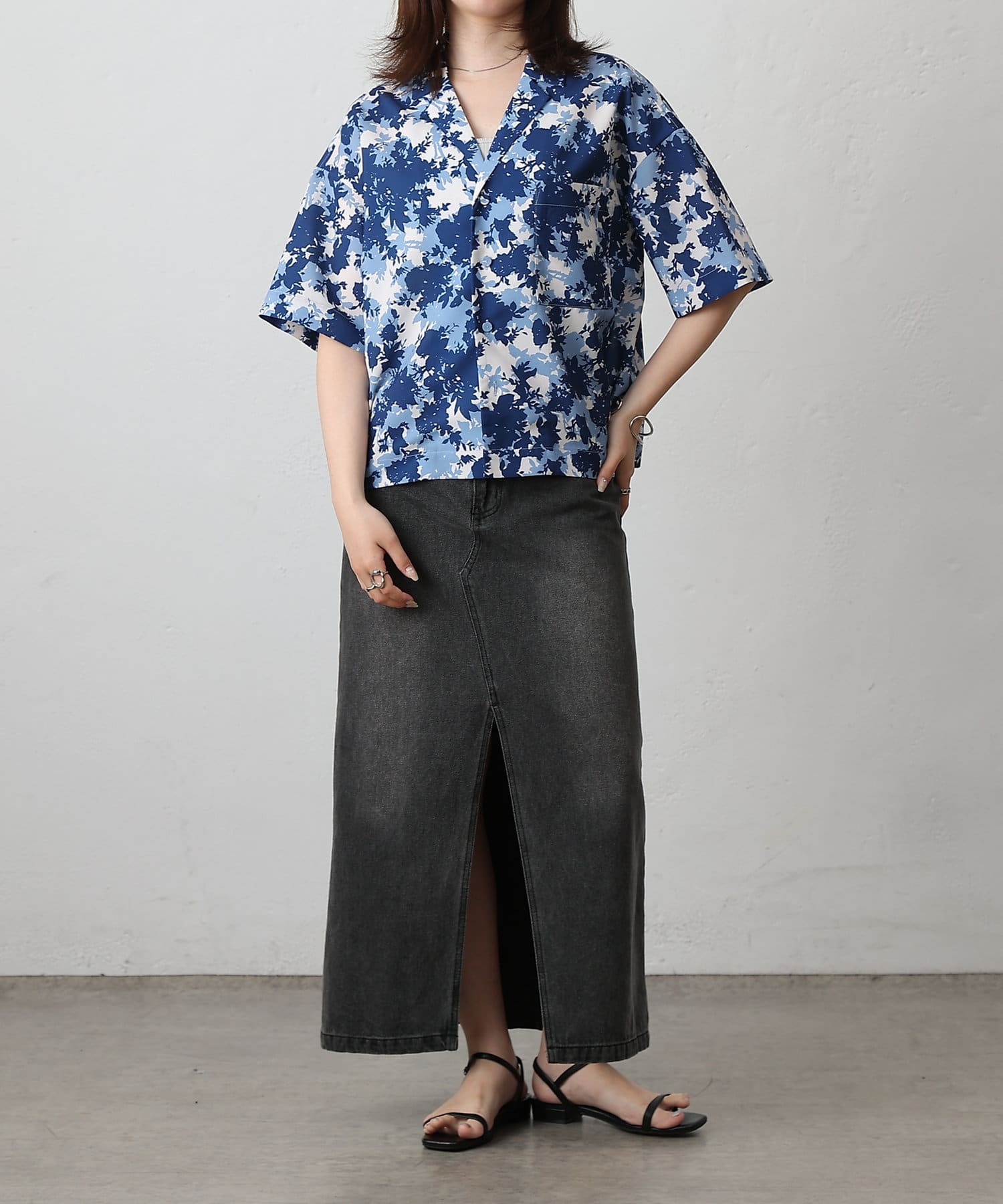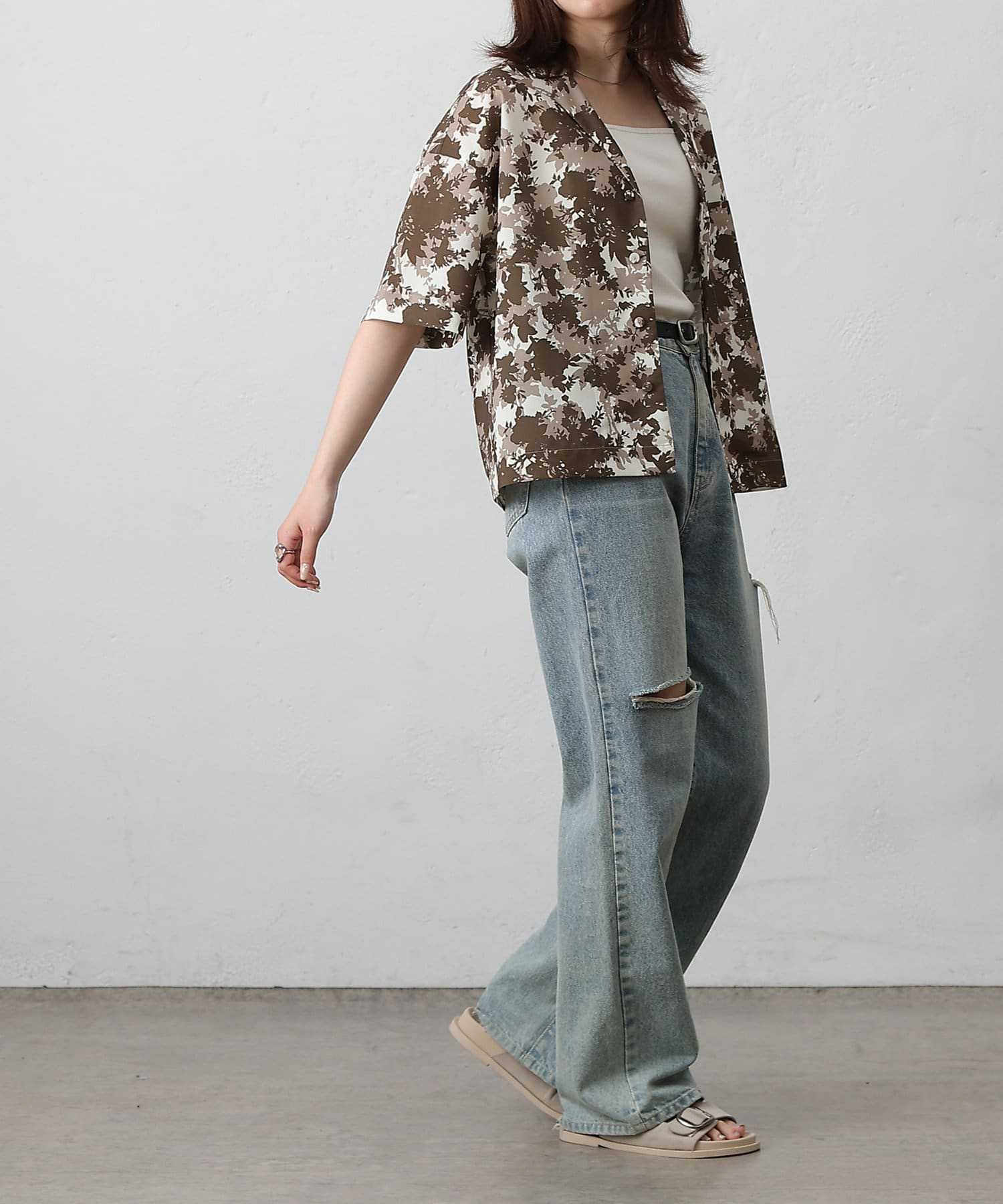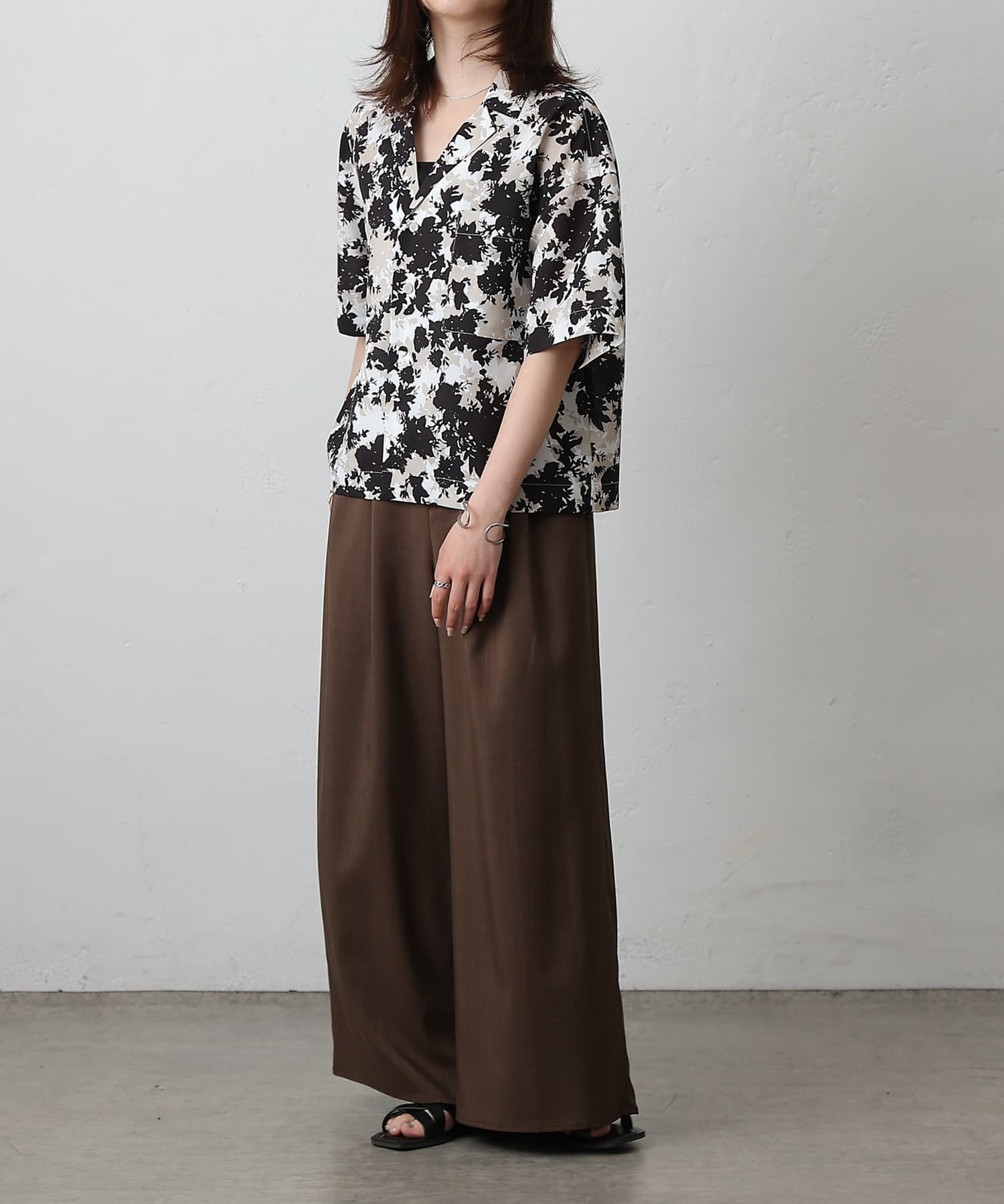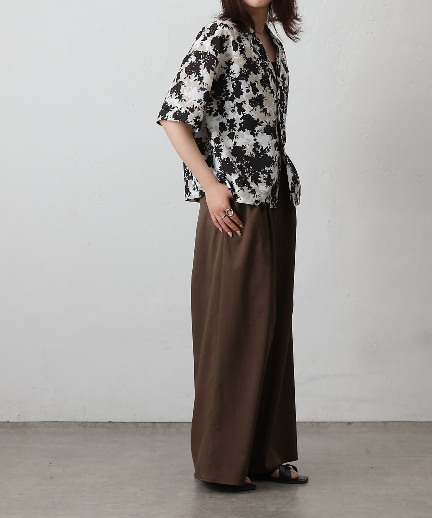 【華やかなボタニカル柄が目を惹く半袖開襟シャツ】