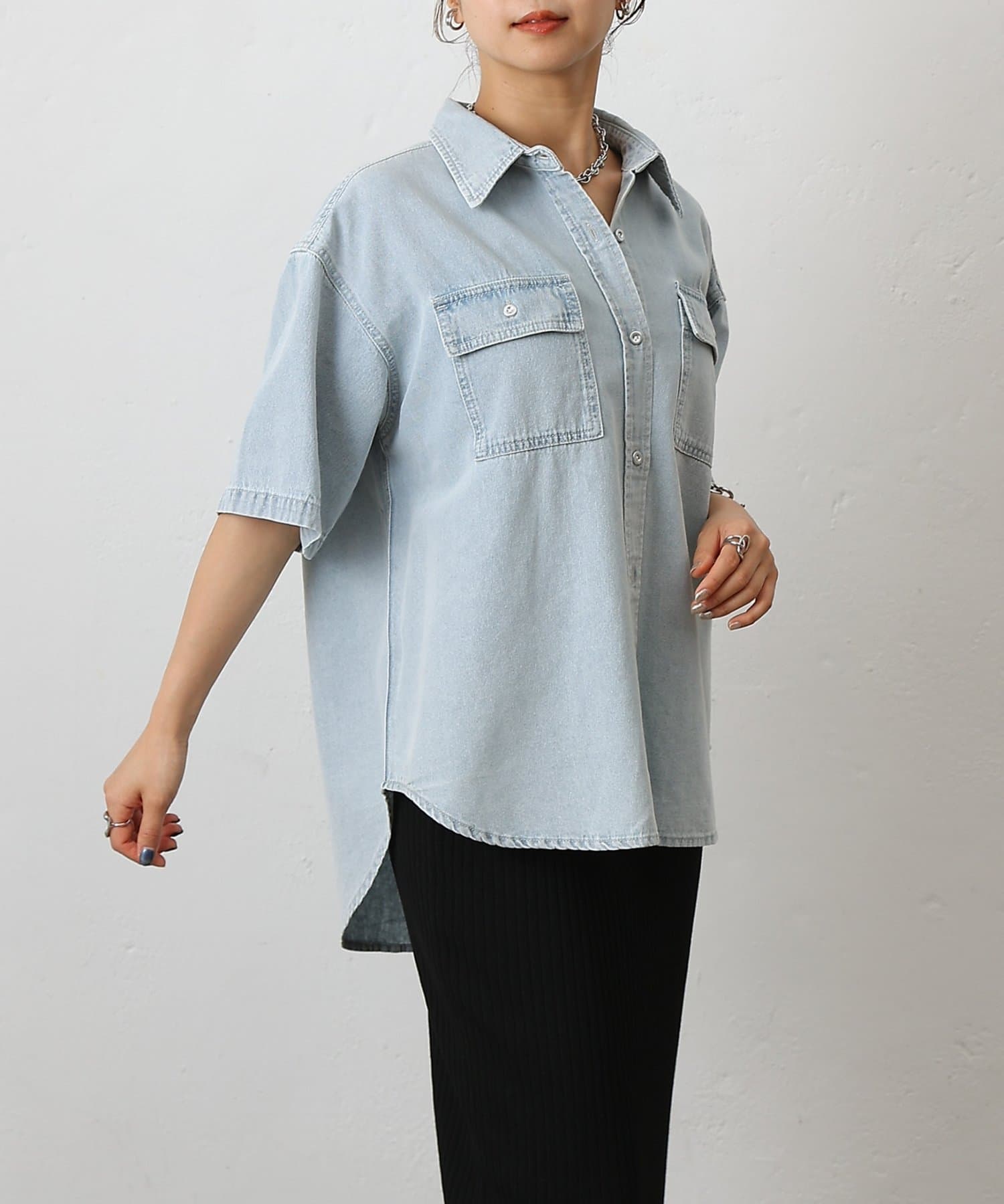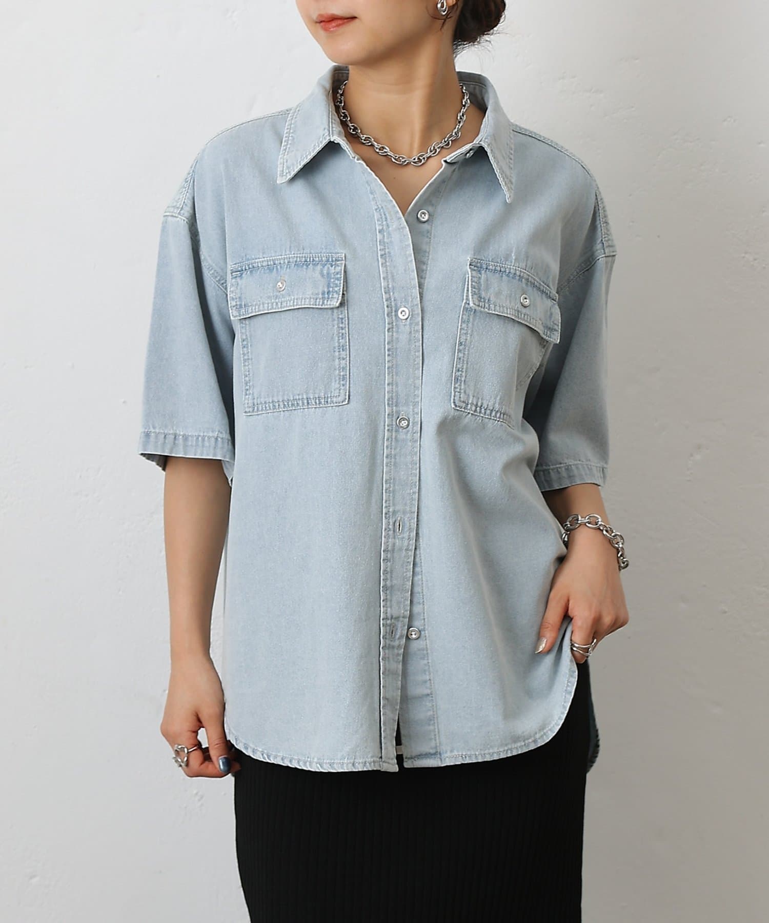 CWA1051604A0003 ライトオンスデニム短丈シャツ