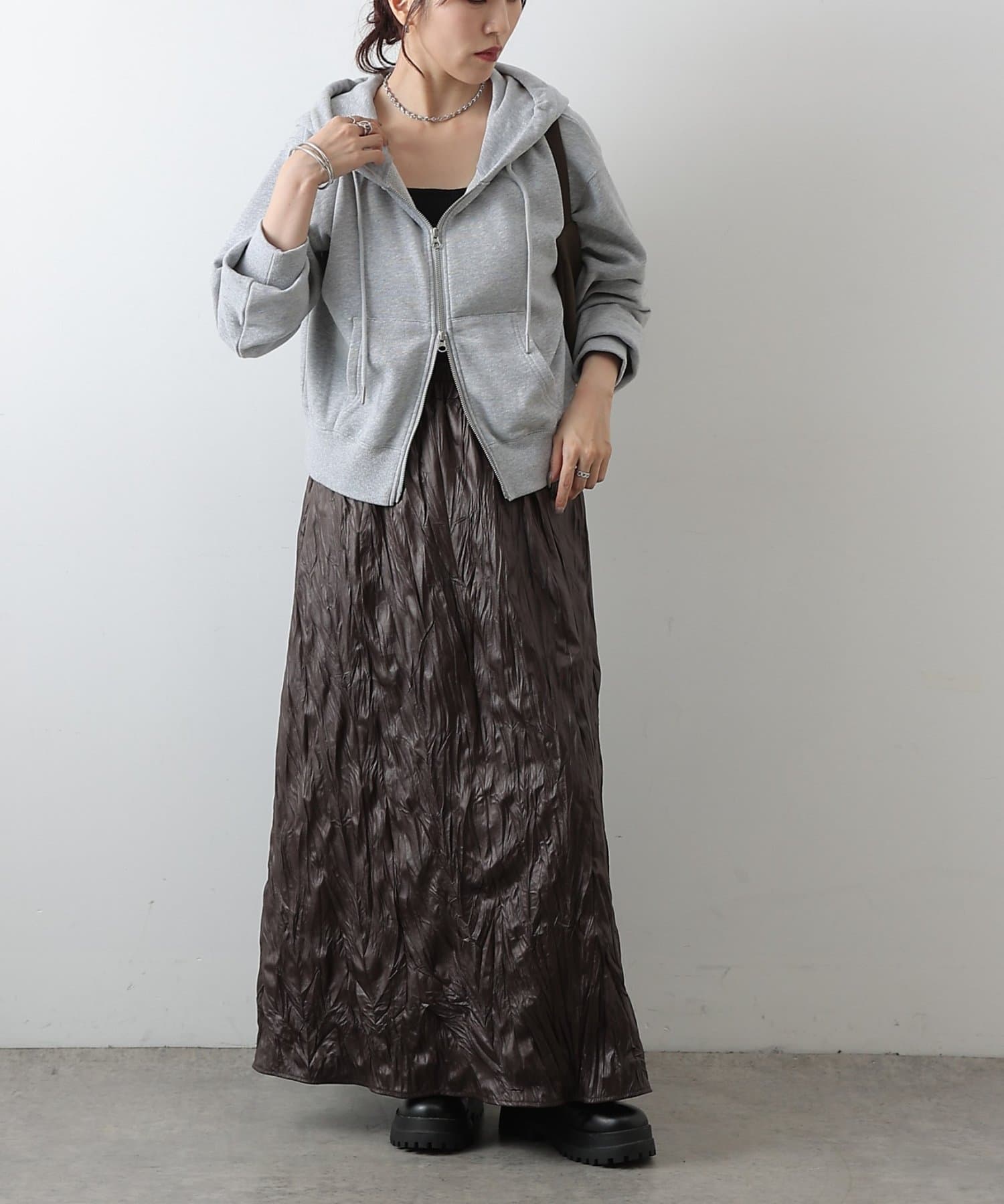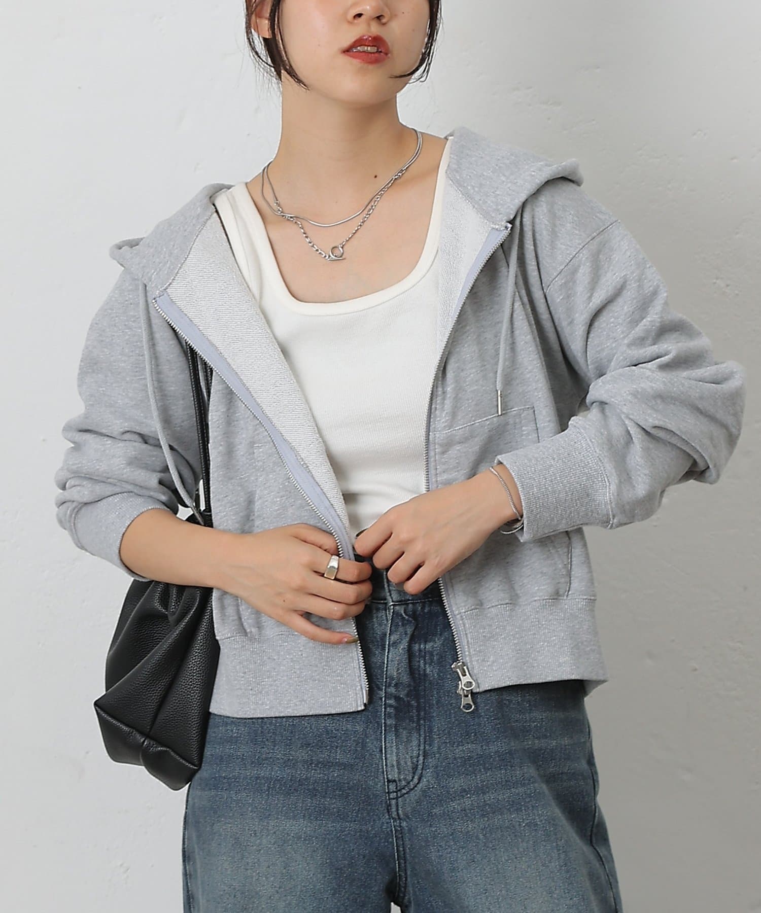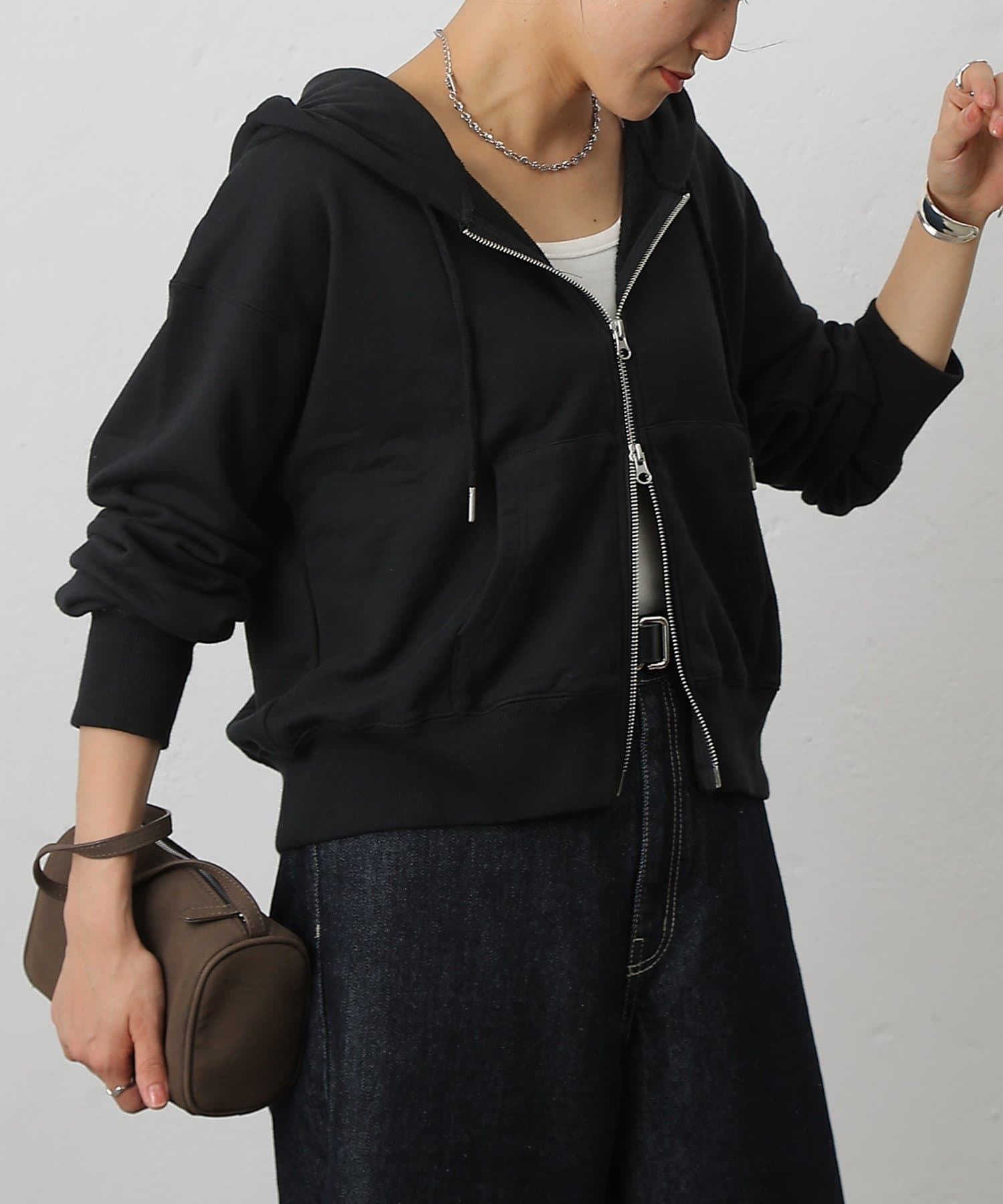 裾からインナーをチラ見せできるダブルジップ仕様は、レイヤードスタイルにも最適。