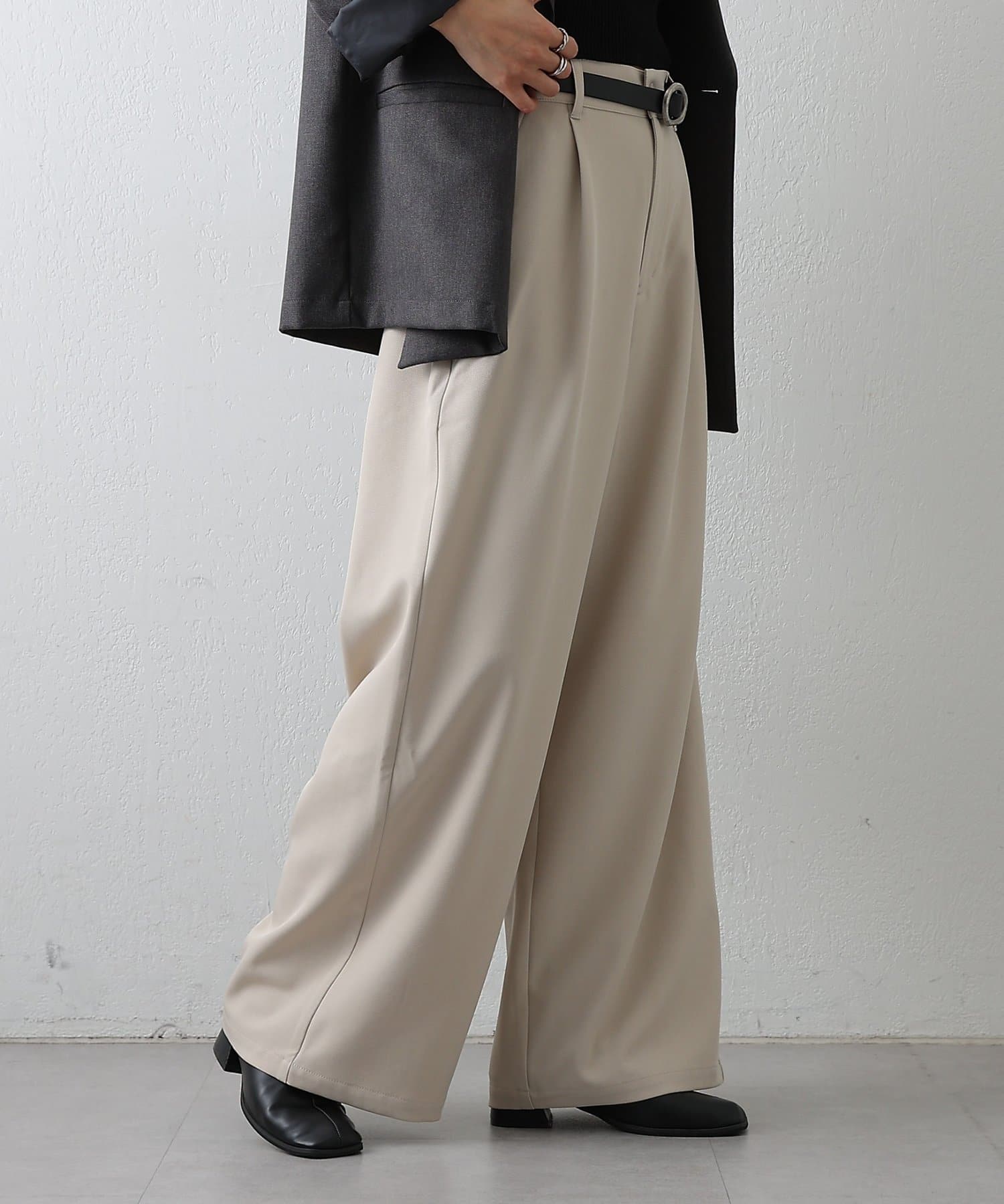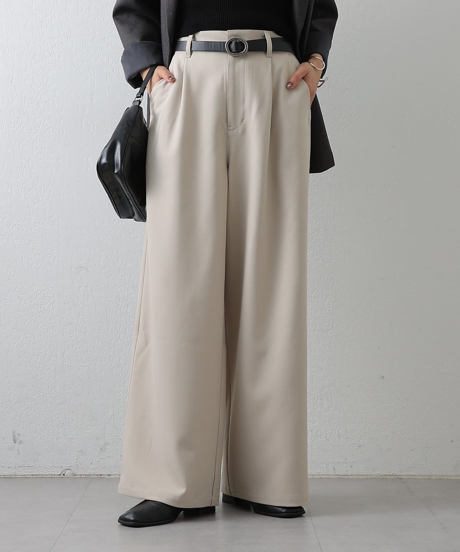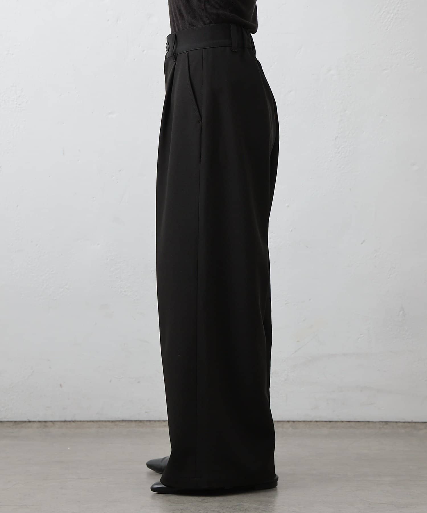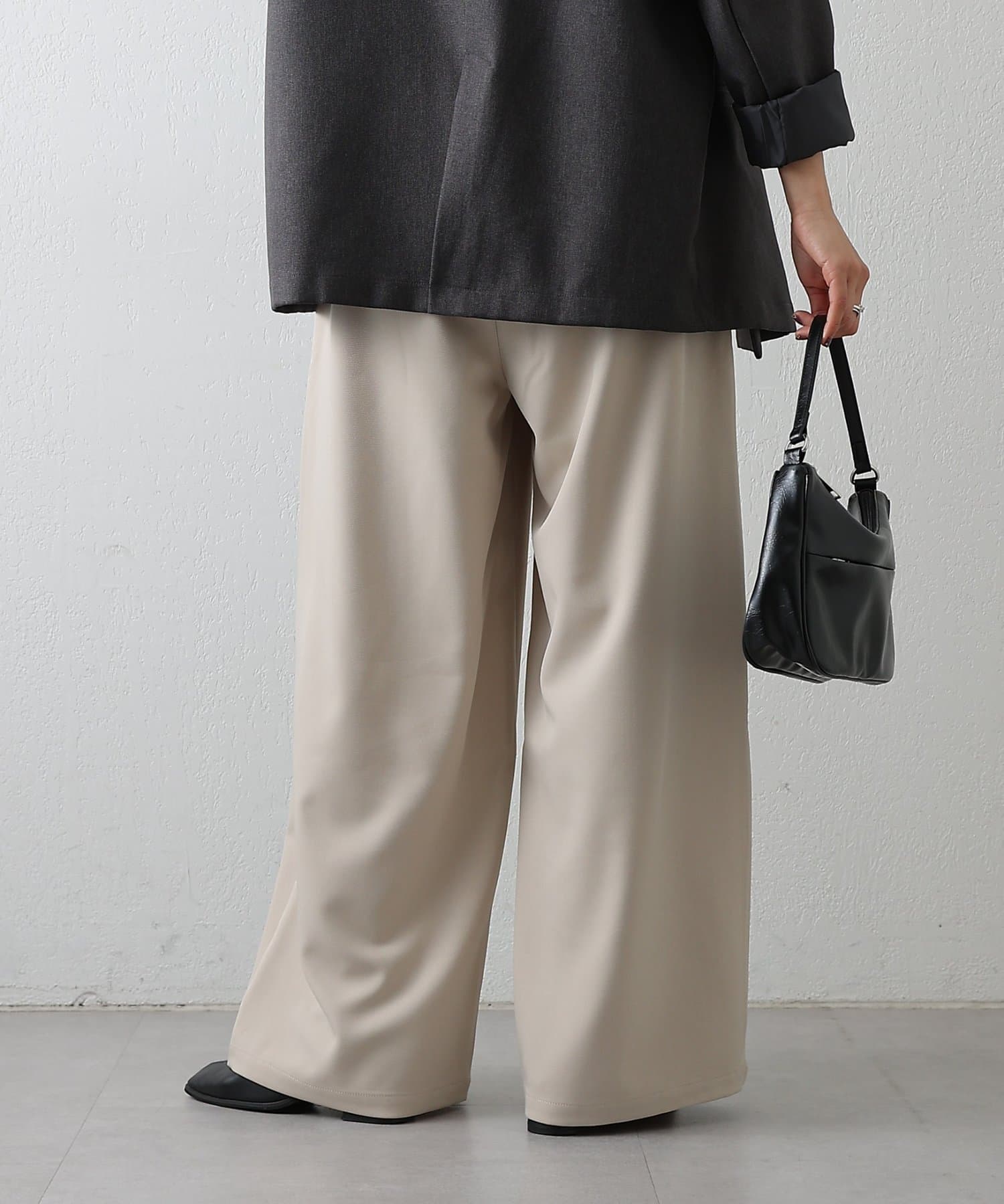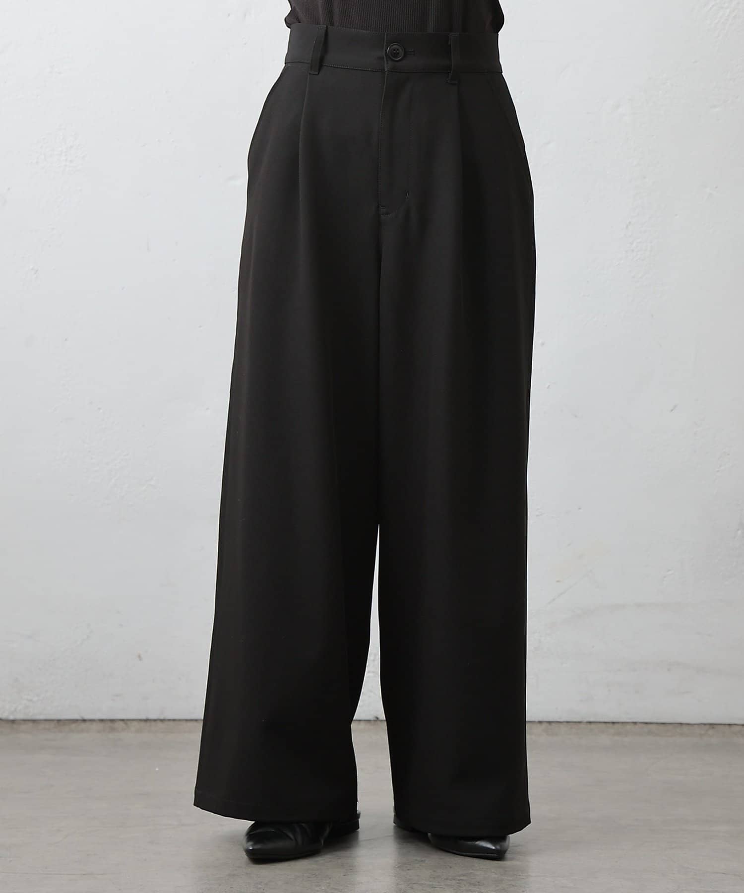 オンオフ問わず着回しの効く、万能ワイドスラックスです。