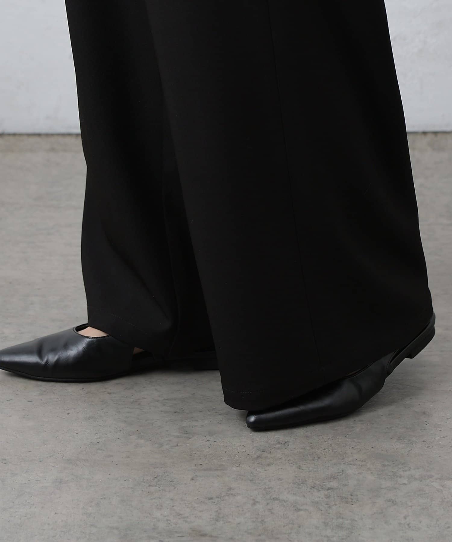 ほどよく厚みと落ち感のある生地が、脚のラインを拾わずきちんと感のある上品な印象を与えてくれます。