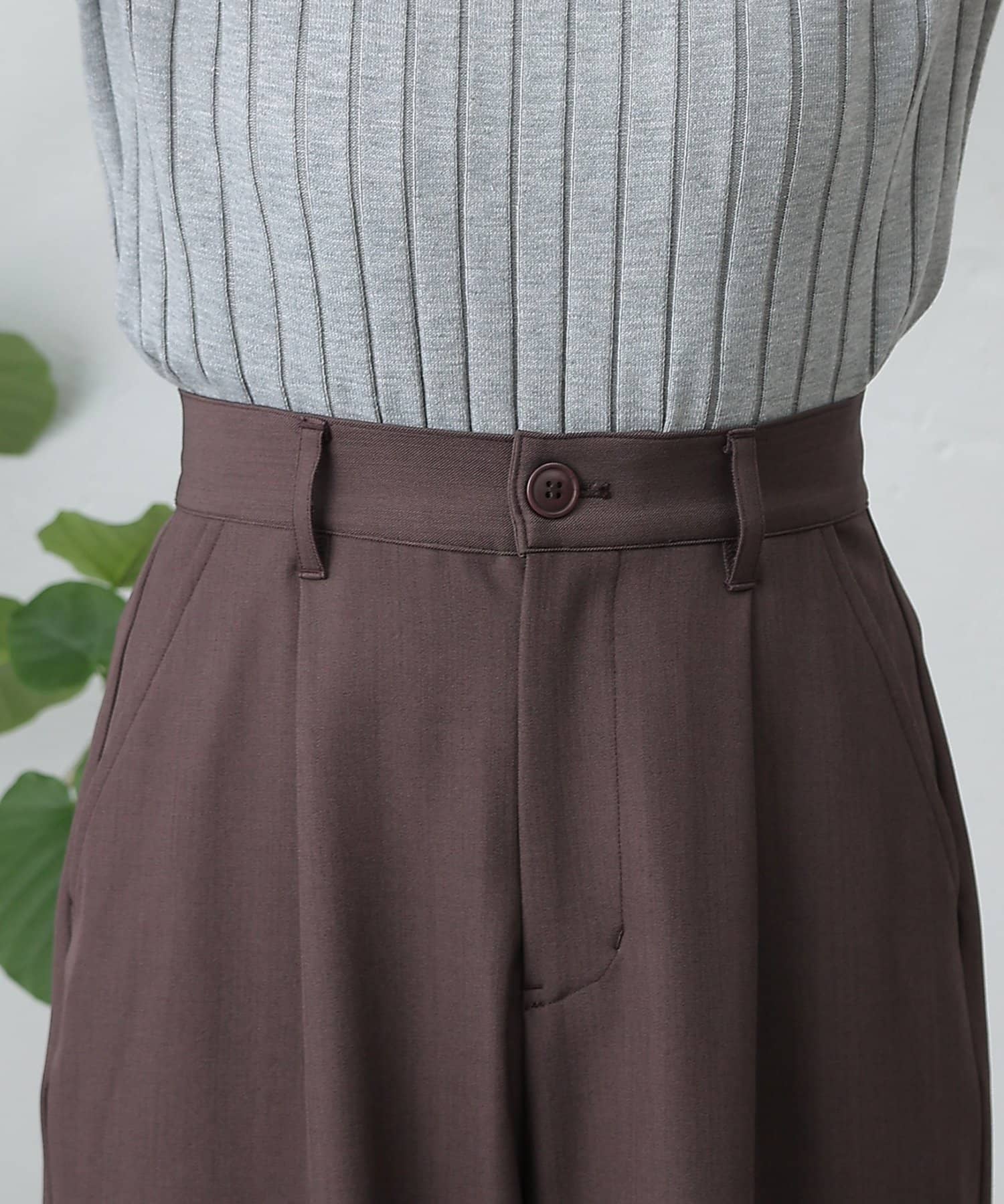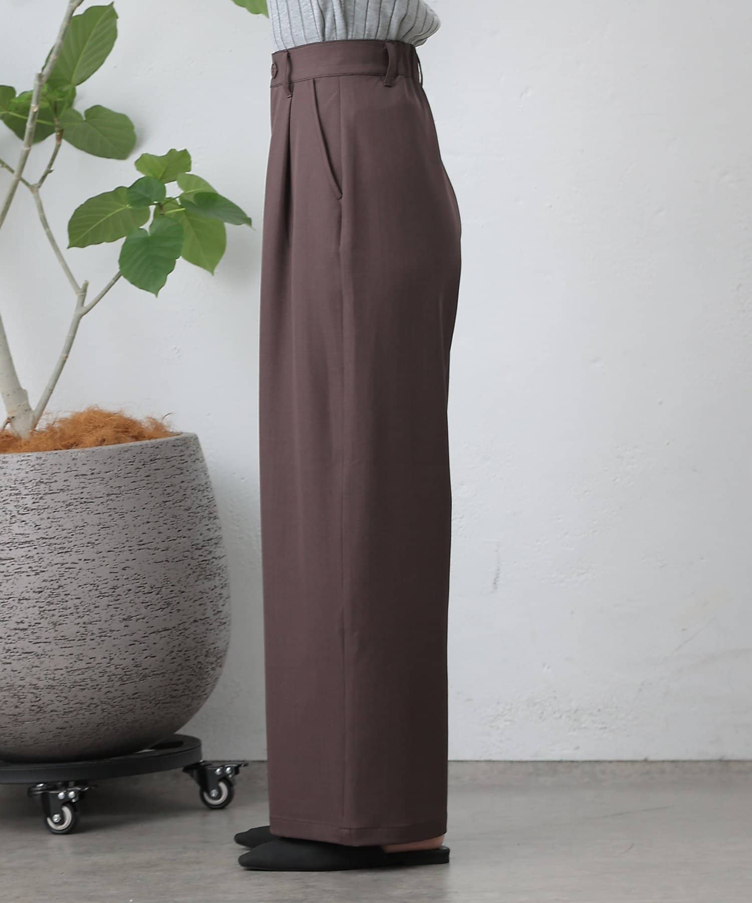 腰まわりにゆとりをもたせるワンタック仕様で、気になるラインをカバーしながらすとんと落ちるワイドシルエットが美しい一本。