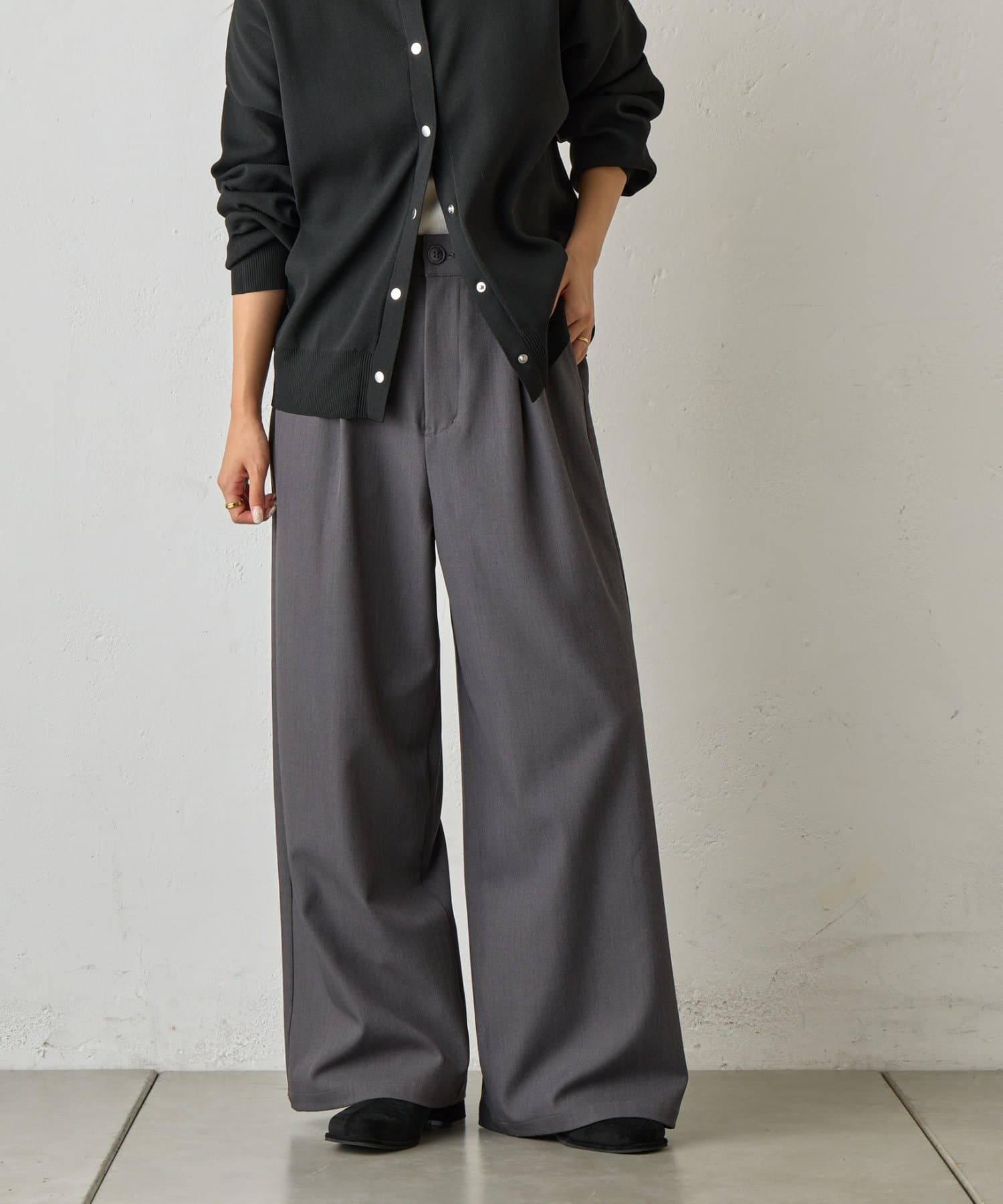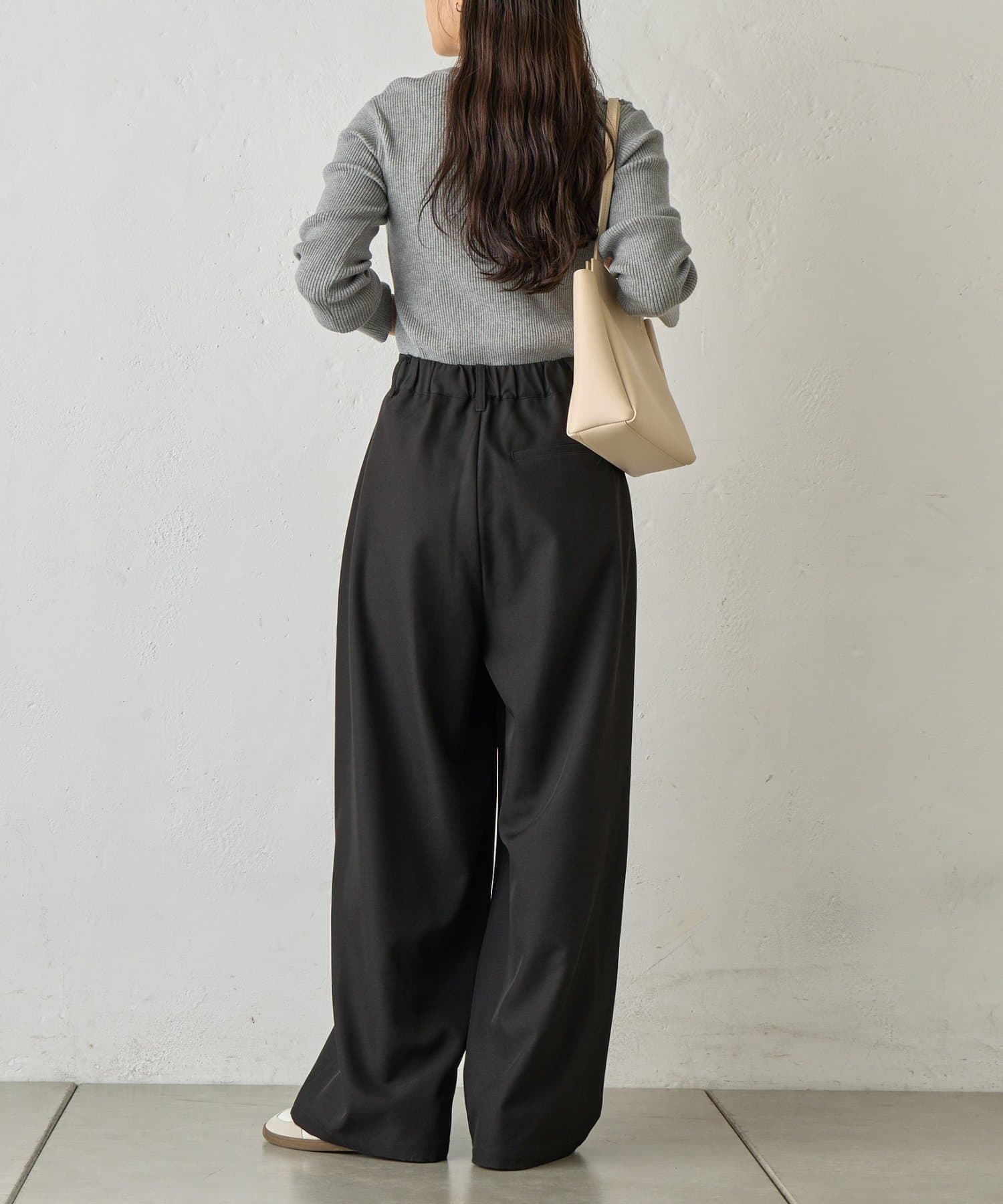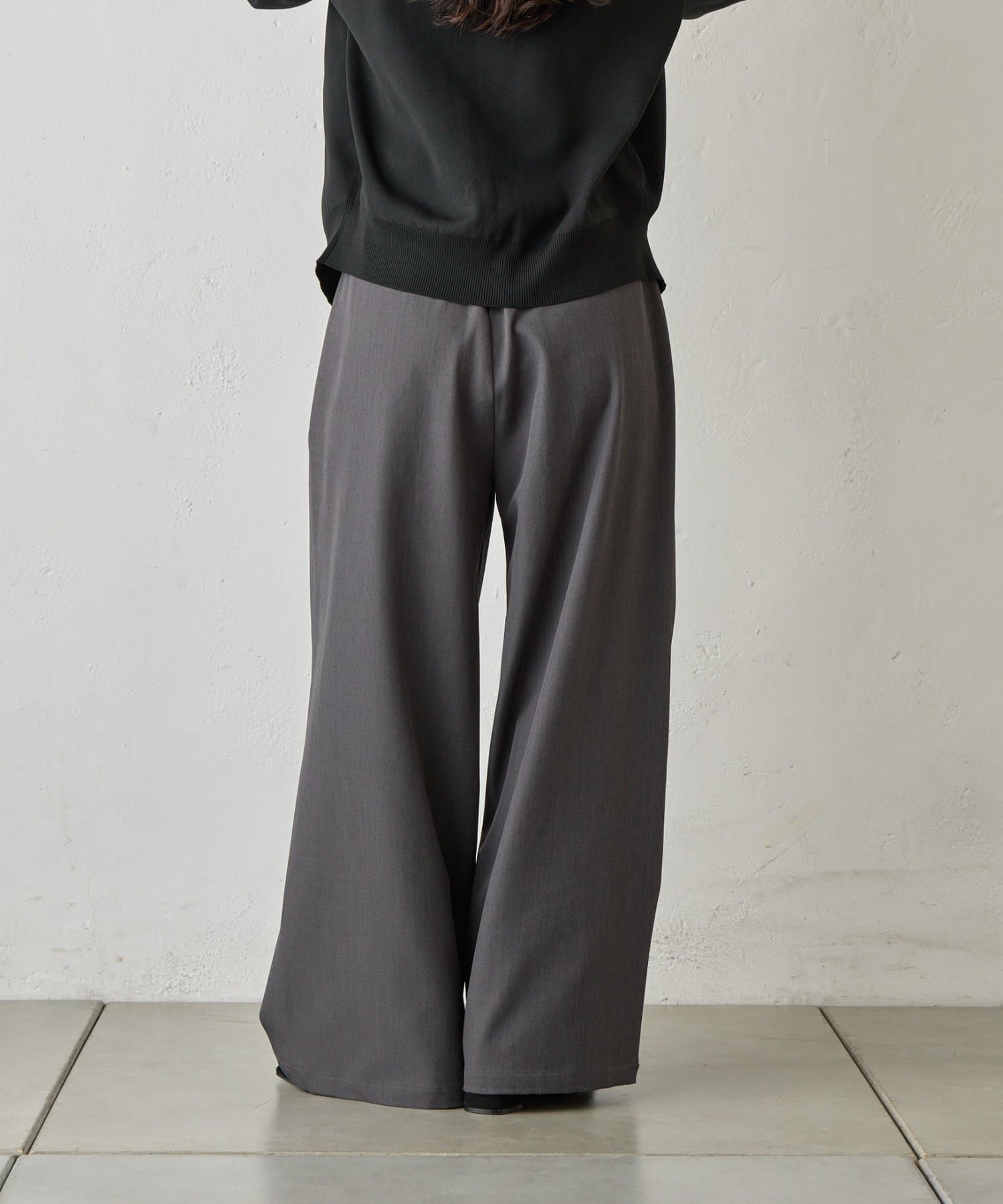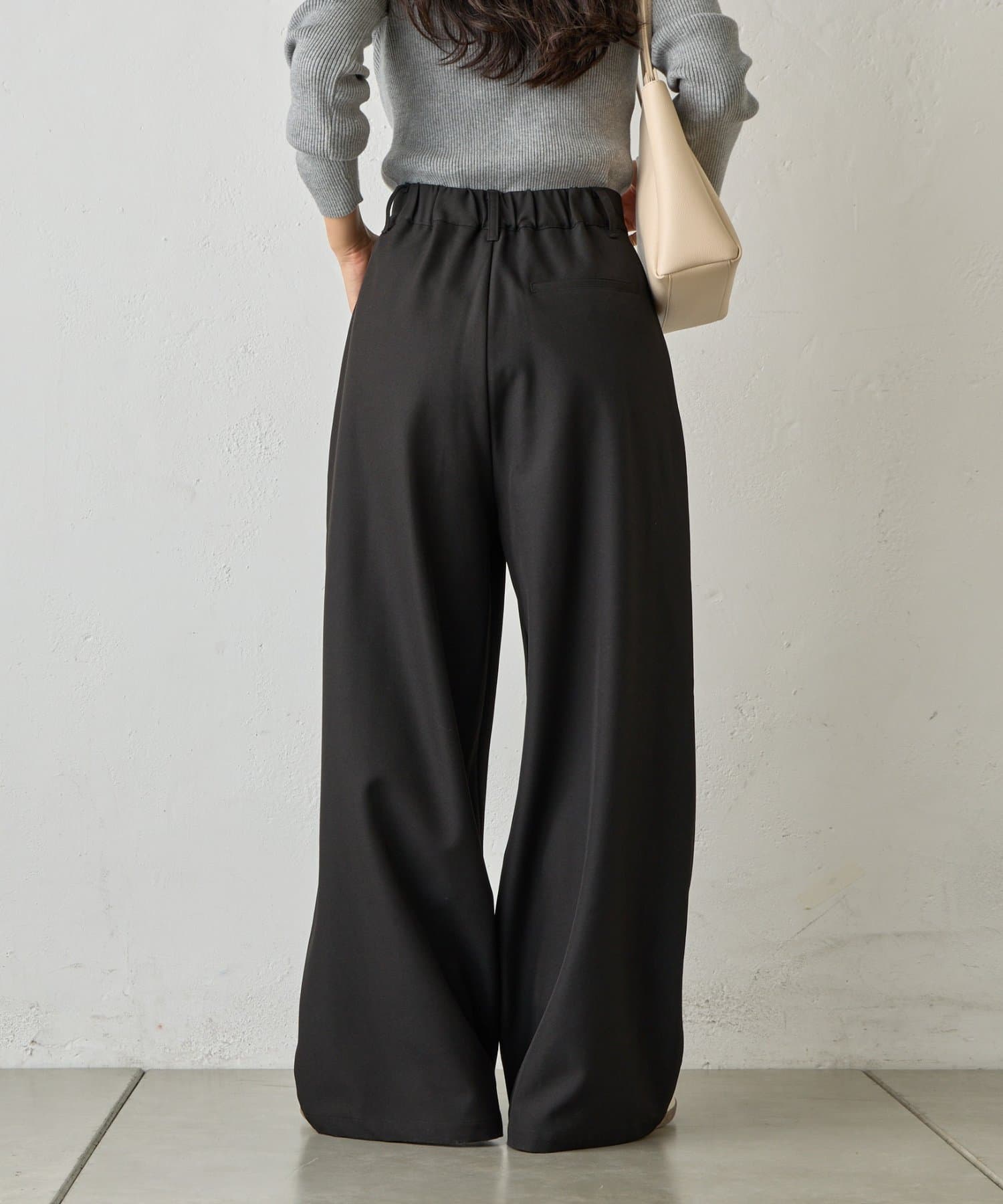 オンオフ問わず着回しの効く、万能ワイドスラックスです。
