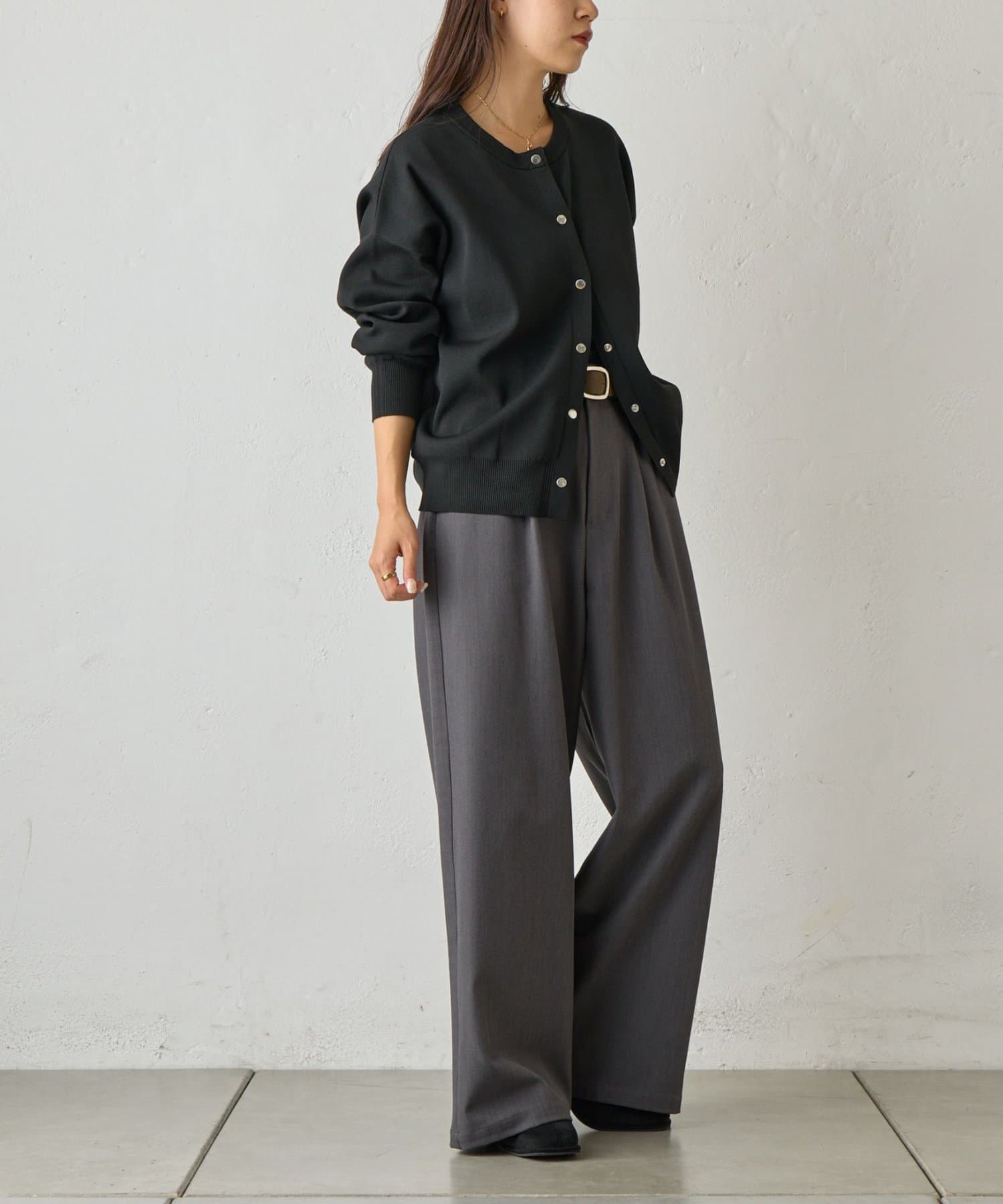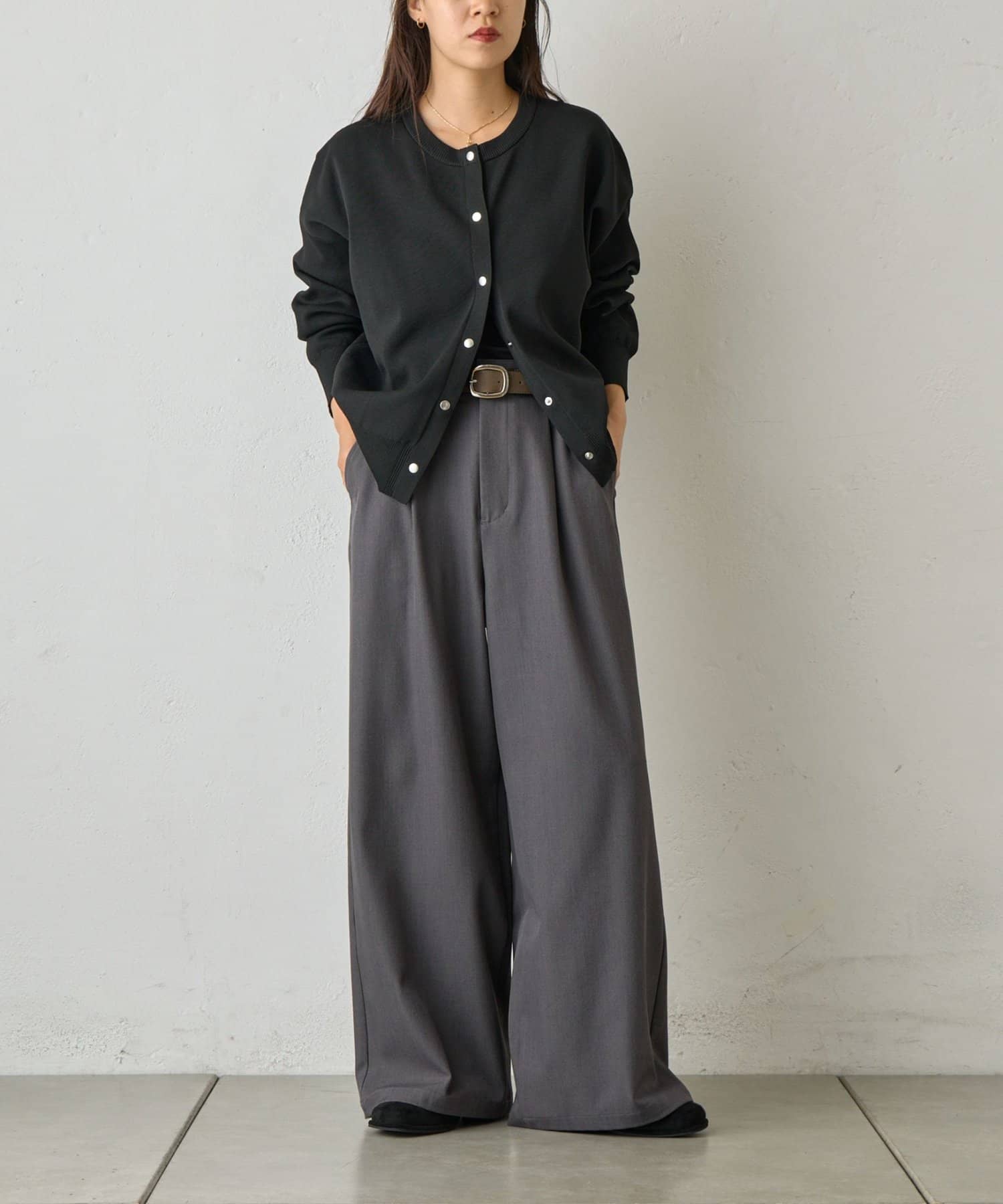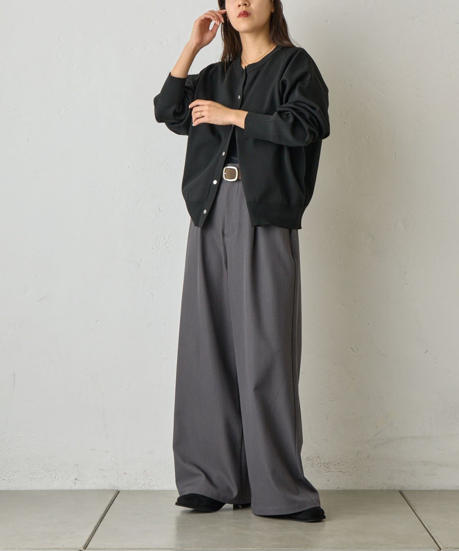 【ラックス感ときちんと感を両立。上品ワイドスラックス】