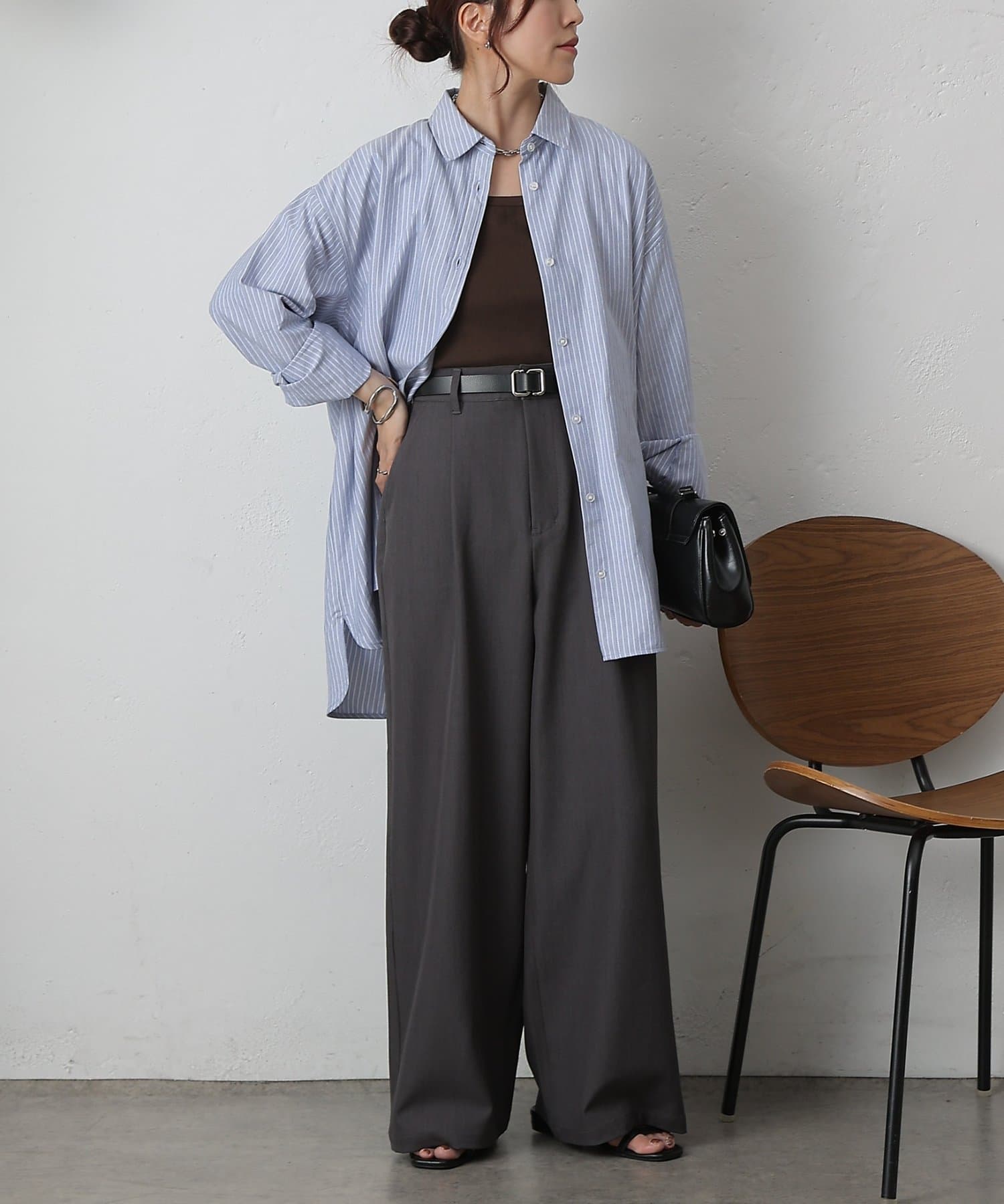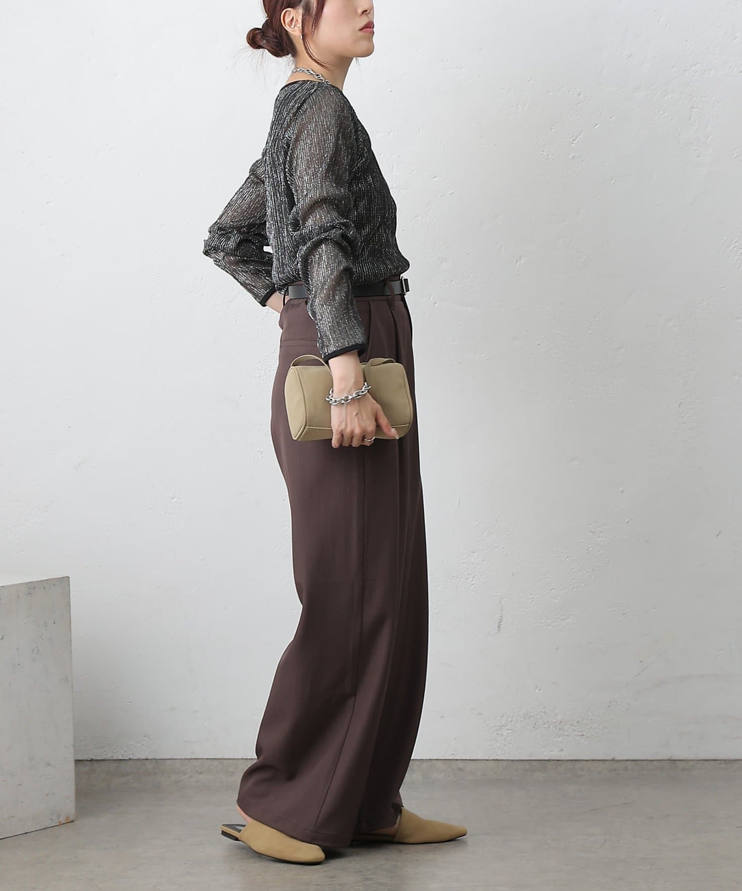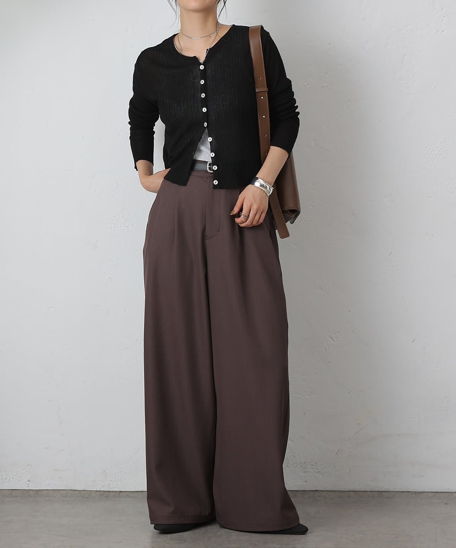 【ラックス感ときちんと感を両立。上品ワイドスラックス】