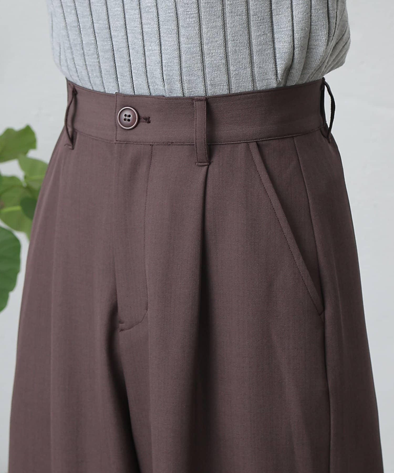 腰まわりにゆとりをもたせるワンタック仕様で、気になるラインをカバーしながらすとんと落ちるワイドシルエットが美しい一本。