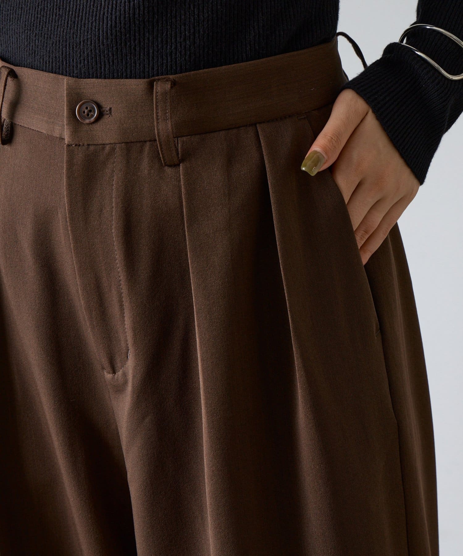 ウエストに入ったダブルタックがゆとりと立体感を生み出し、よりリラックスしたシルエットを演出します。
