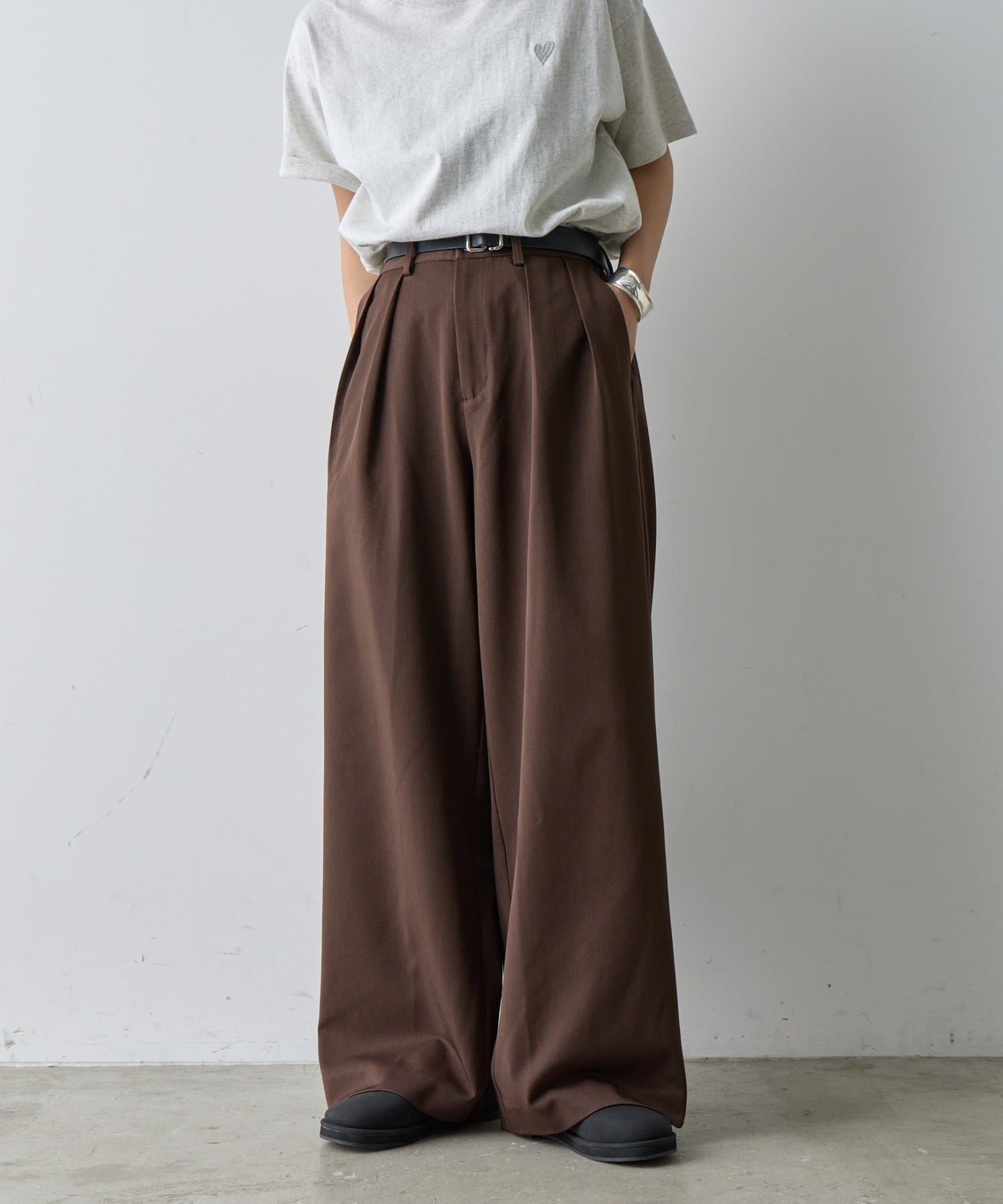 【美シルエット ダブルタックワイドパンツ】