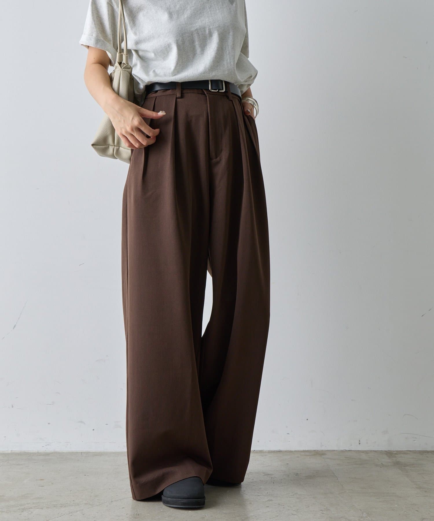 【美シルエット ダブルタックワイドパンツ】