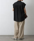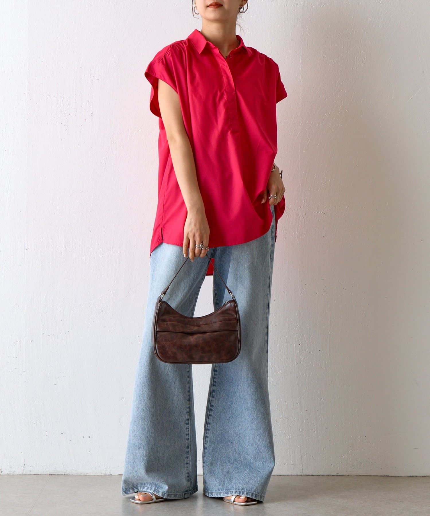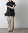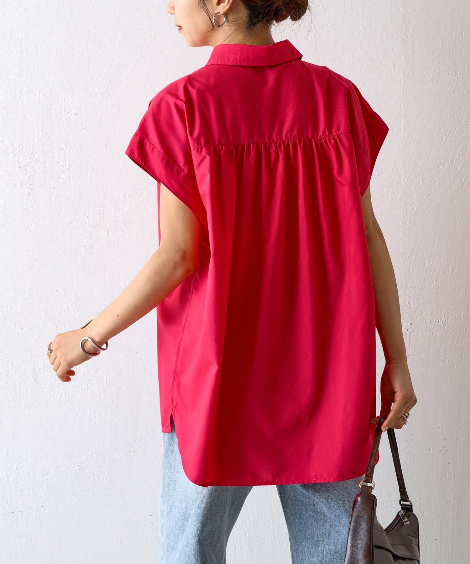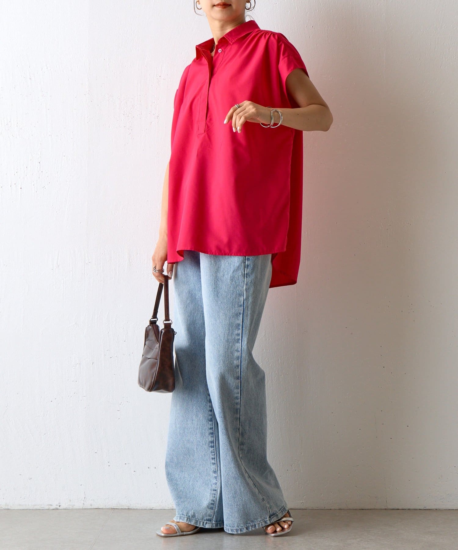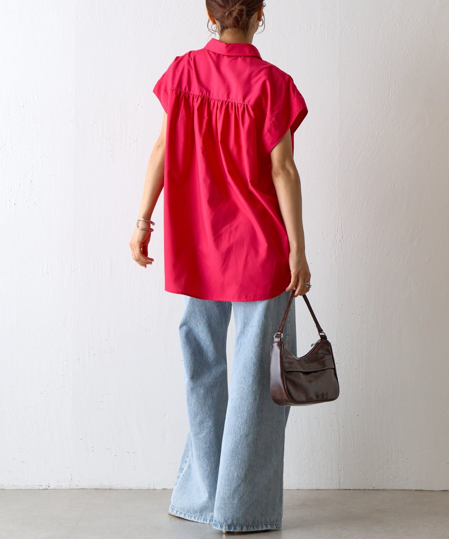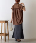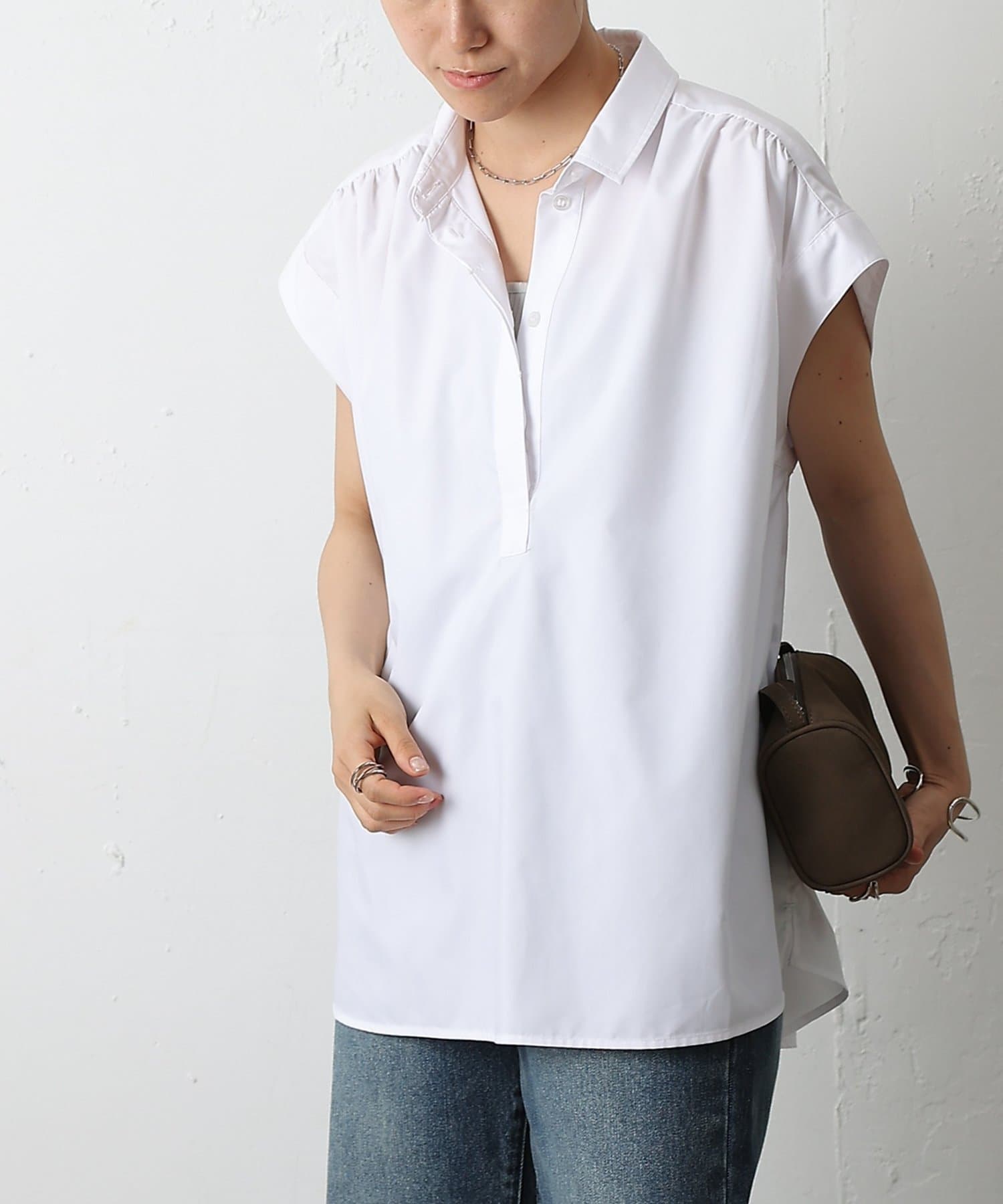 シンプルなデザインながらも、肩のギャザーがさりげないアクセントになったブラウス。露出が控えめなフレンチスリーブは、気になる二の腕をカバーしつつ、華奢見え効果も◎スキッパーネックは首元をすっきりと見せ、抜け感とこなれ感を演出。裾はラウンドヘムでボトムスとのバランスが取りやすく、気になるヒップラインをさりげなくカバーできるデザイン。インスタイルにしてもスタイリングが決まります。微光沢のある生地が高見えで上品な印象を与えてくれます。きれいめなパンツやスカートと合わせてオフィススタイルに、デニムと合わせてカジュアルスタイルにと、様々なシーンで活躍します。カーディガンやジャケットを羽織れば、ロングシーズン着用可能です。