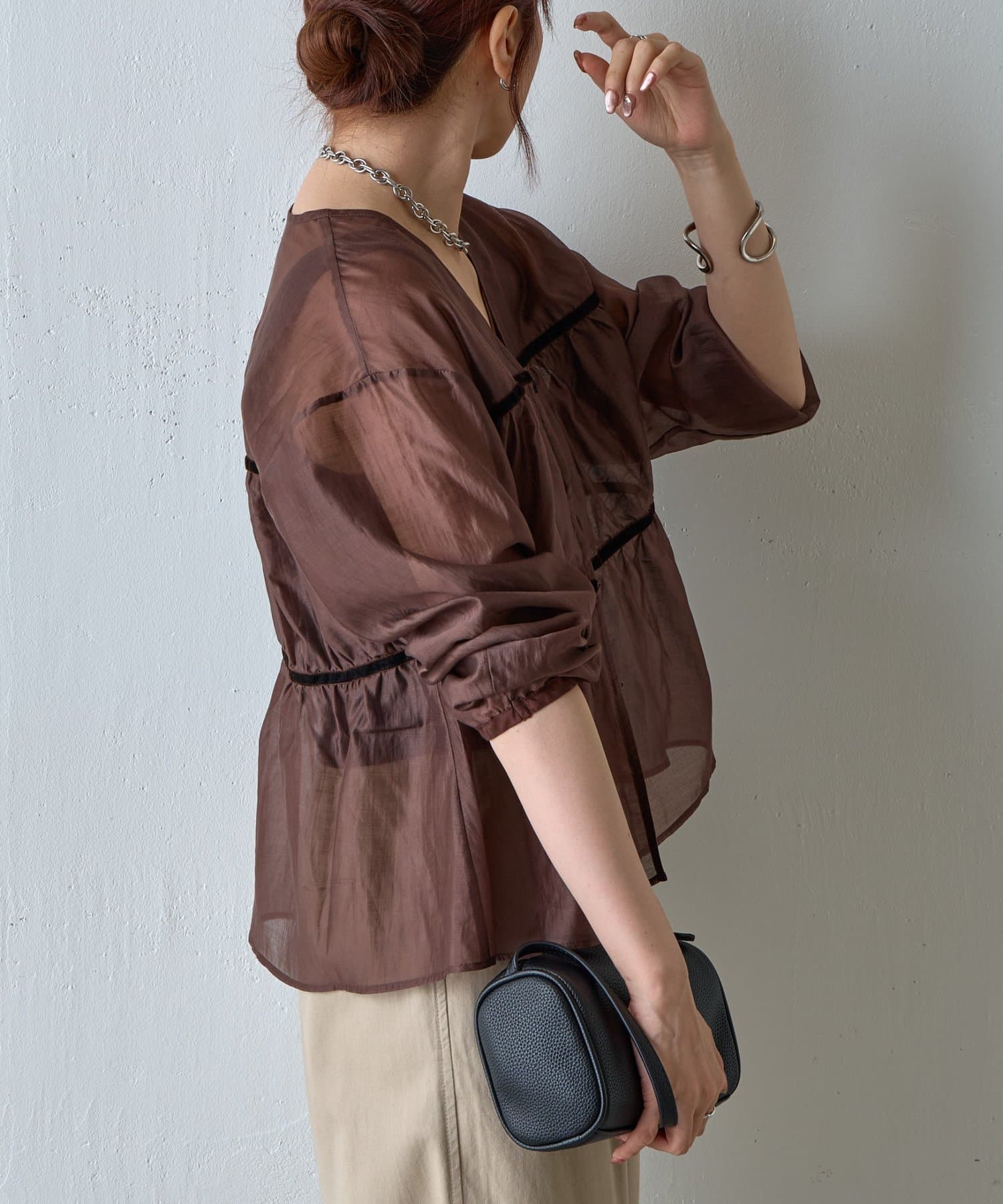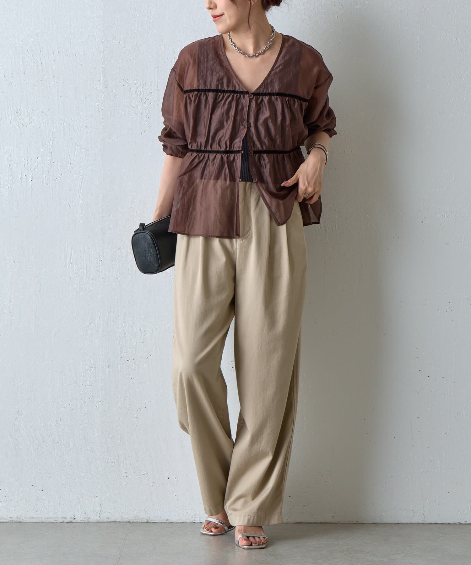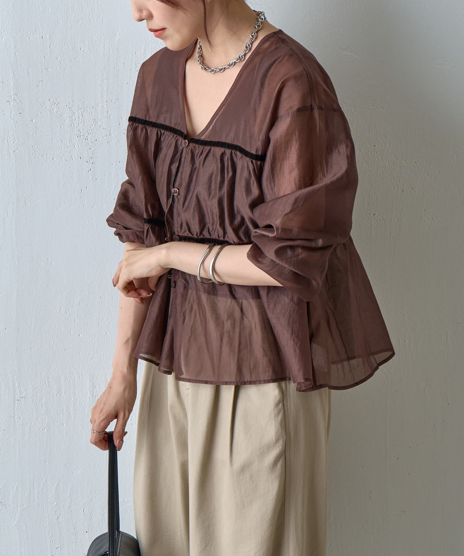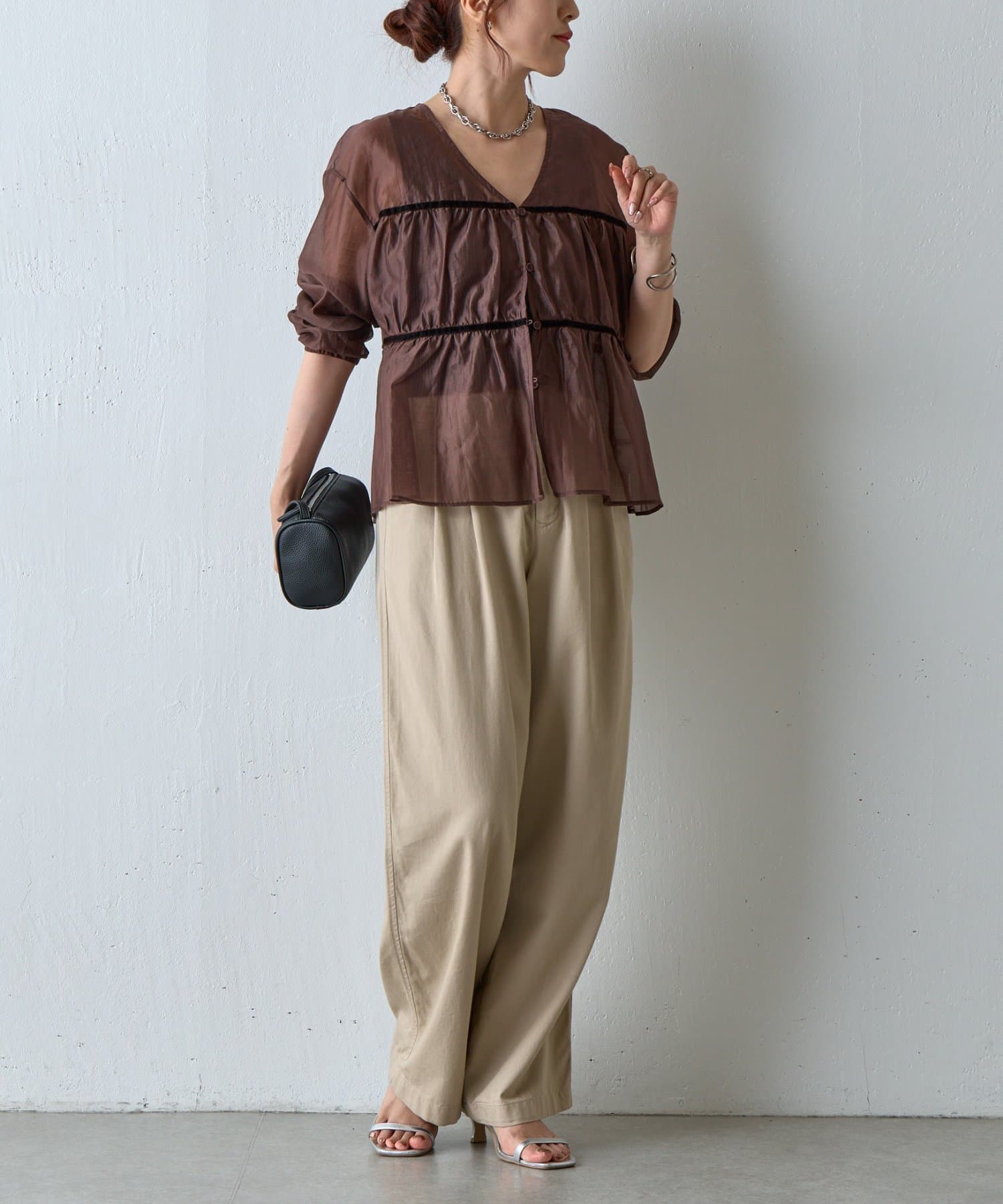 【ふんわり軽やか、大人フェミニンなティアードブラウス】