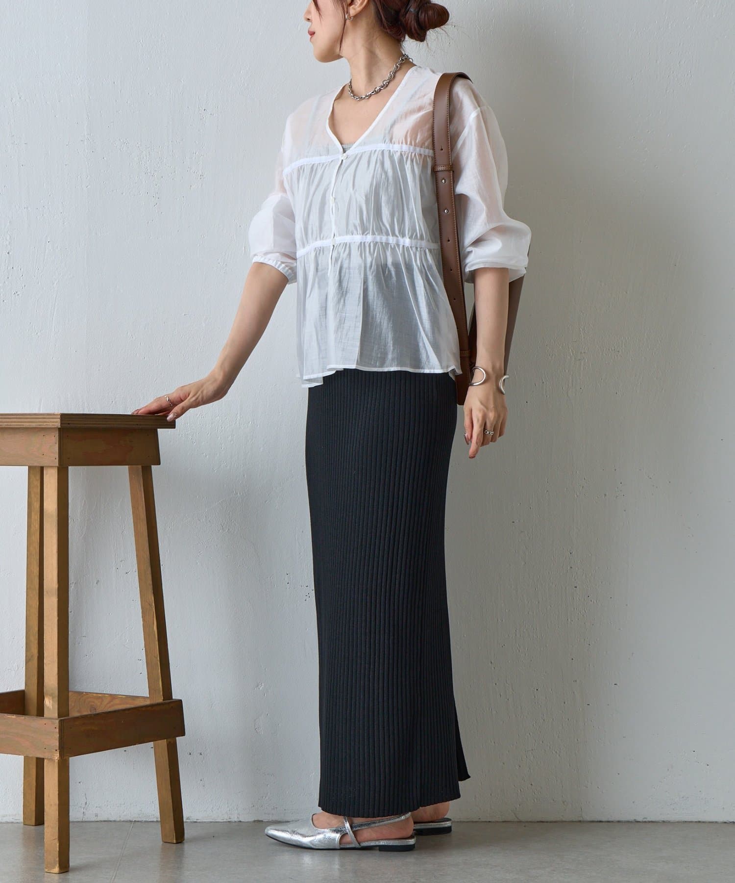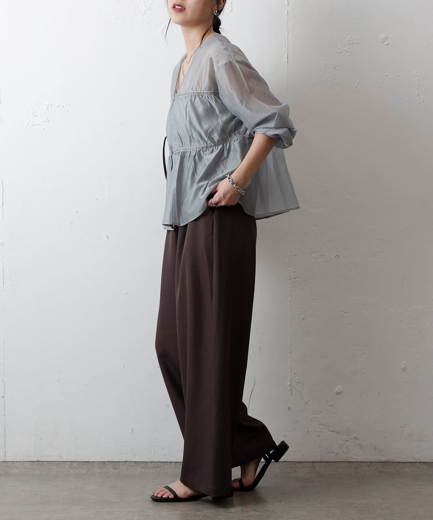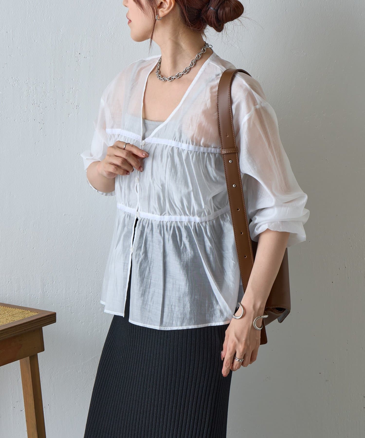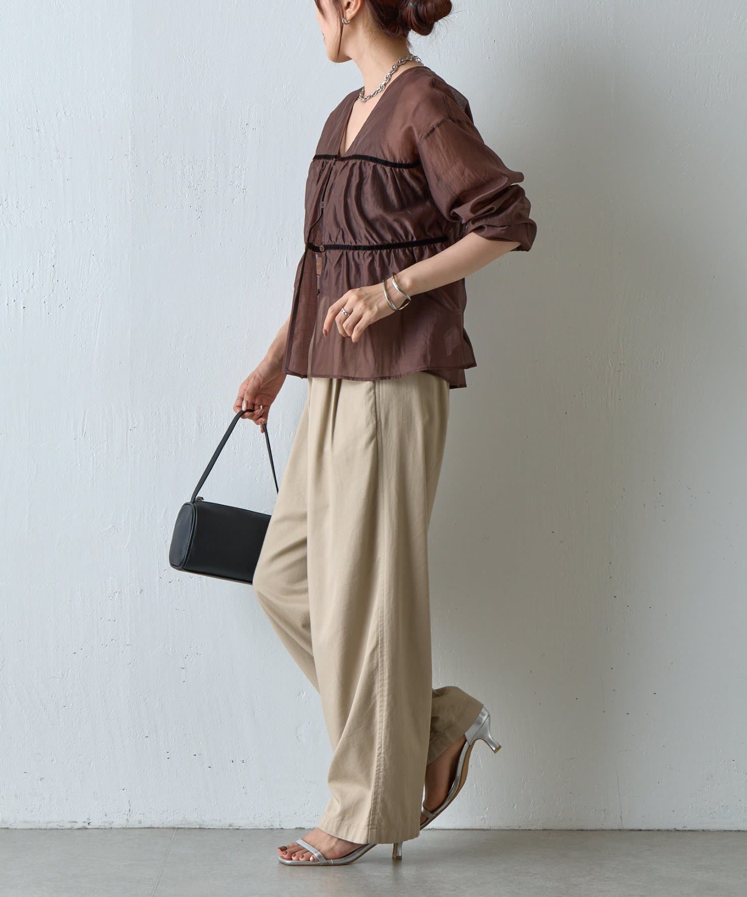 【ふんわり軽やか、大人フェミニンなティアードブラウス】