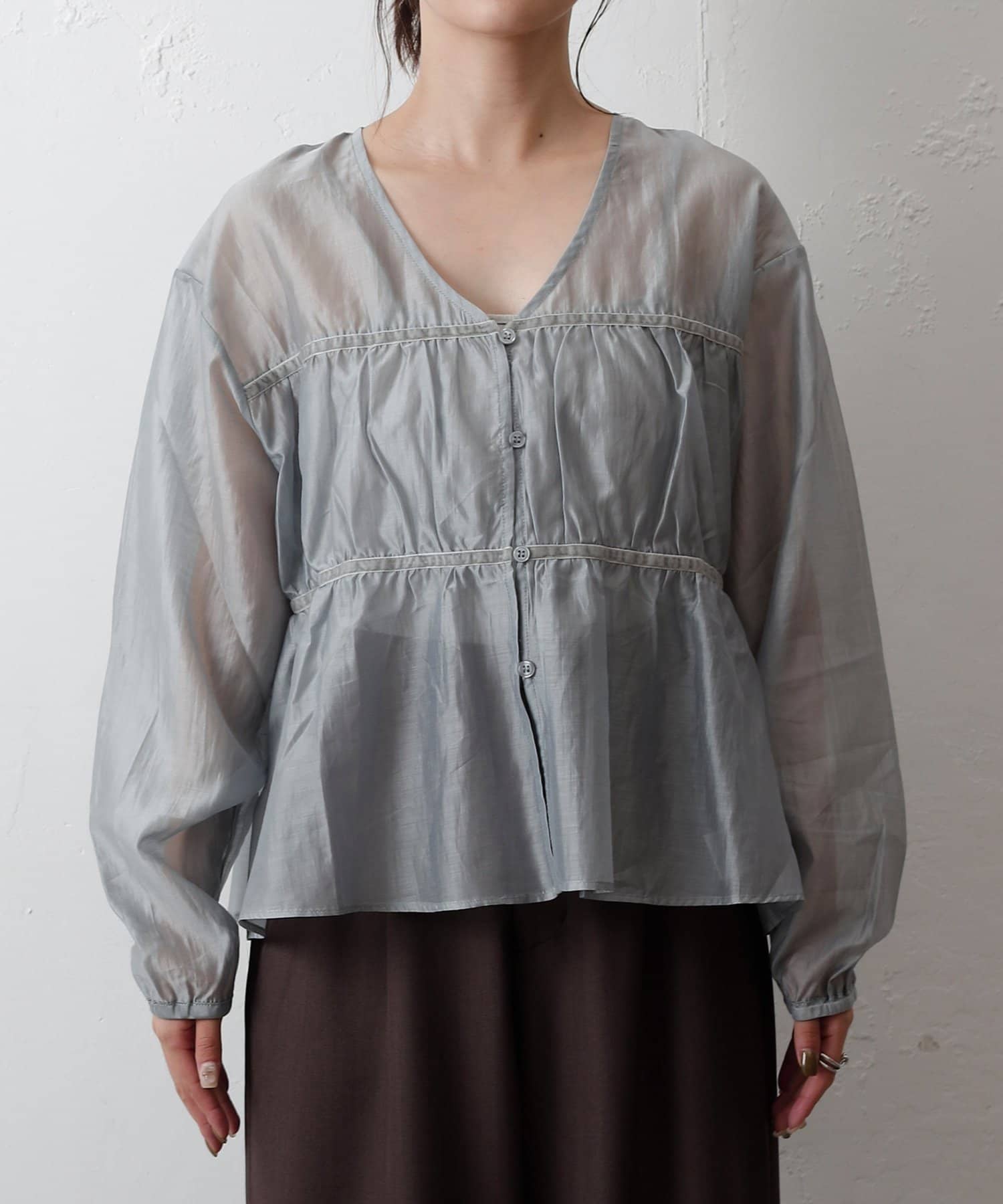 シアーティアード長袖ブラウス
