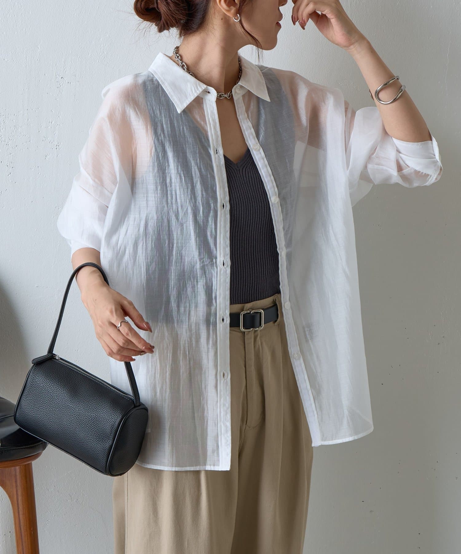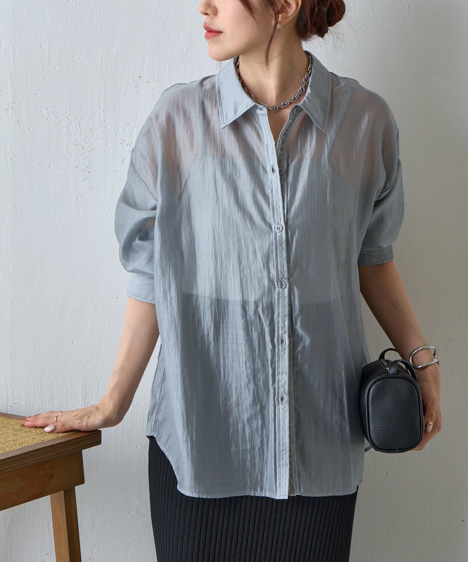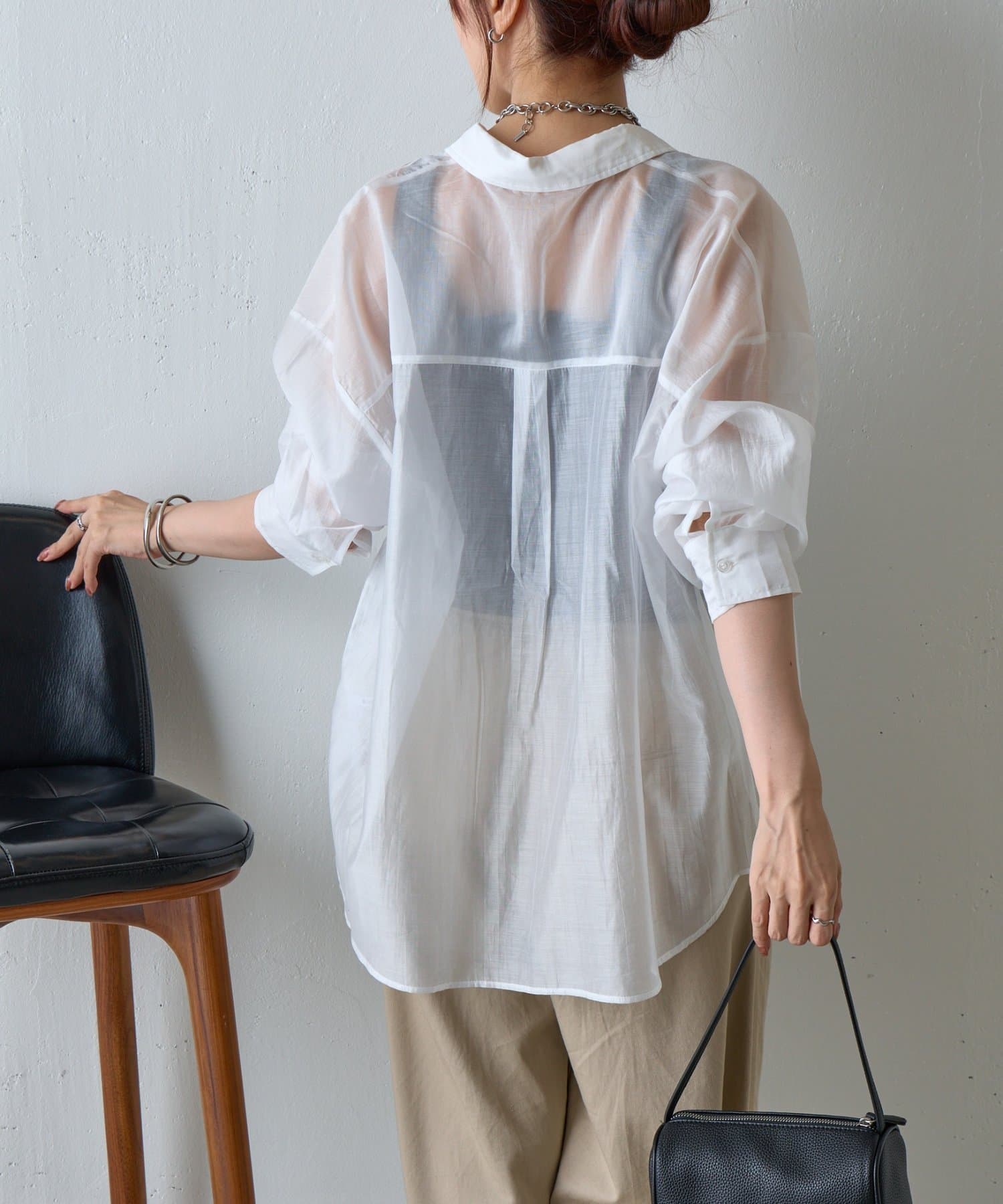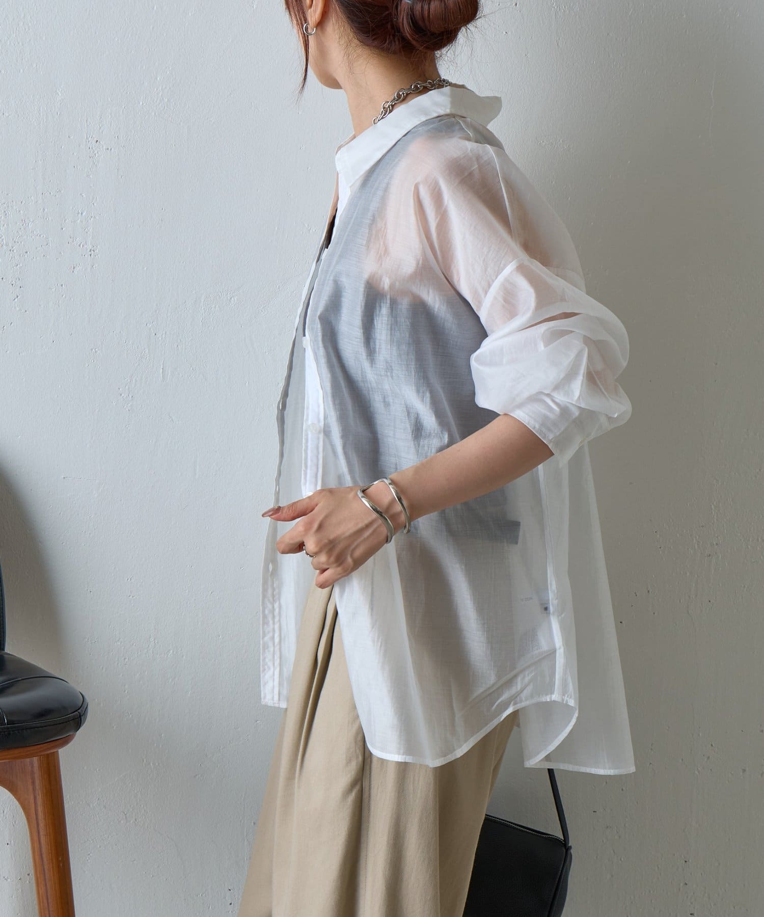 デイリーはもちろん、リゾートや旅行、オフィスカジュアルにも使える万能なシアーシャツです。