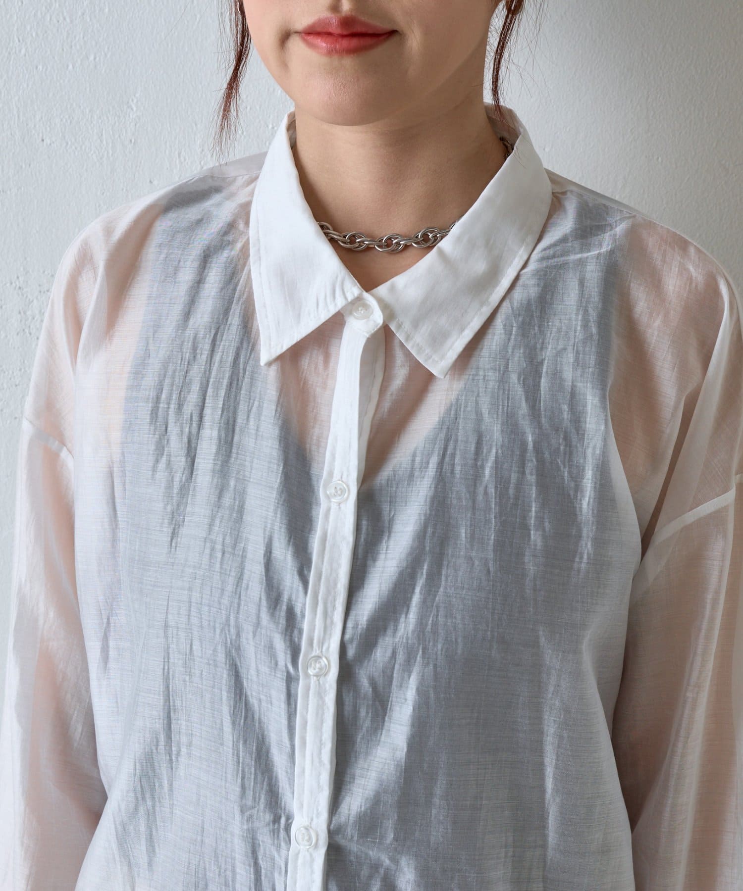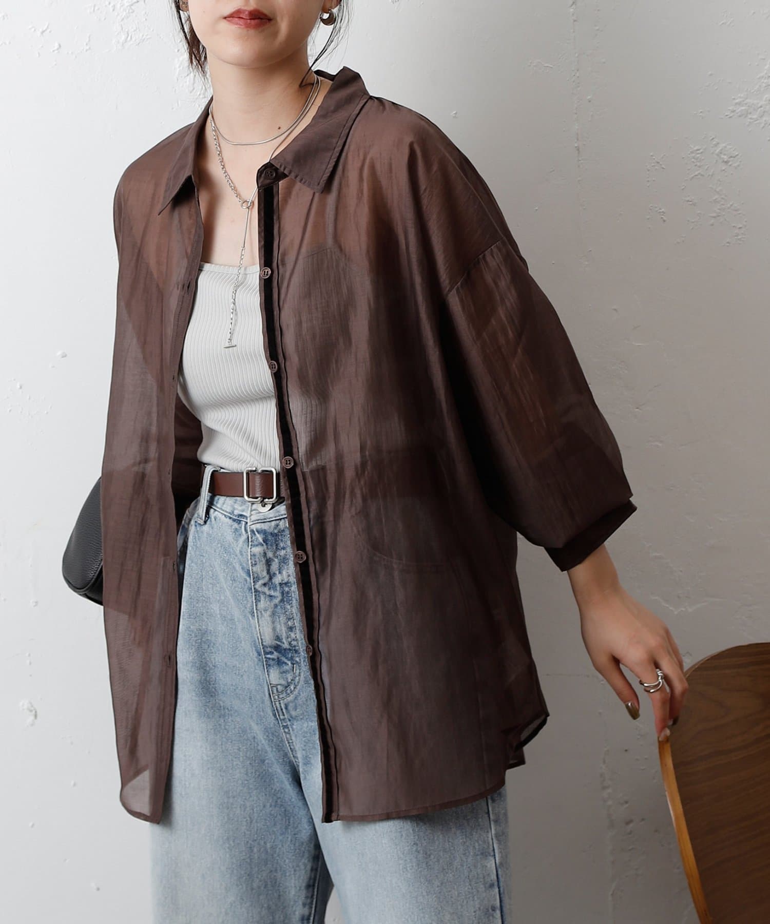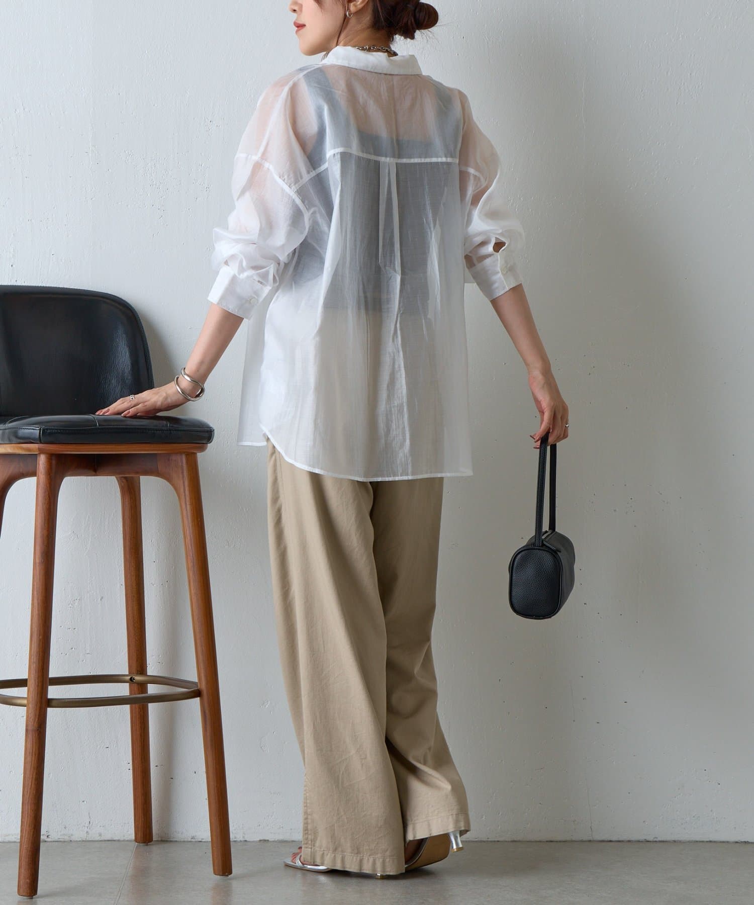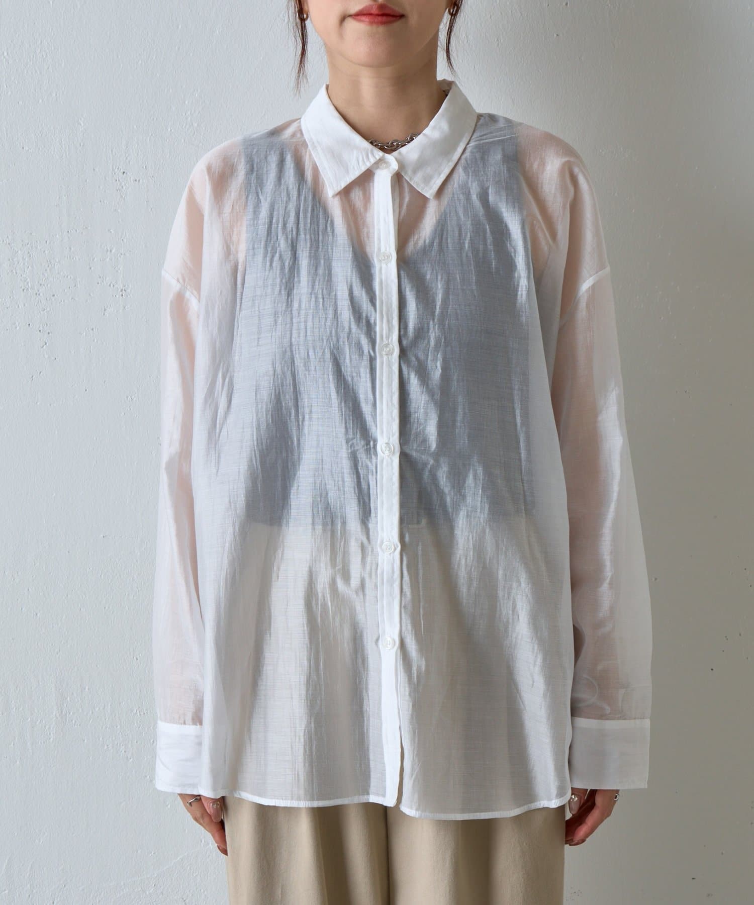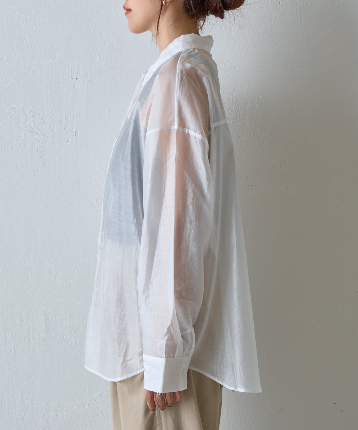 デイリーはもちろん、リゾートや旅行、オフィスカジュアルにも使える万能なシアーシャツです。