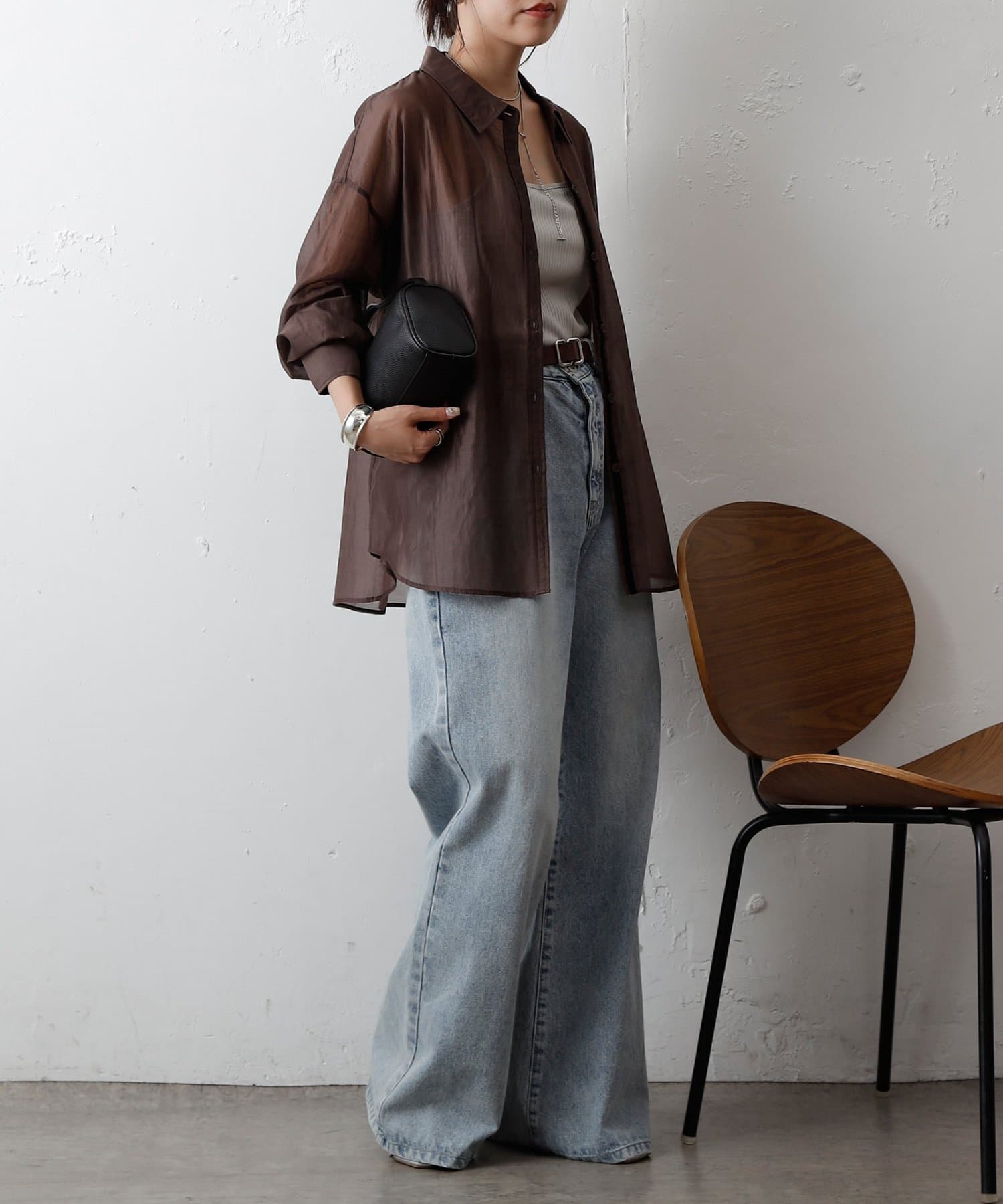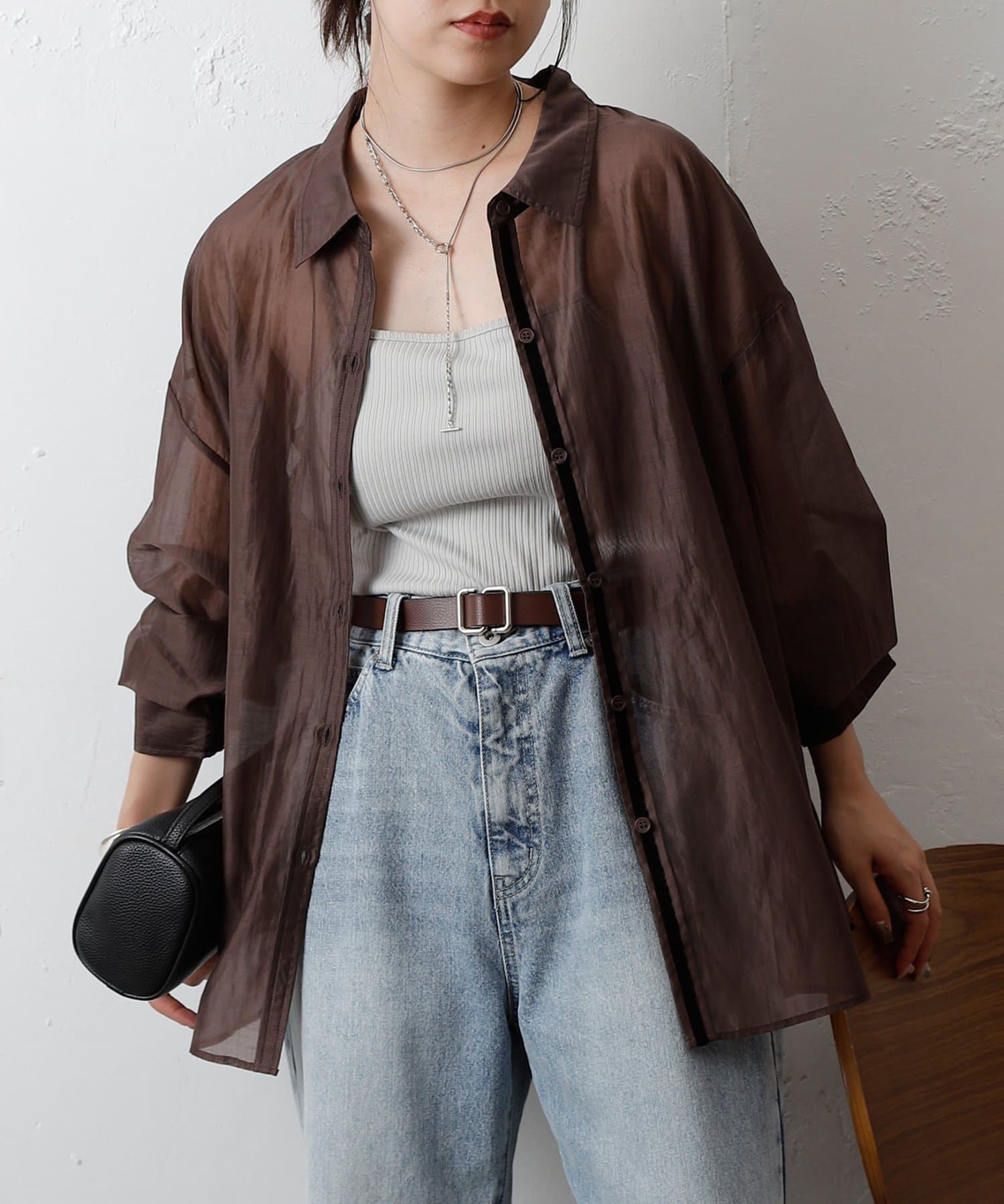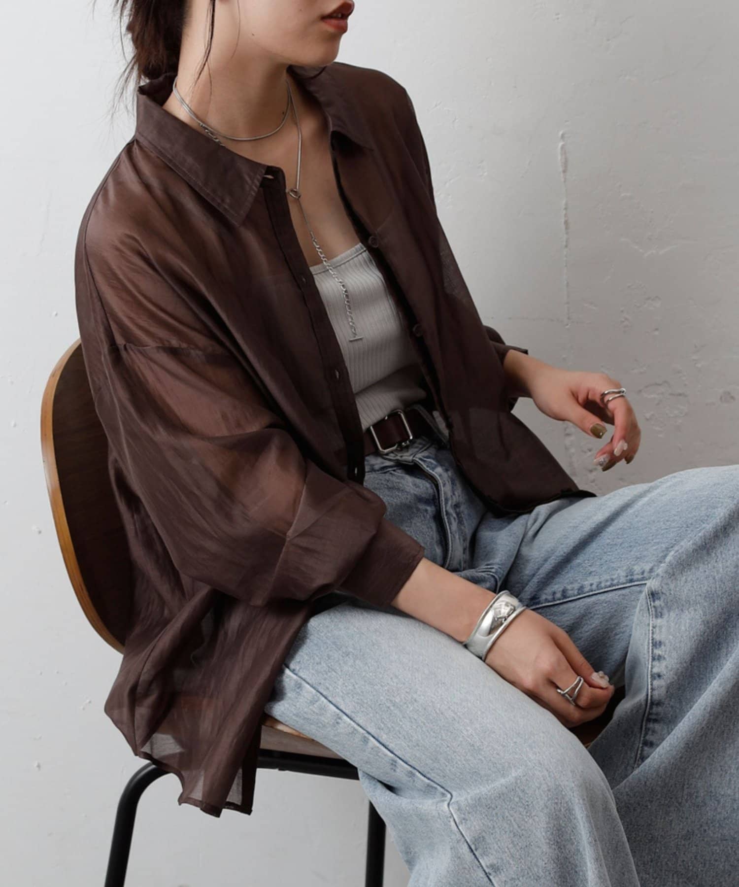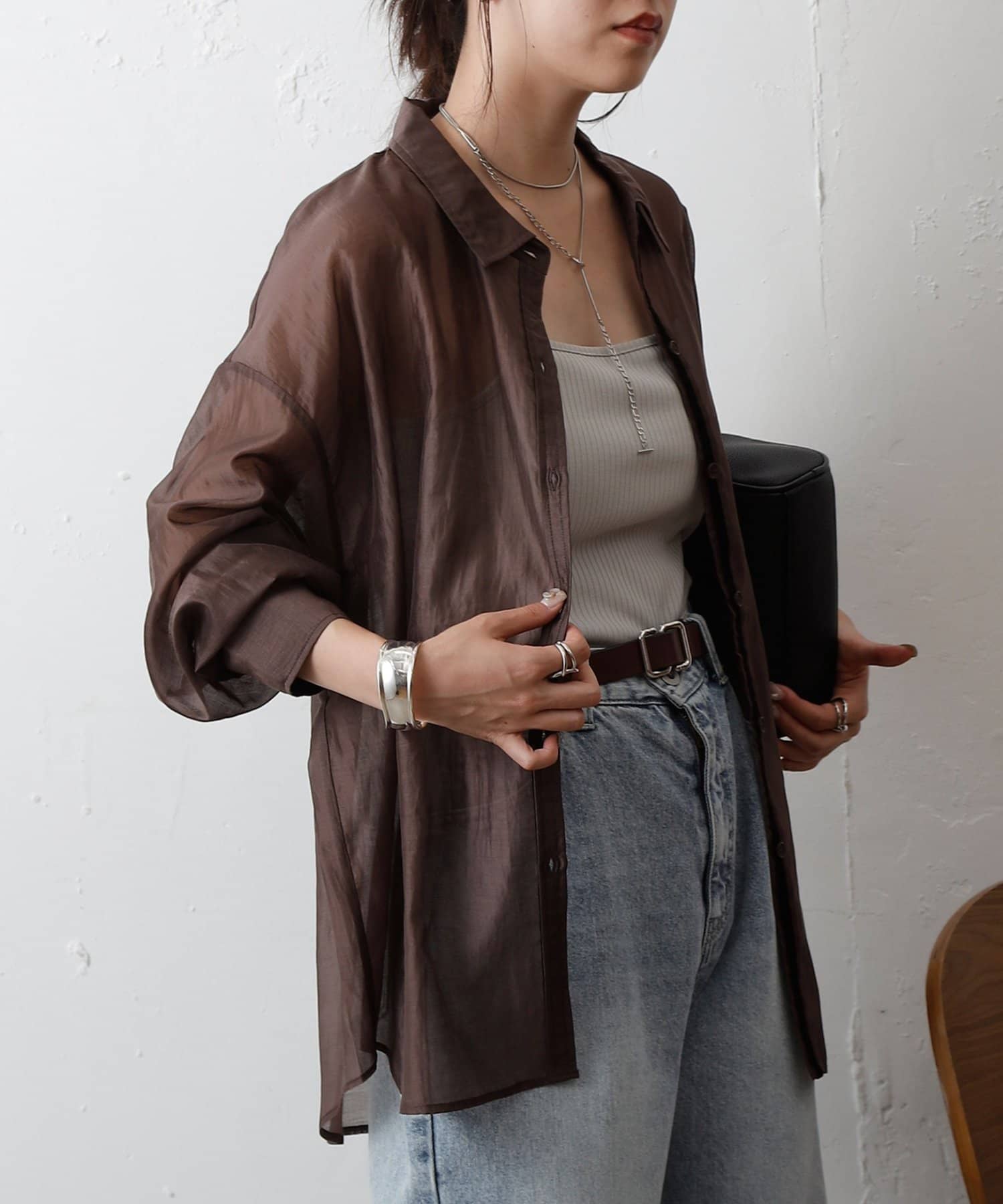 羽織としても活躍する着回し力の高いアイテムで、タンクトップやキャミソールに重ねるだけで抜け感のあるスタイルが完成。