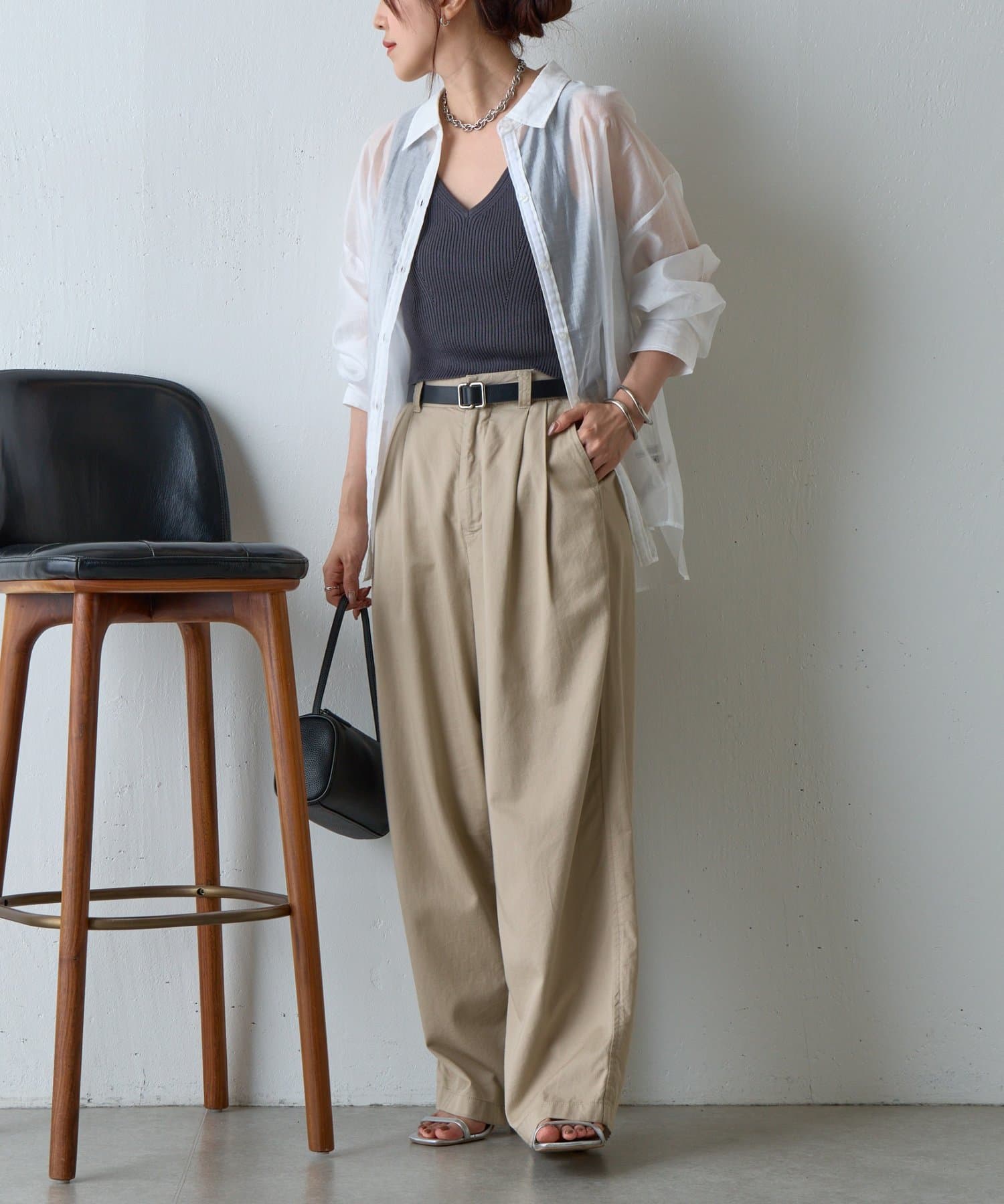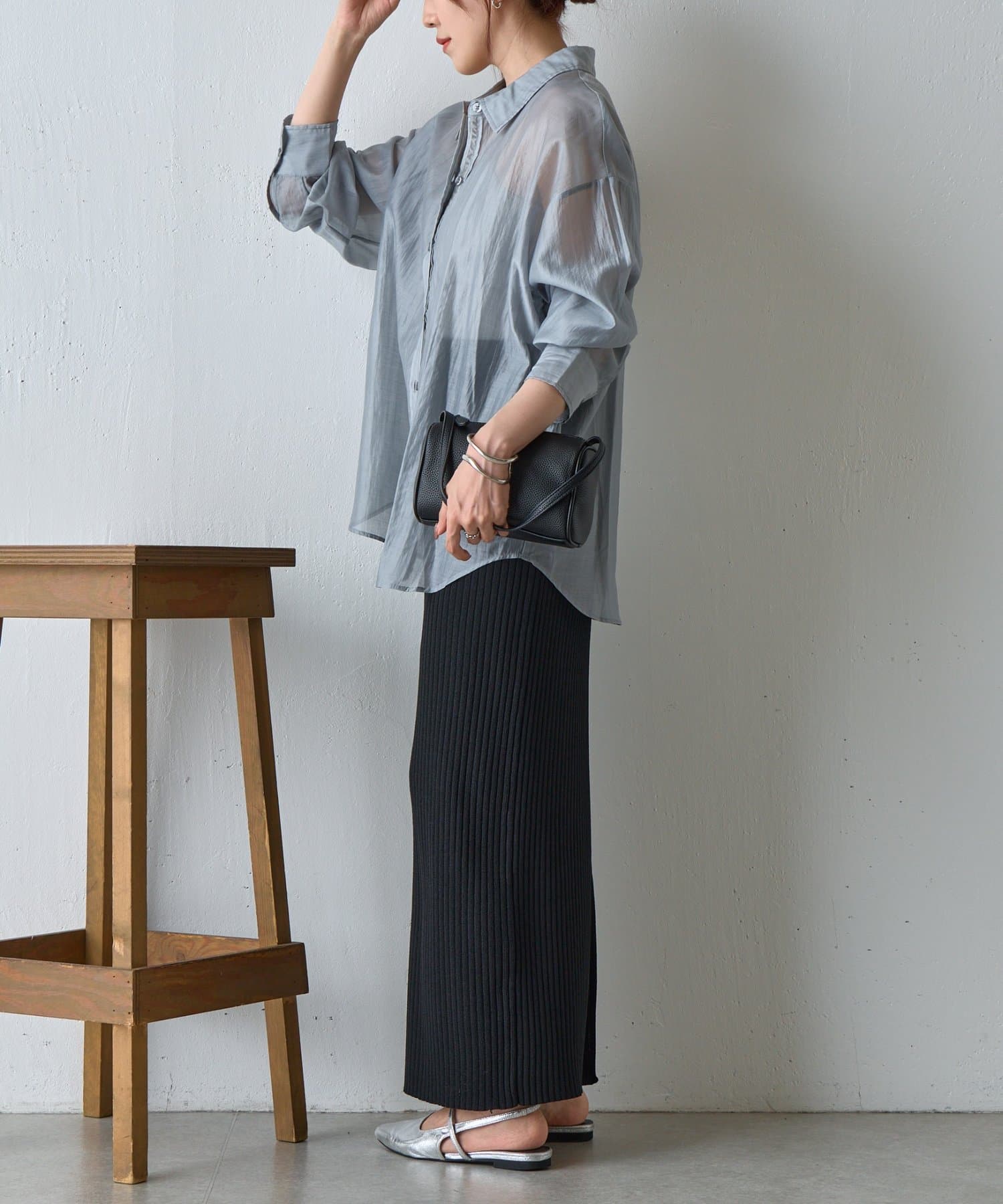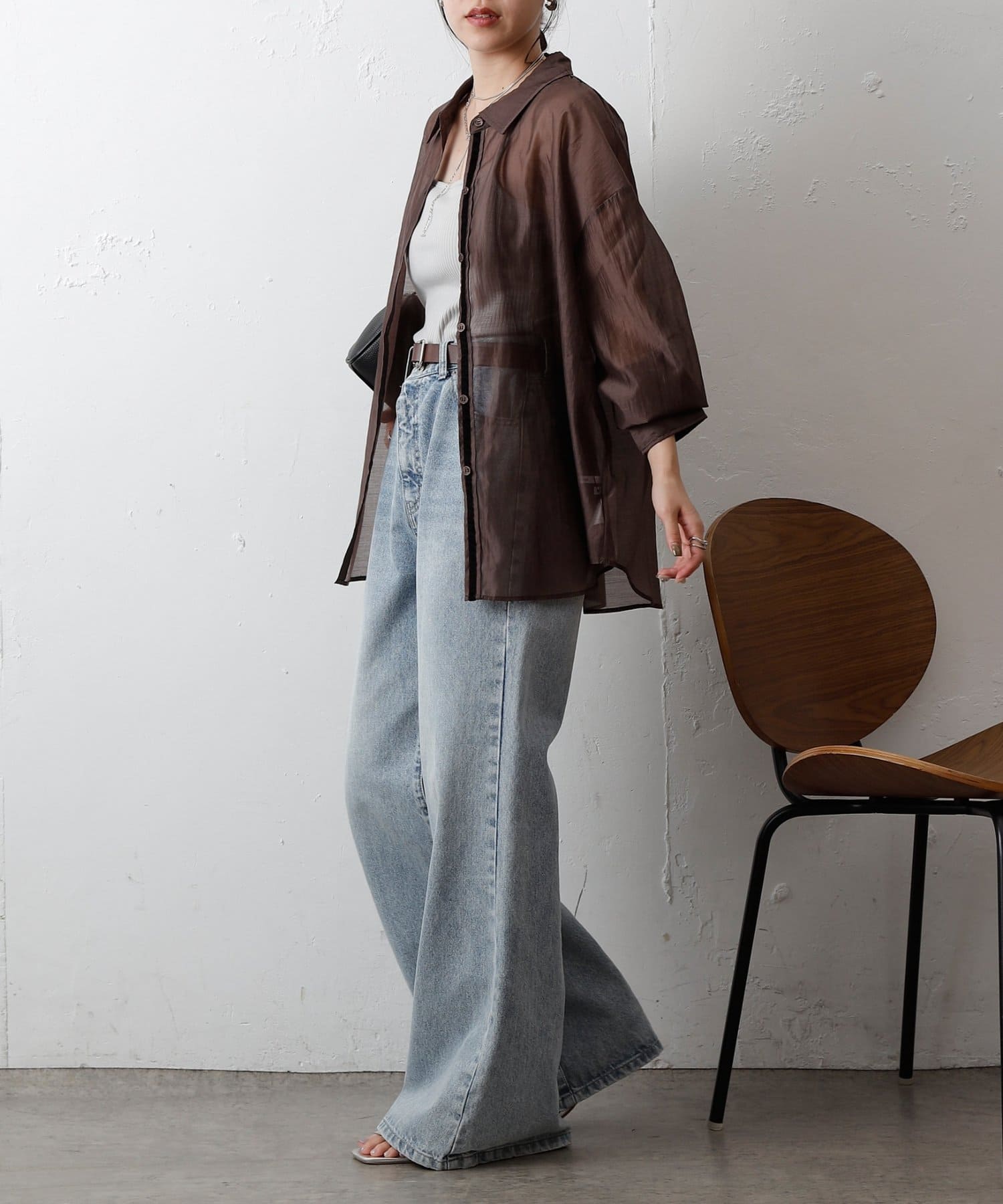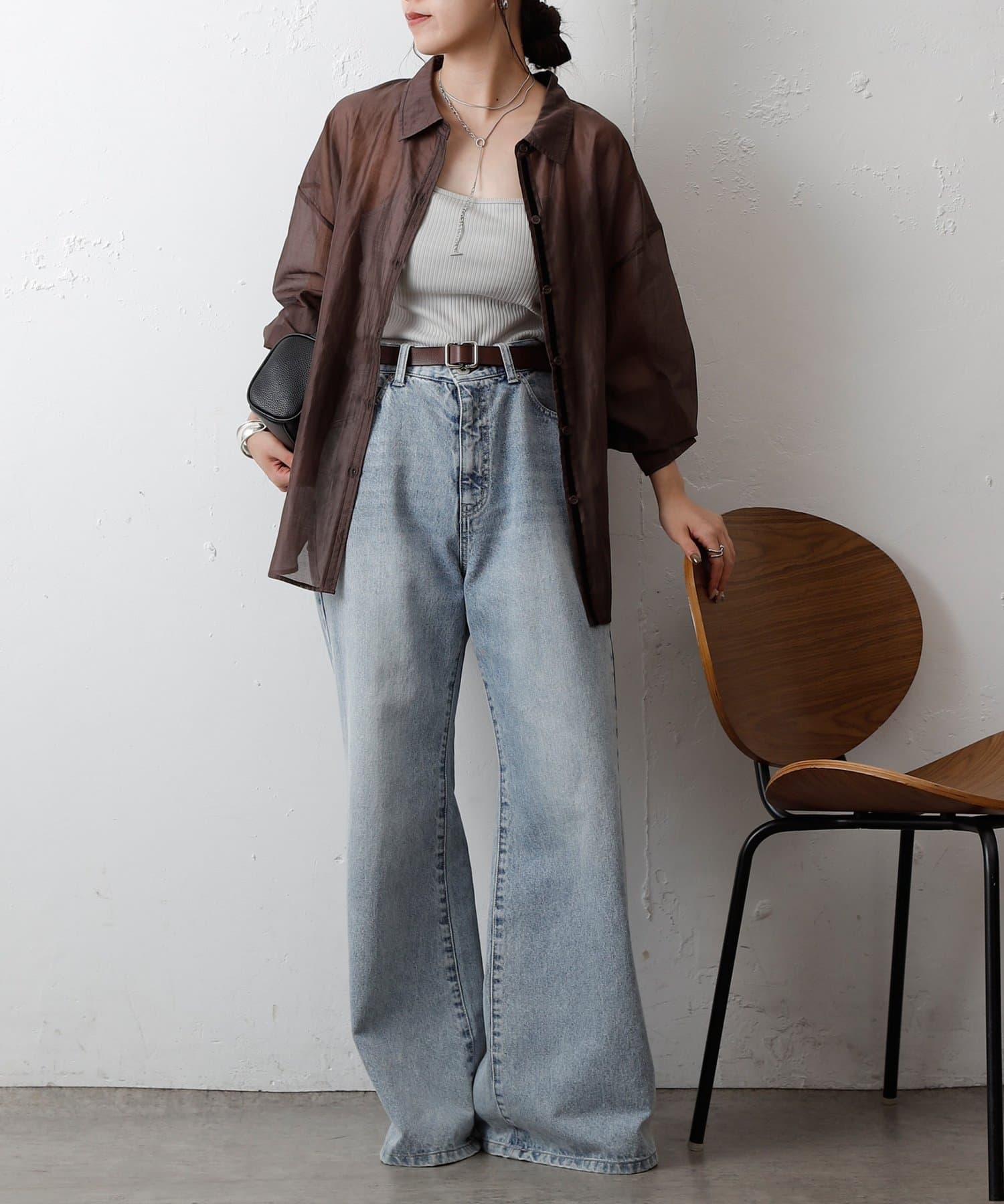 羽織としても活躍する着回し力の高いアイテムで、タンクトップやキャミソールに重ねるだけで抜け感のあるスタイルが完成。