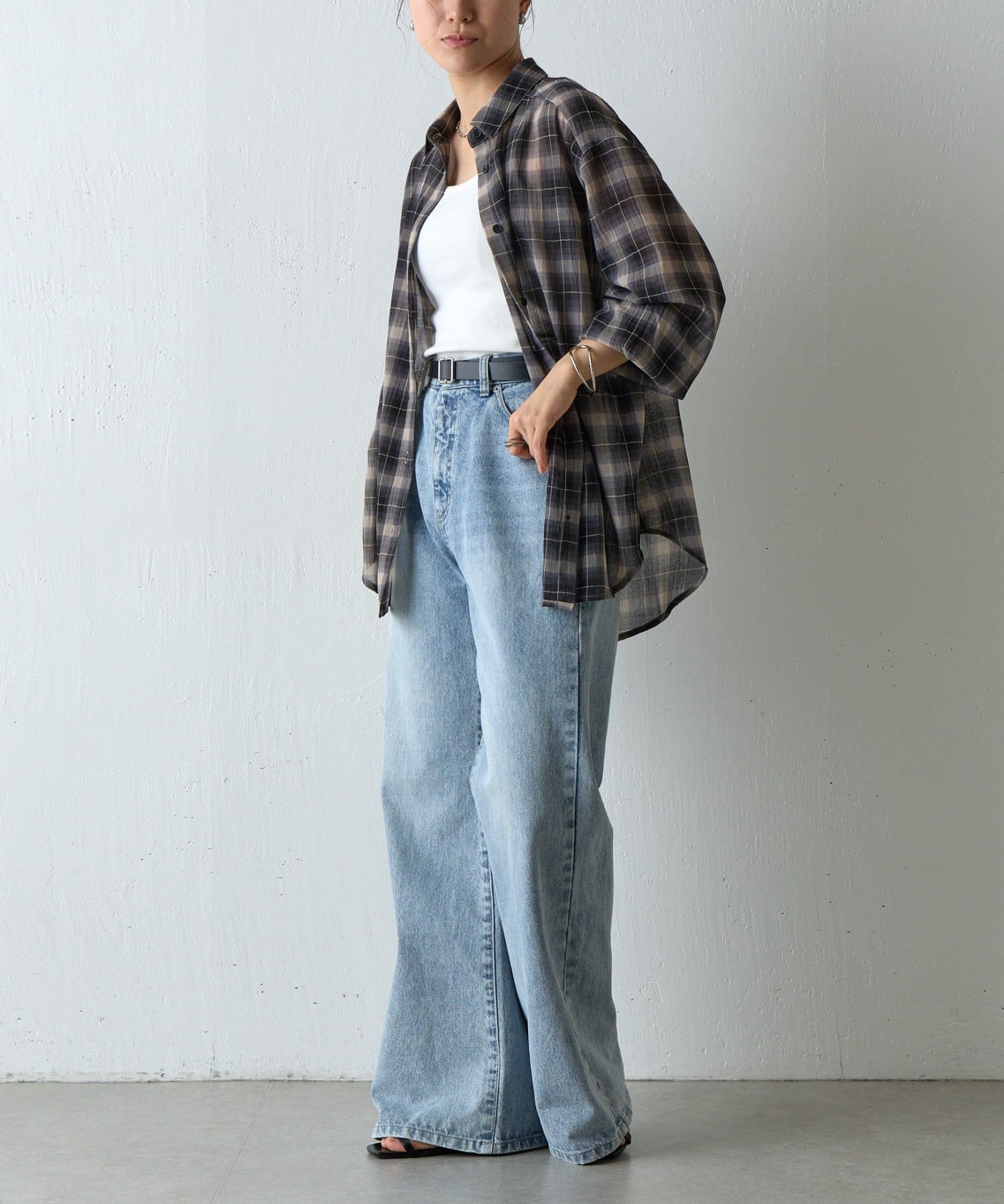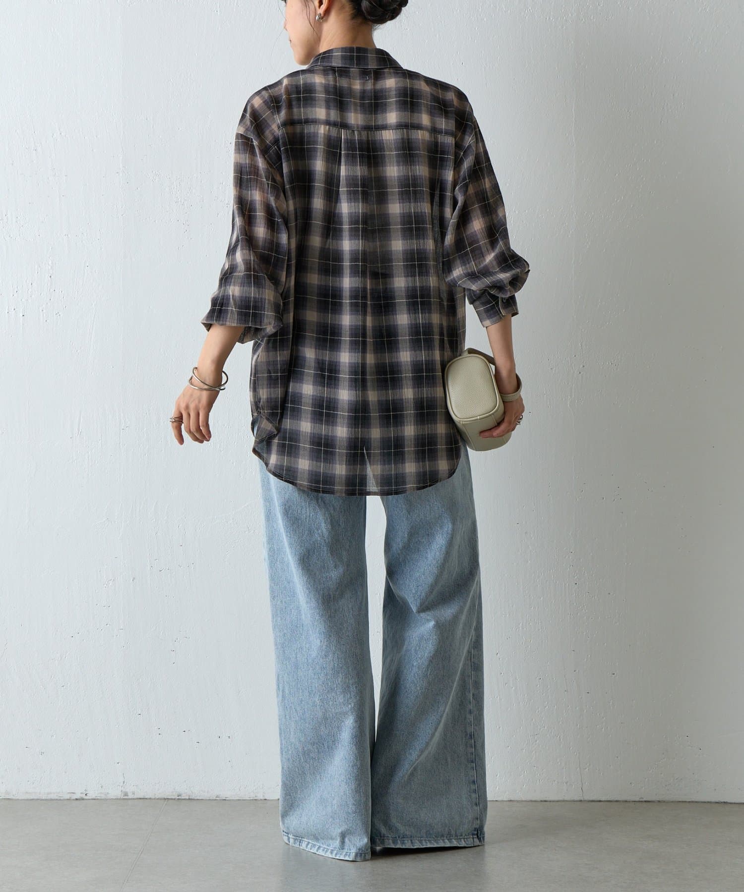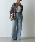 【シアー感×チェック柄で、こなれた大人のカジュアルスタイルに】