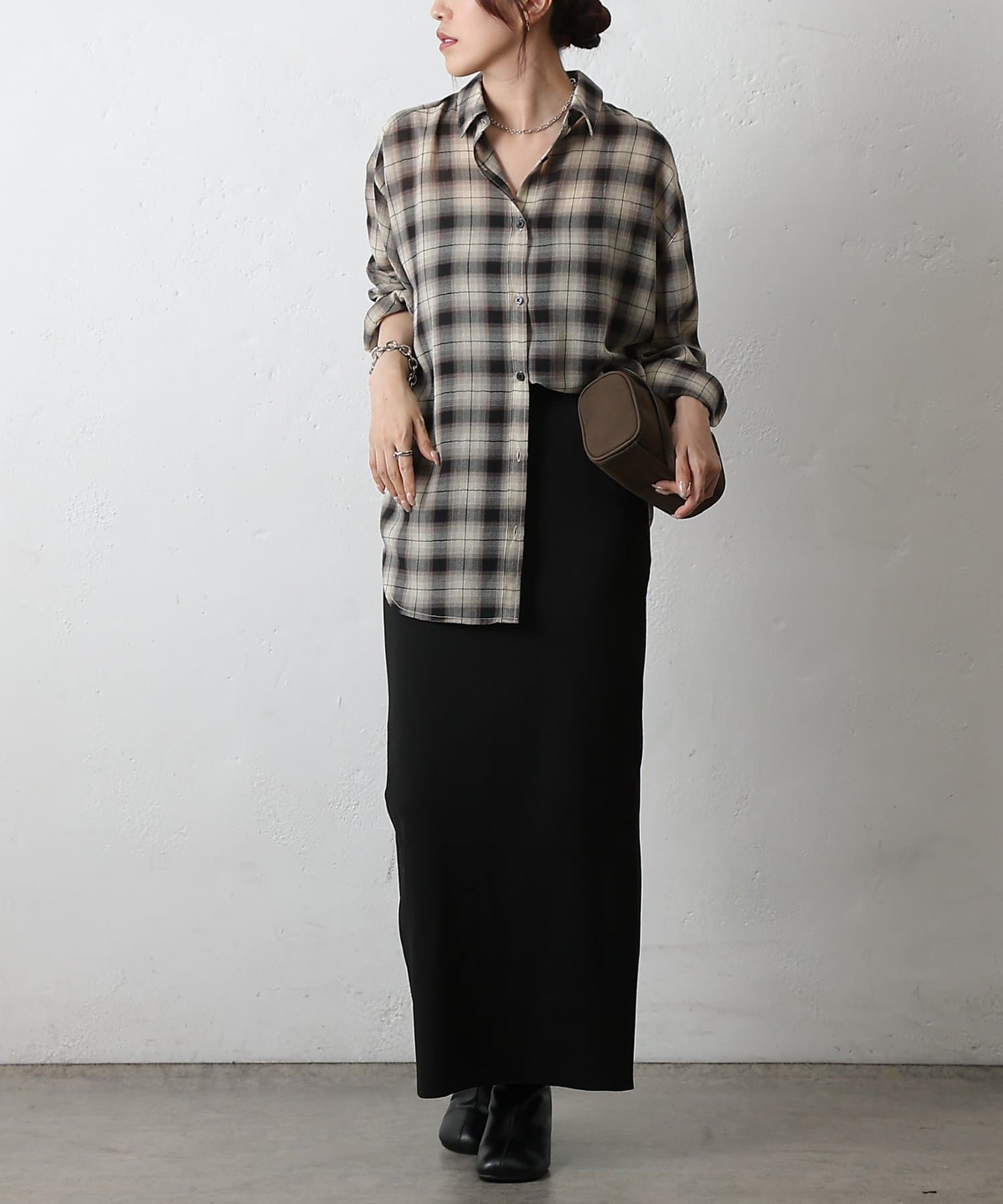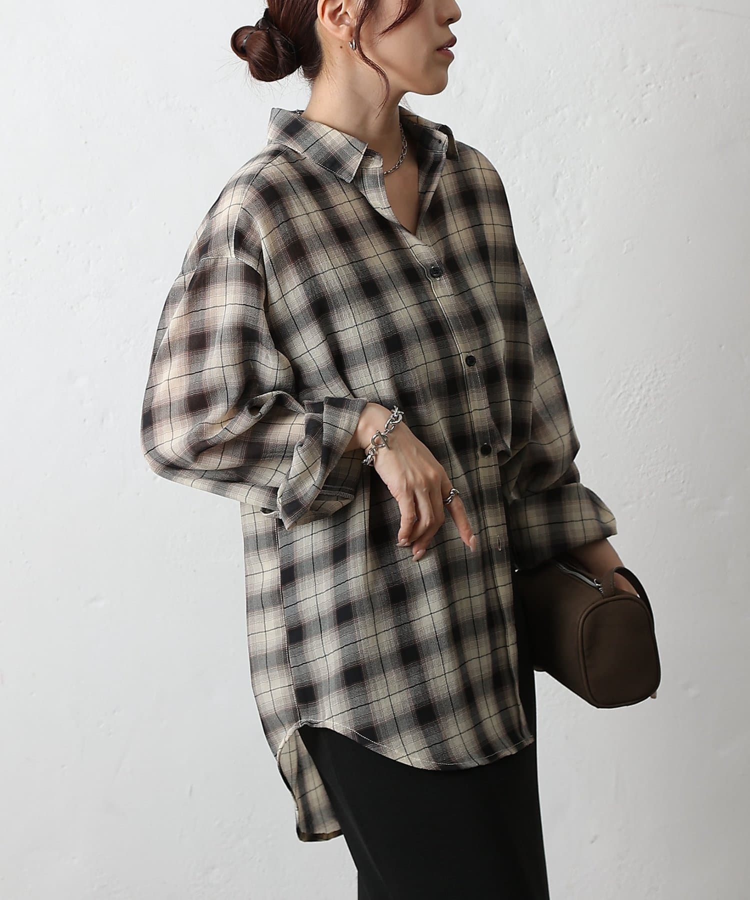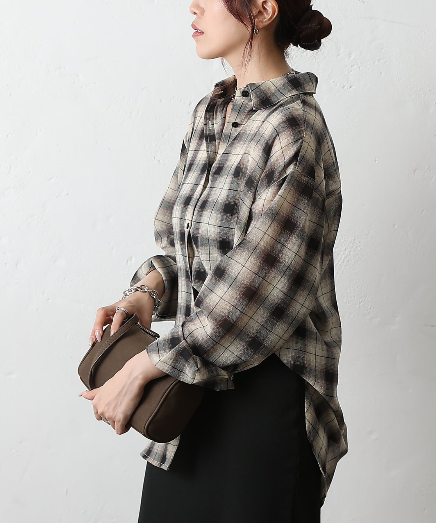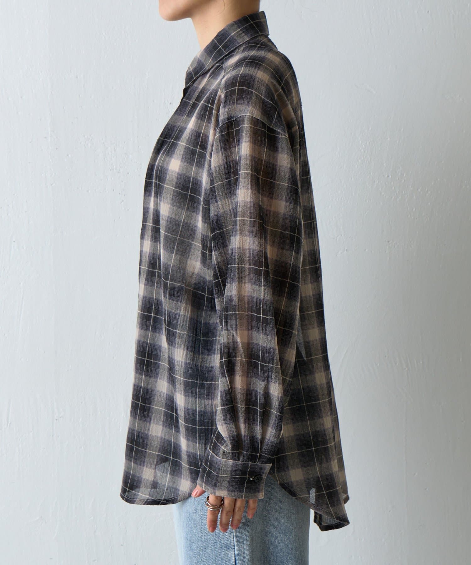 シアーボイルチェックオーバーシャツ