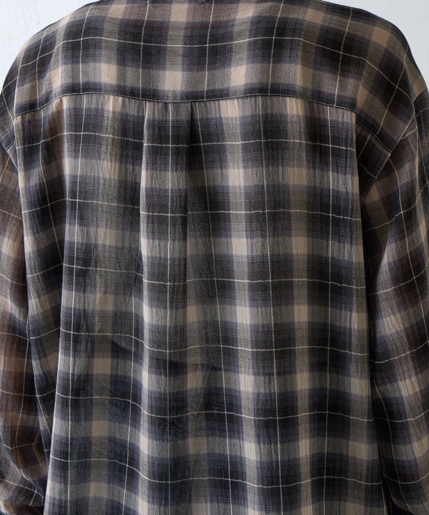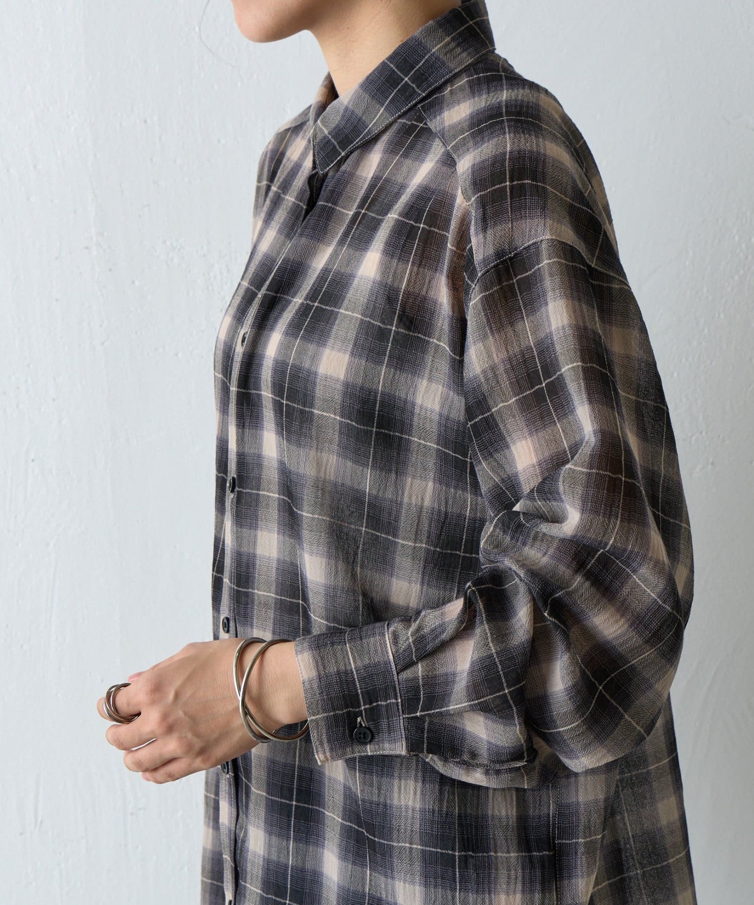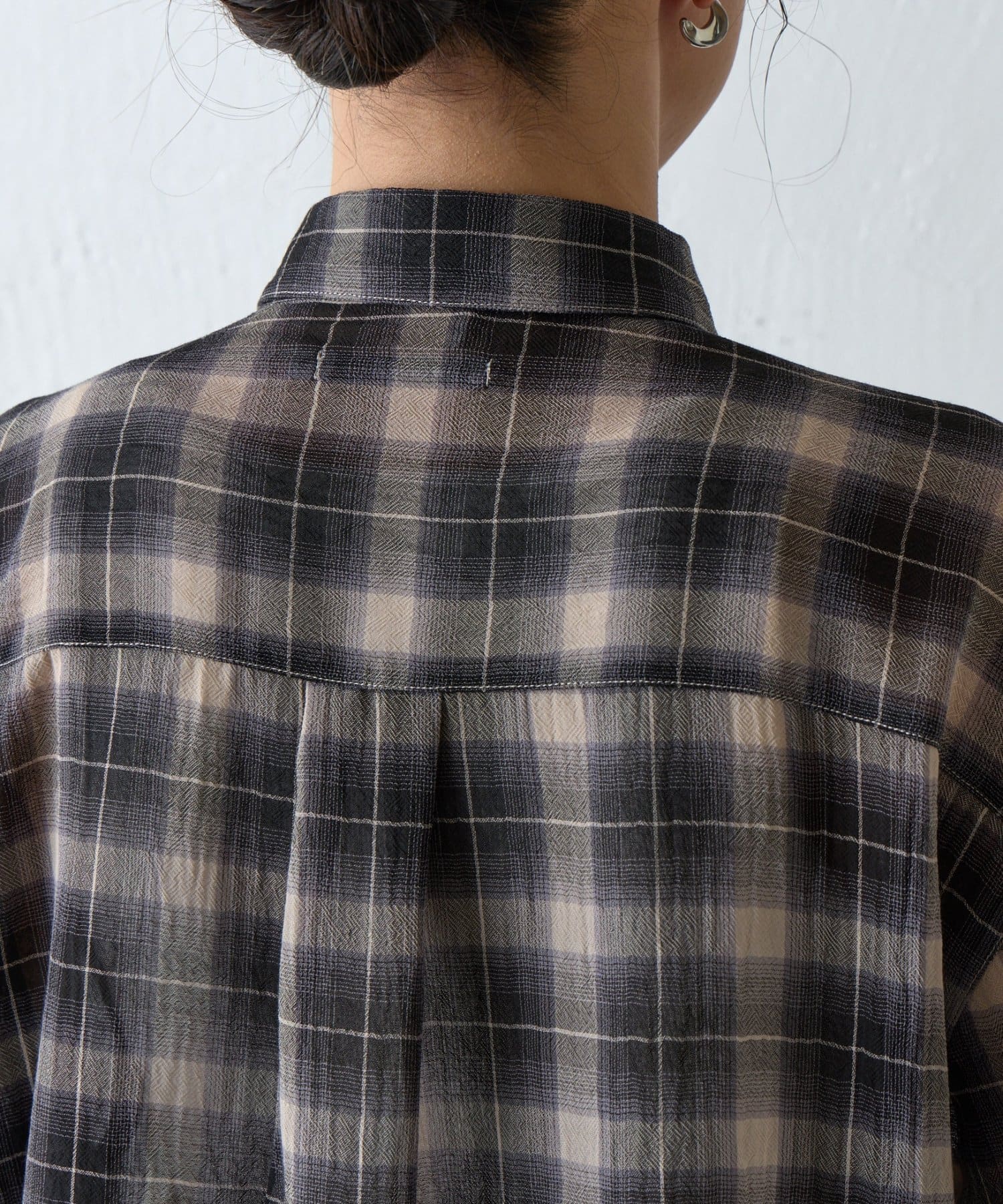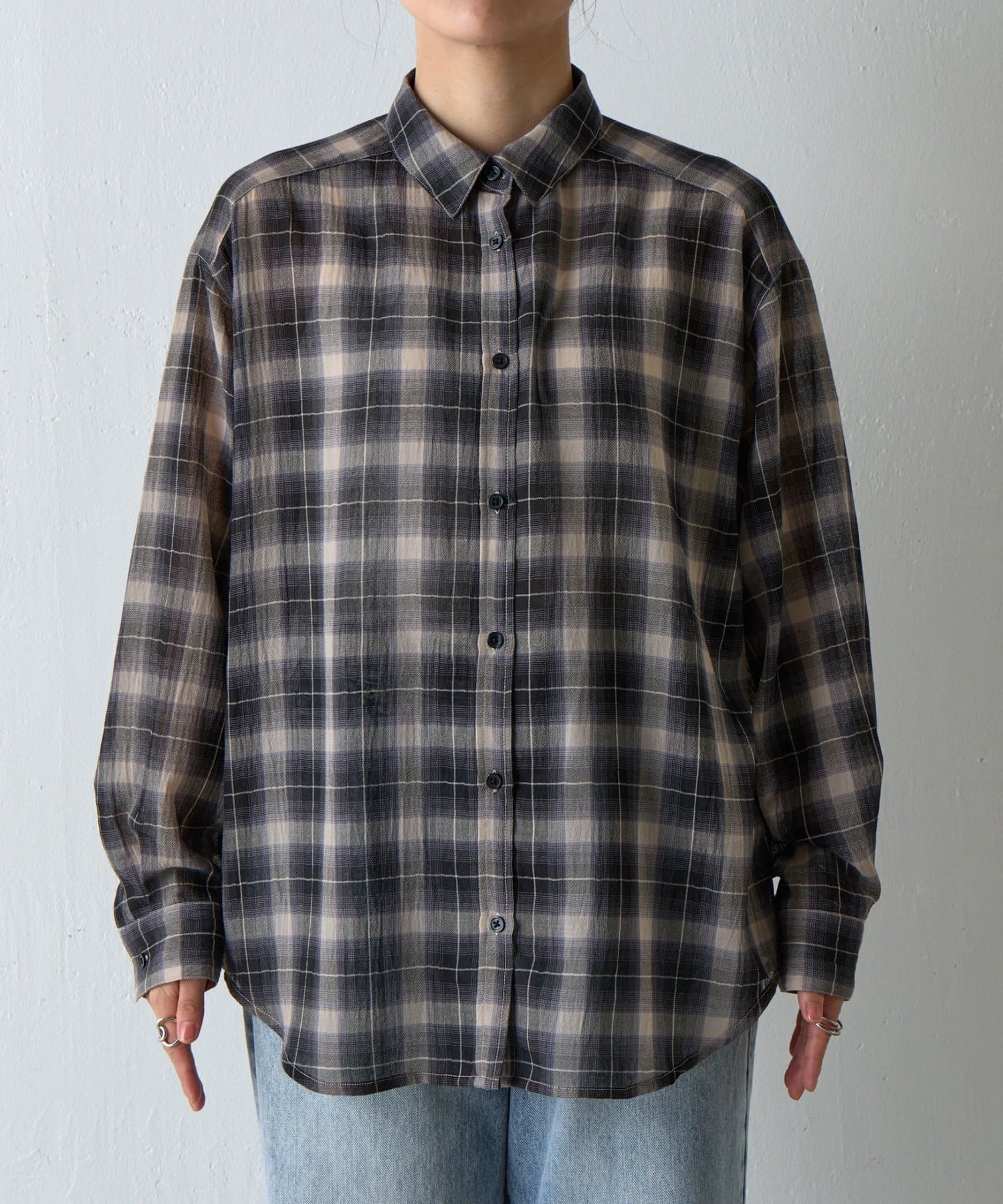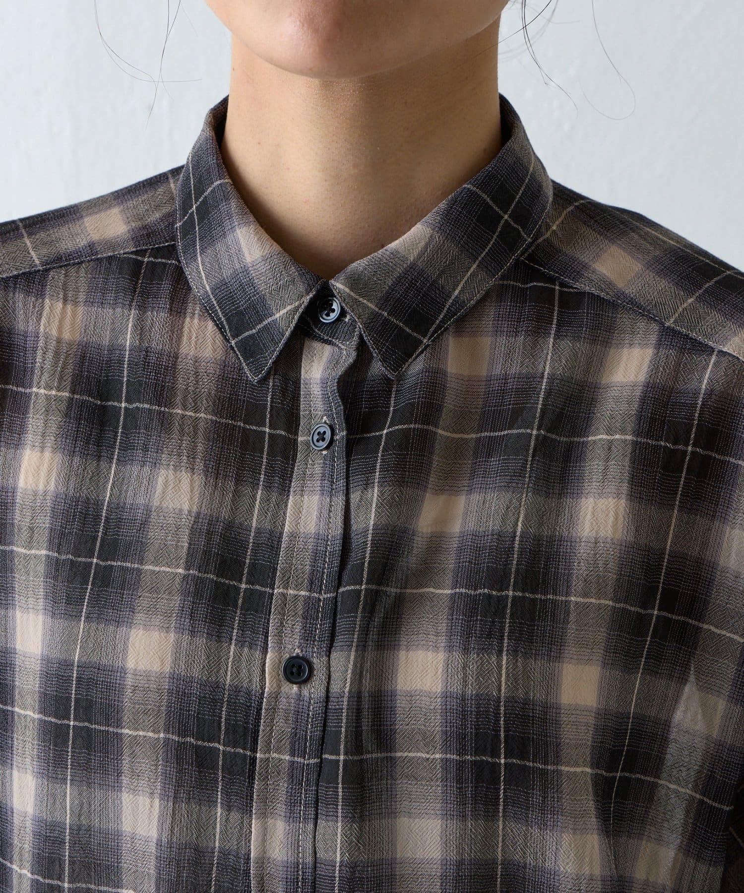 ふんわりとした軽やかなボイル素材に、ほんのり透けるシアー感と爽やかなチェック柄を掛け合わせたオーバーシャツ。