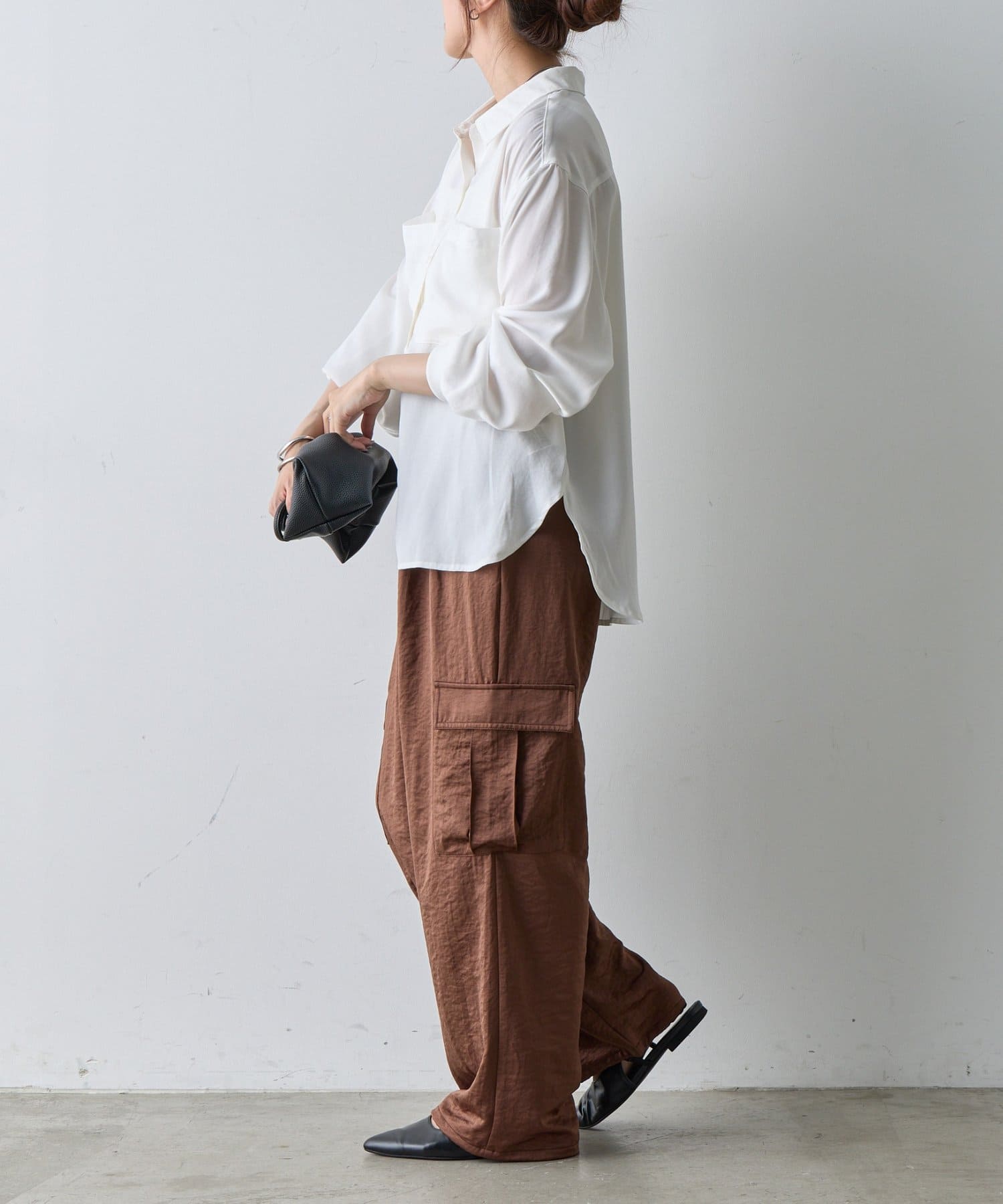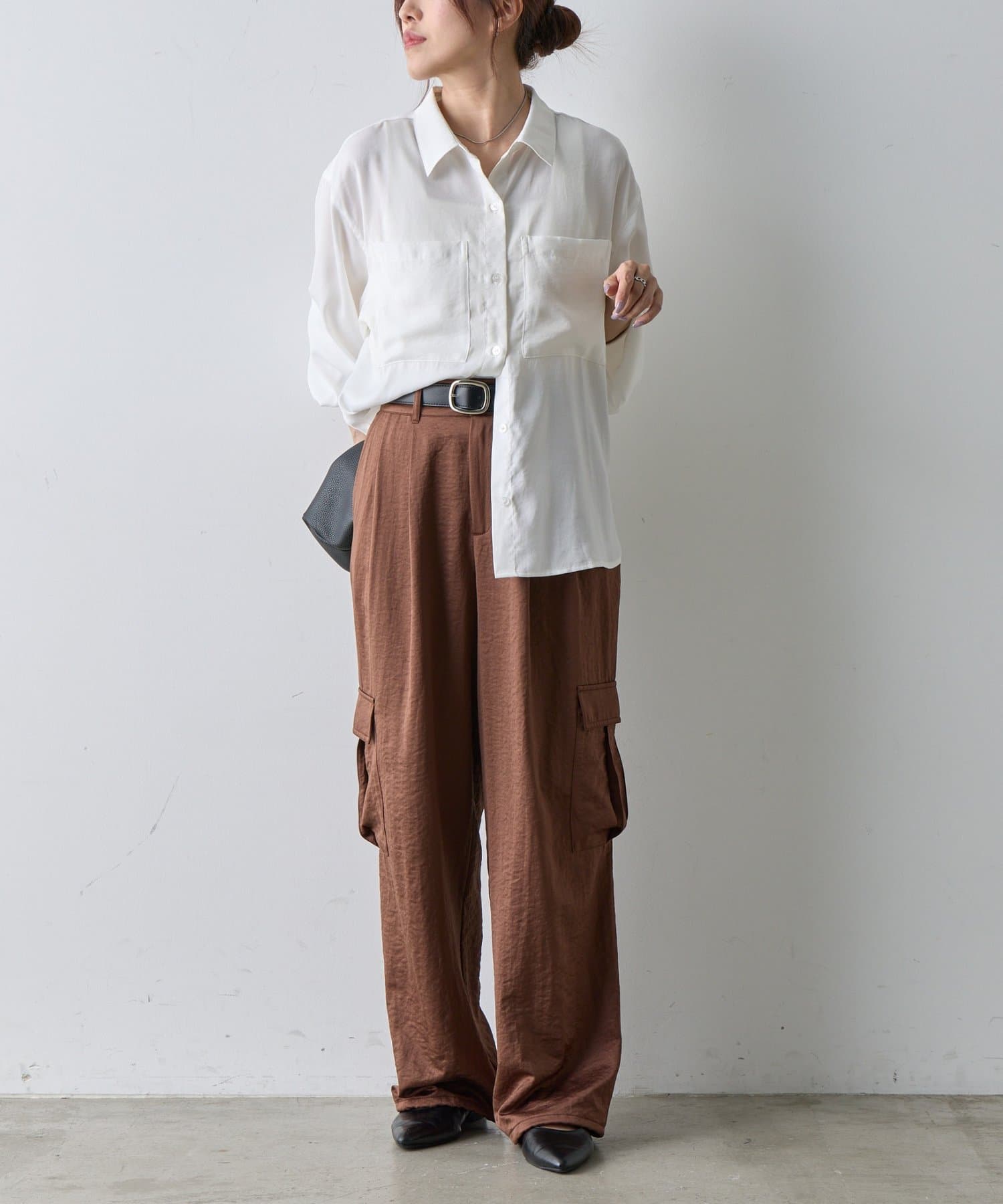 スラックスやデニム、ワイドパンツなど幅広いボトムスと好相性で、季節の変わり目にも重宝します。
