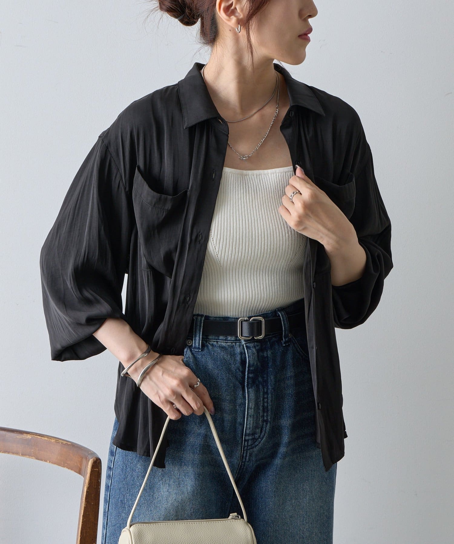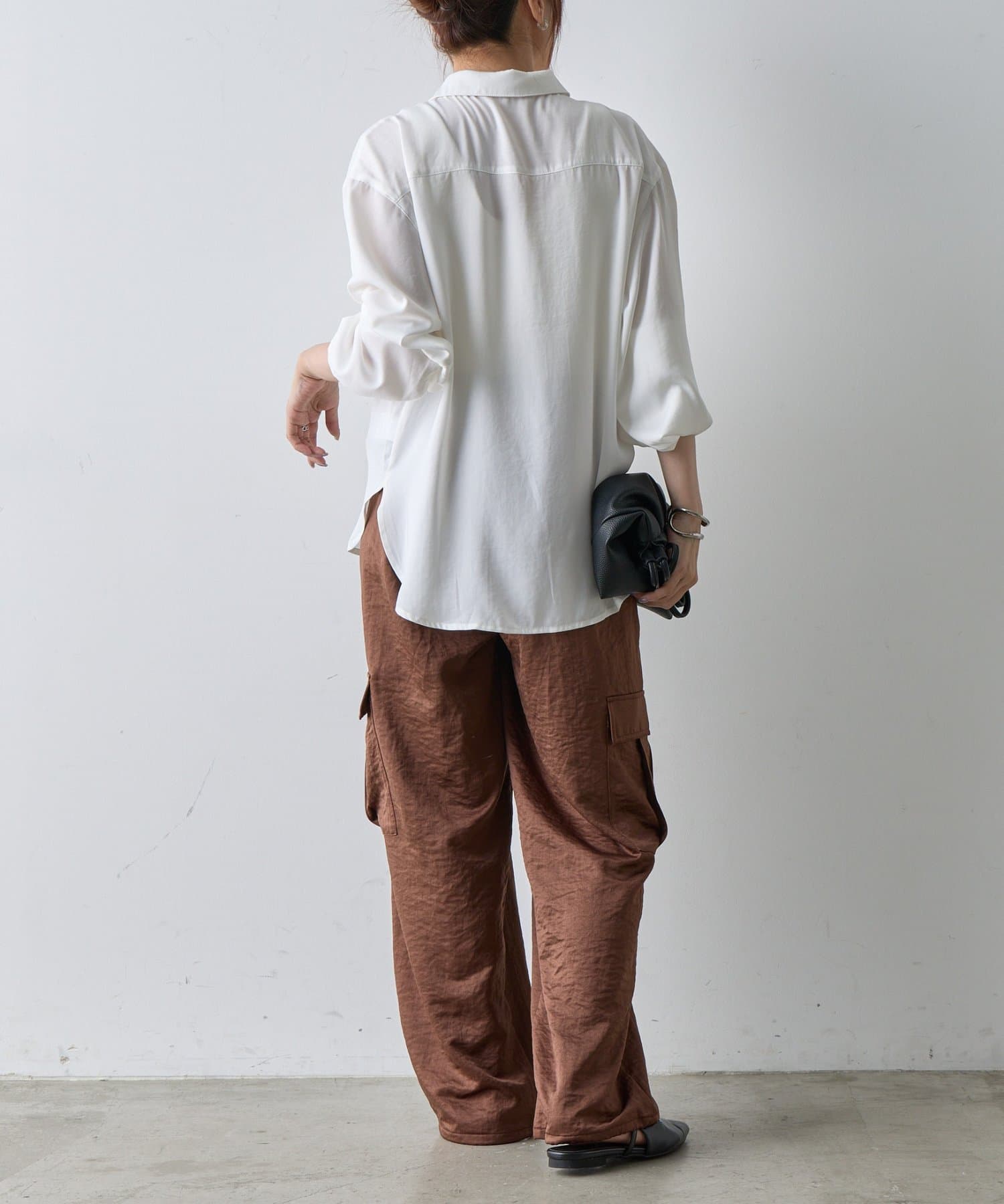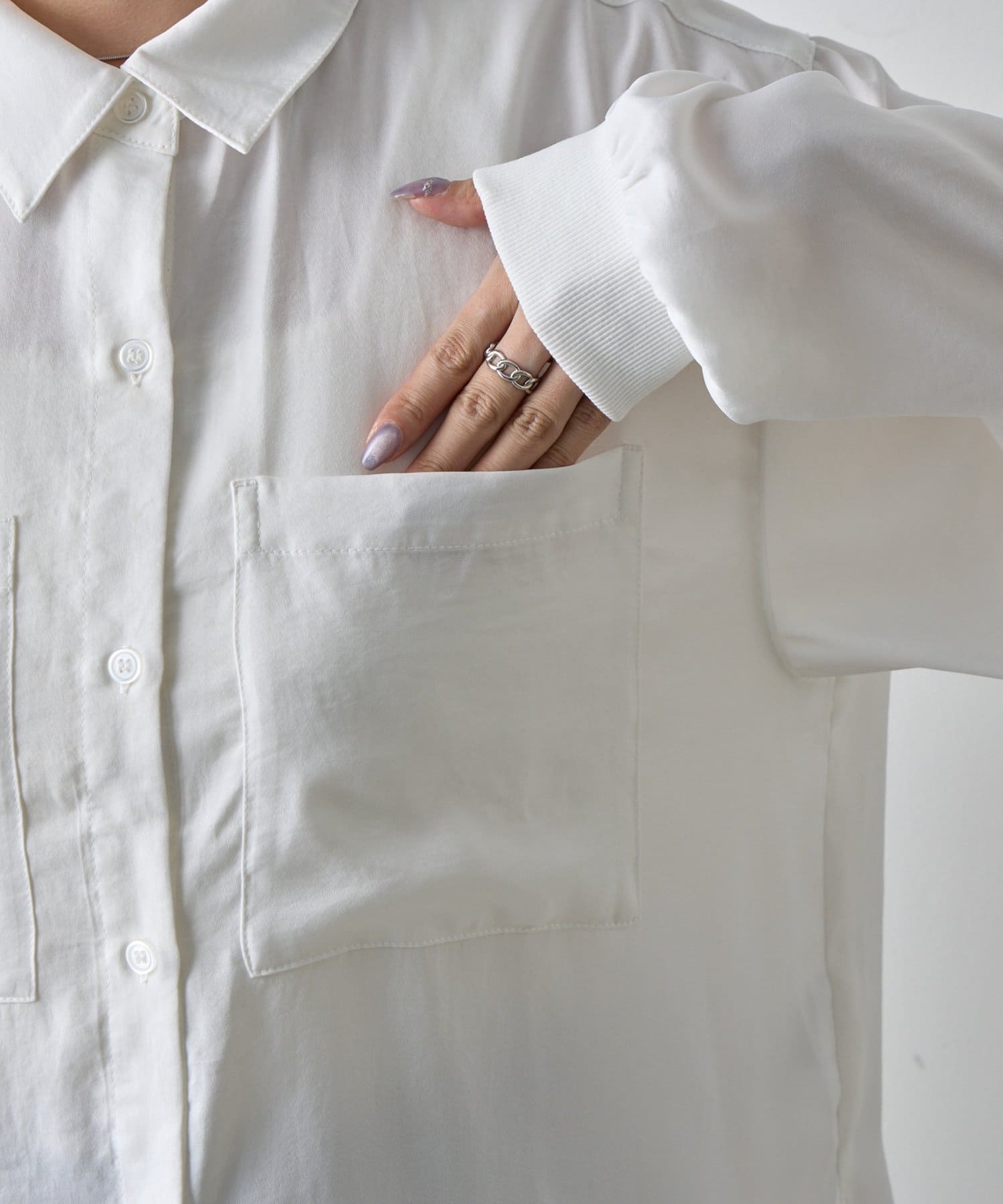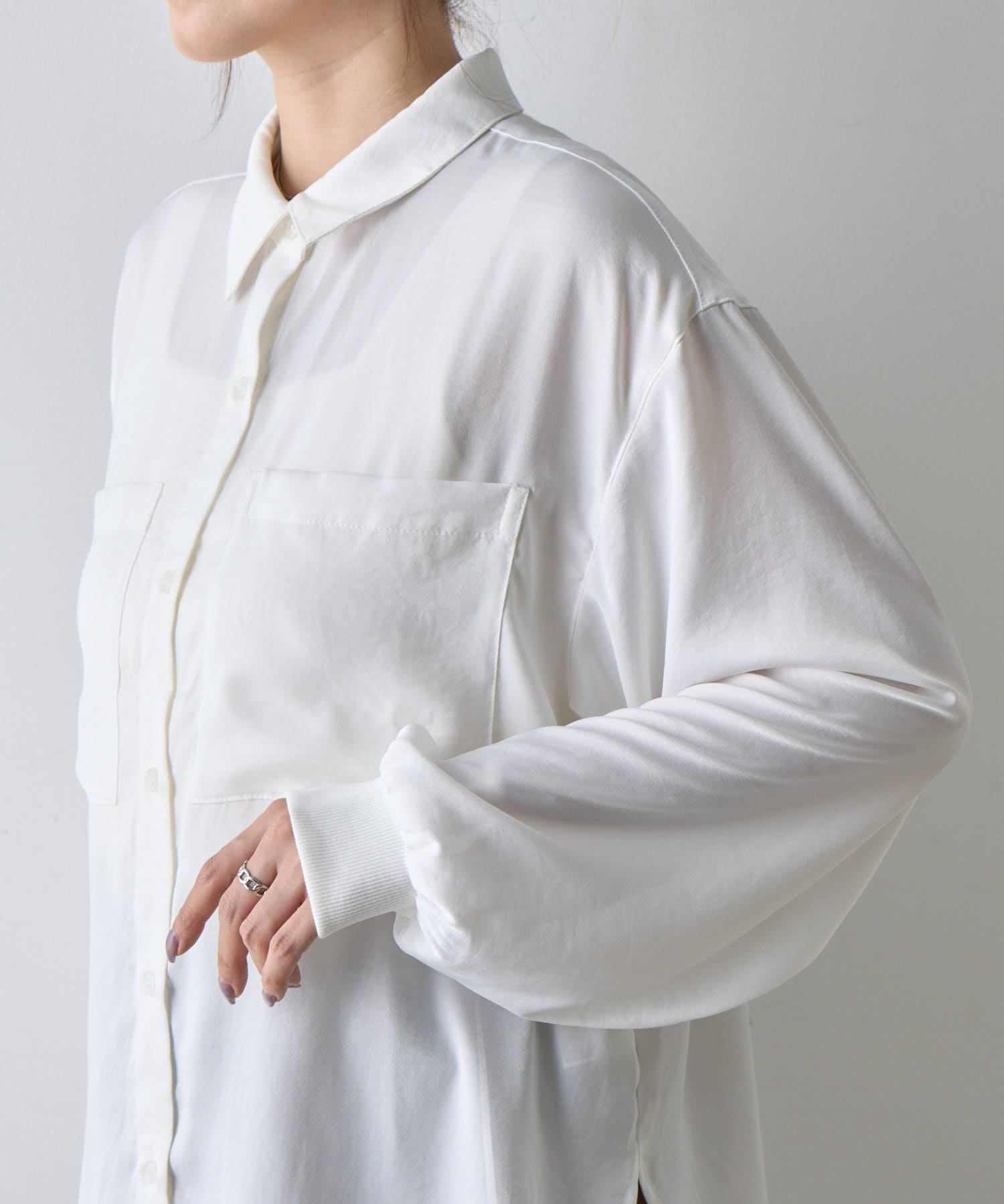 【軽やか素材で着心地◎ エステルワッシャー袖リブシャツ】