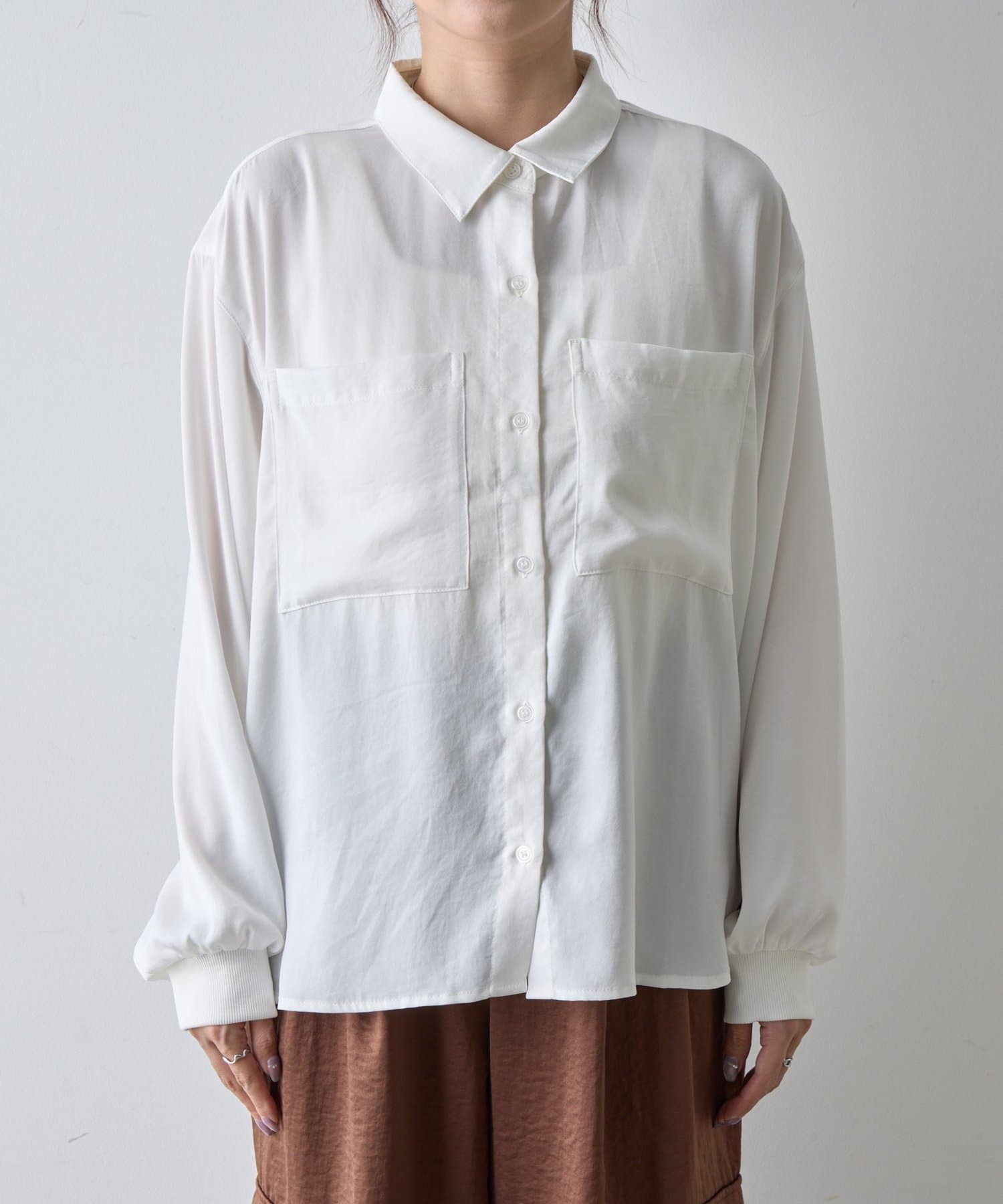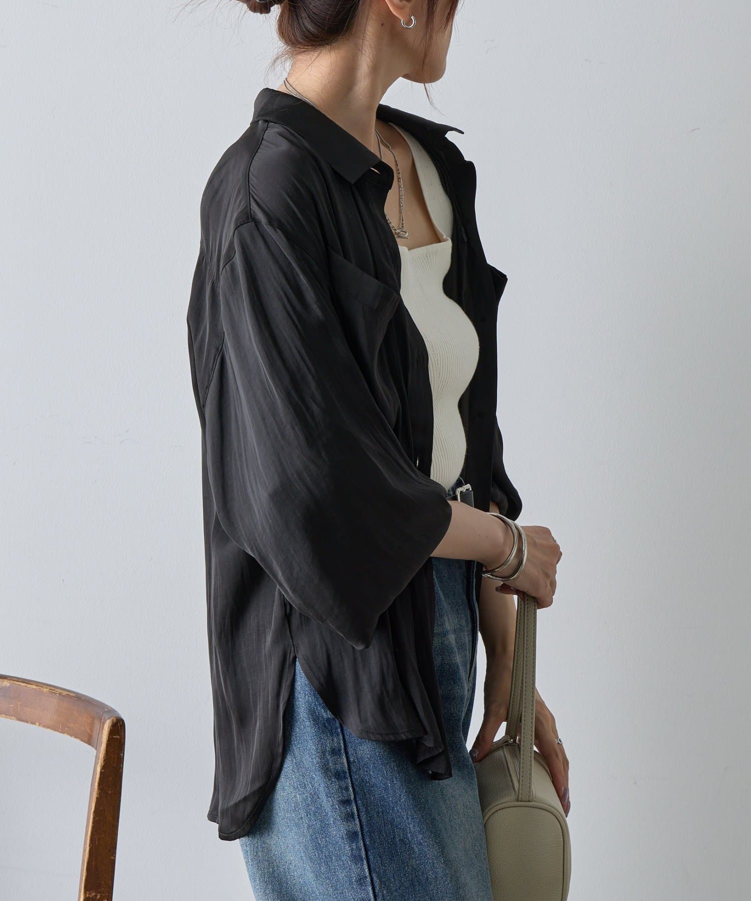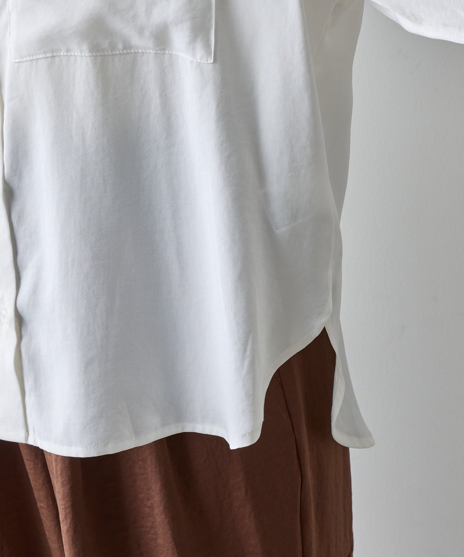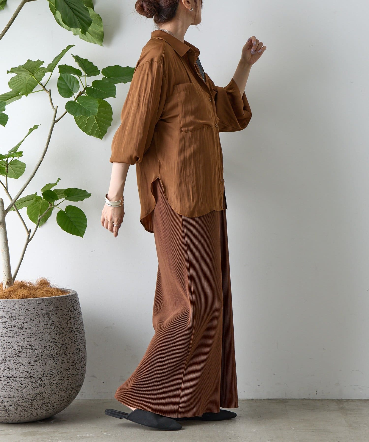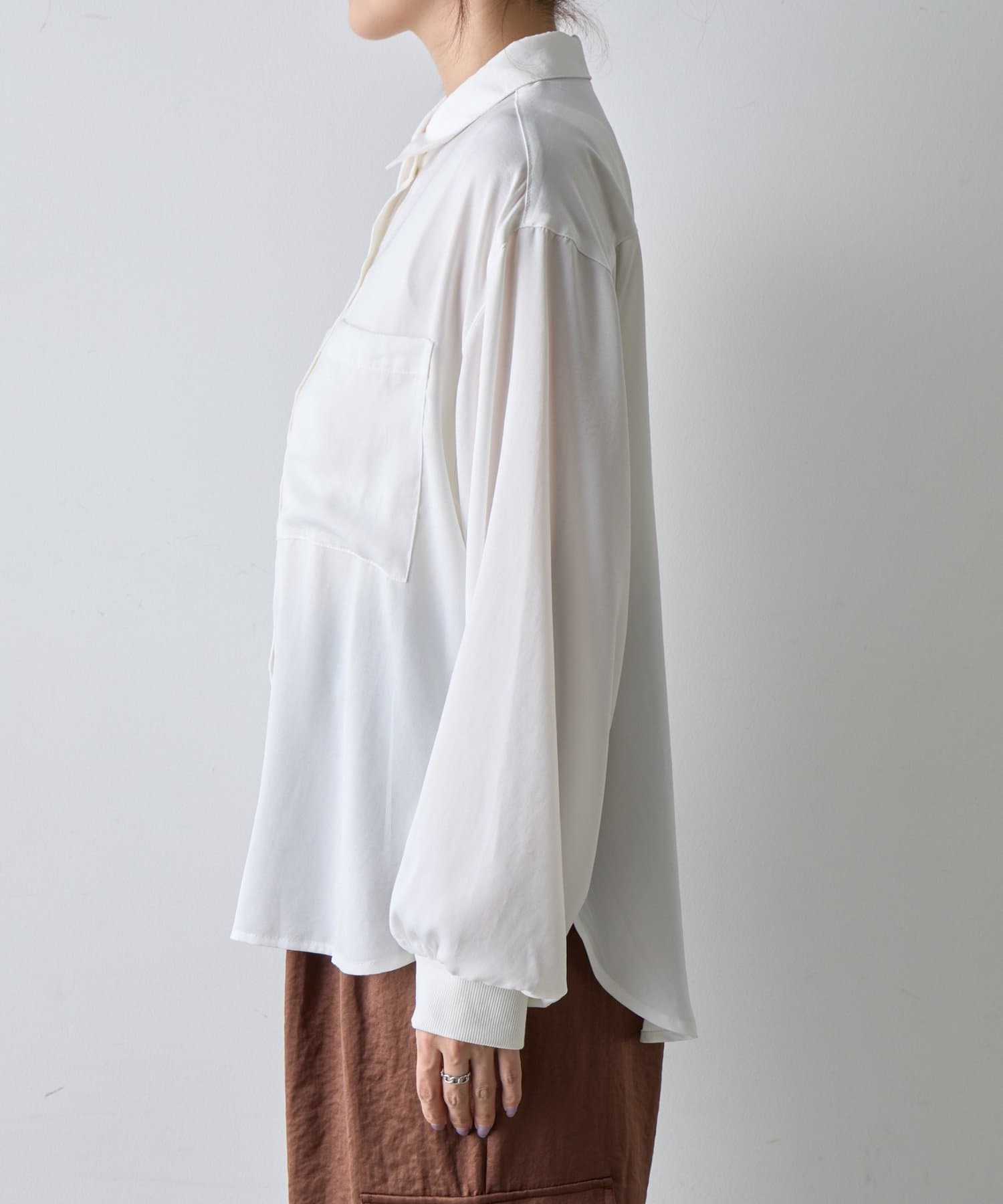 【軽やか素材で着心地◎ エステルワッシャー袖リブシャツ】