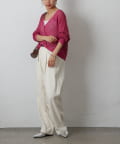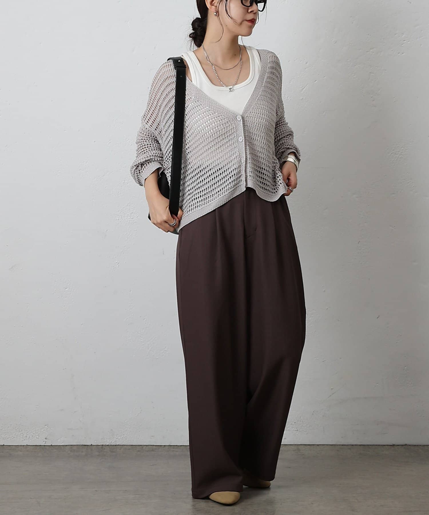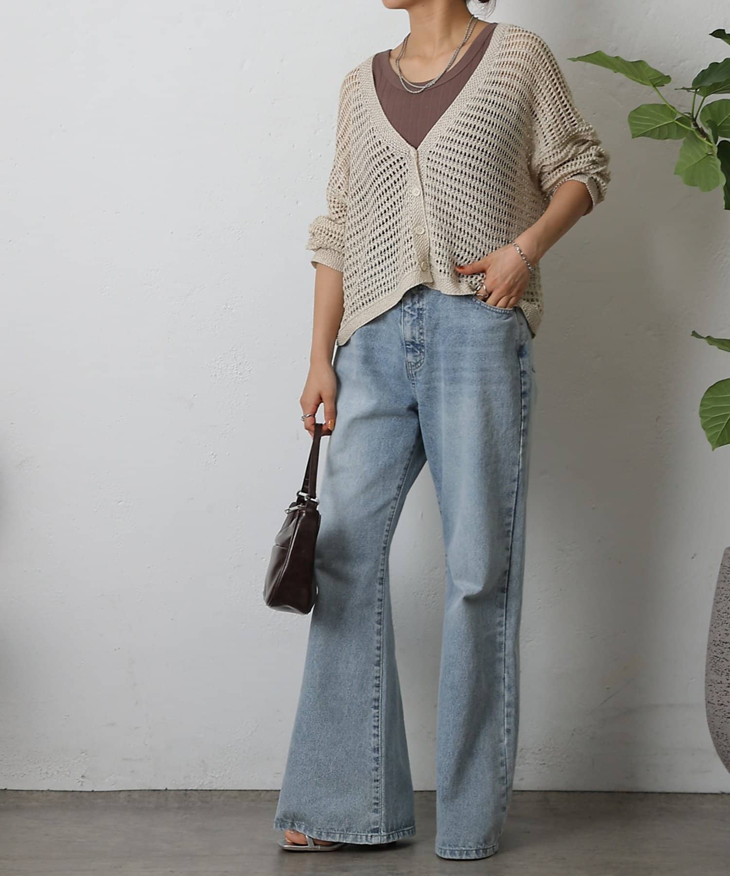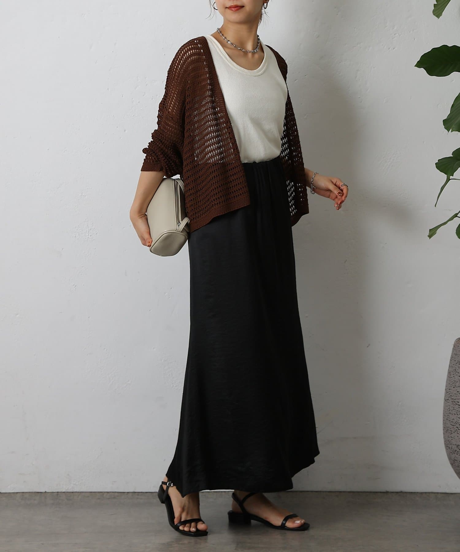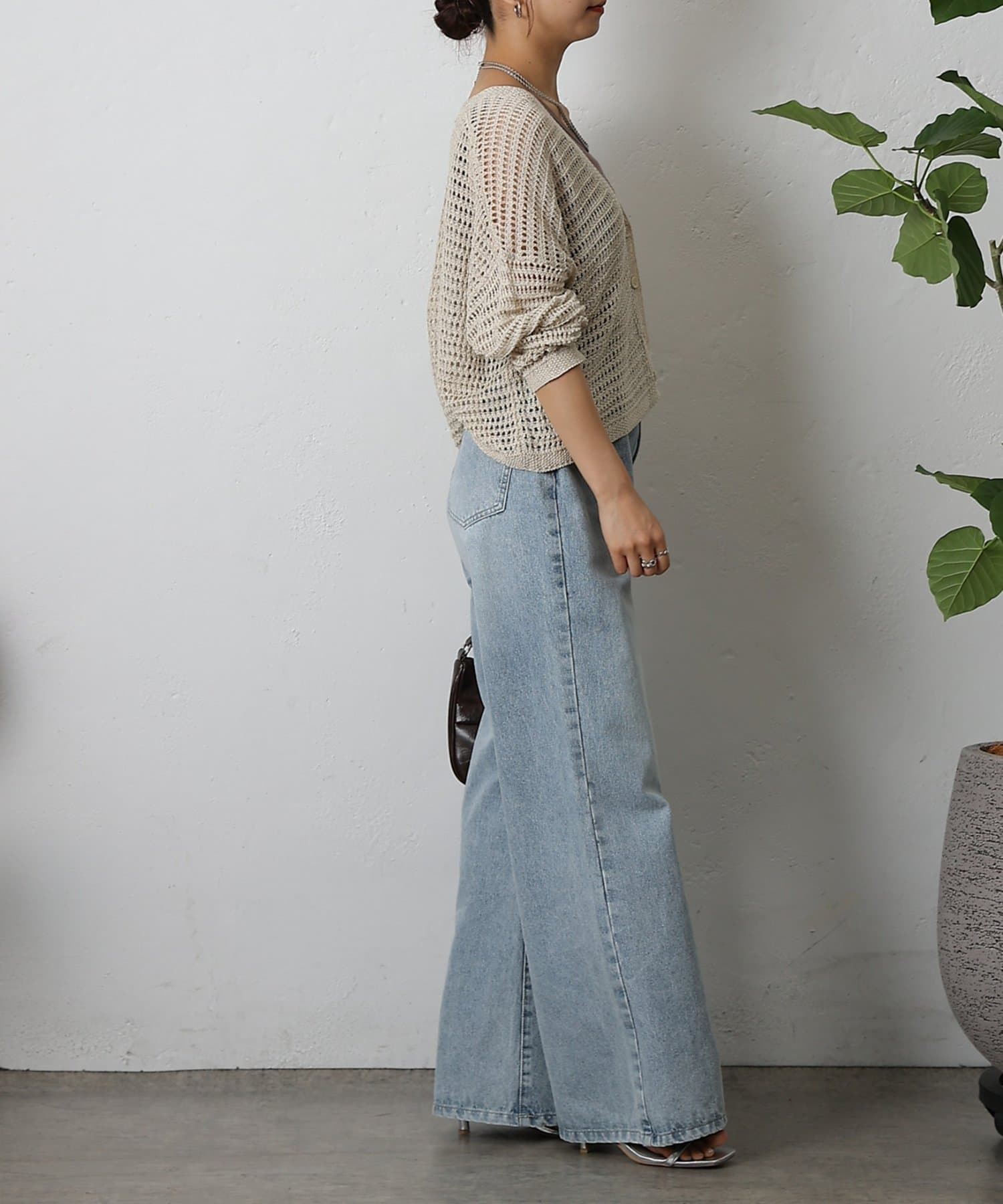 コーディネートに軽やかな風を吹き込む、ざっくりニットのメッシュ編みカーディガン。いつものスタイルにプラスするだけで、トレンド感あふれる着こなしが完成します。ざっくりとした編み目が、程よい抜け感を演出し、大人の余裕を感じさせるスタイルに。風通しの良いメッシュ編みは見た目にも涼しげで、これからの季節にぴったりです。タンクトップやキャミソールに重ねて、ヘルシーな肌見せを楽しむのはもちろん、ワンピースやブラウスに羽織って、上品なレイヤードスタイルを楽しむのもおすすめ。旅行などのちょっとしたお出かけにバッグに忍ばせておけば、必要な時にさっと羽織れてとっても便利。麻混素材なのでさらりとした肌触りで快適な着心地。天然素材の風合いを生かしたナチュラルな色合いは、どんなコーディネートにも合わせやすのがうれしいポイント◎春夏秋とロングシーズン活躍間違いなしの頼れる1着です。