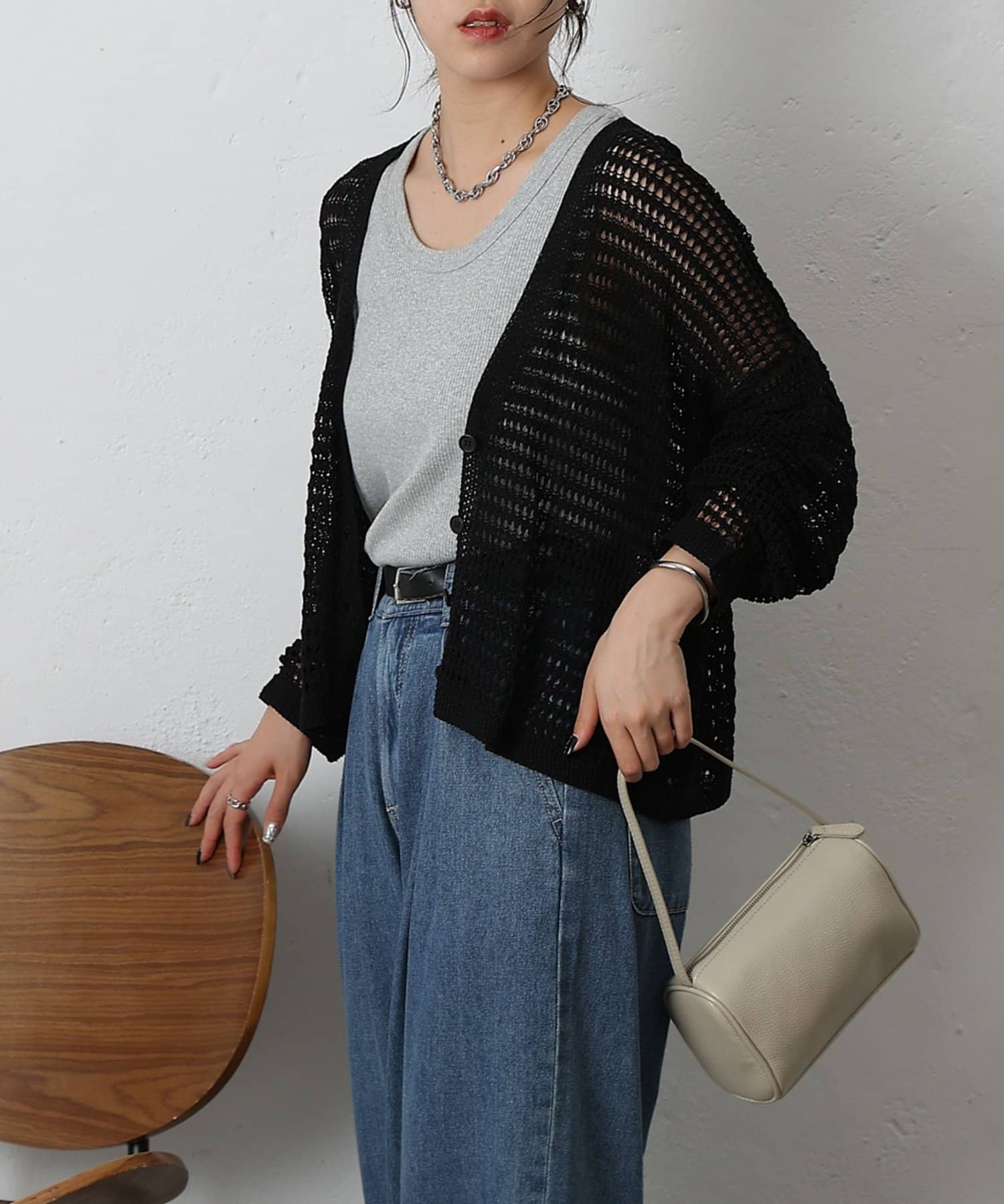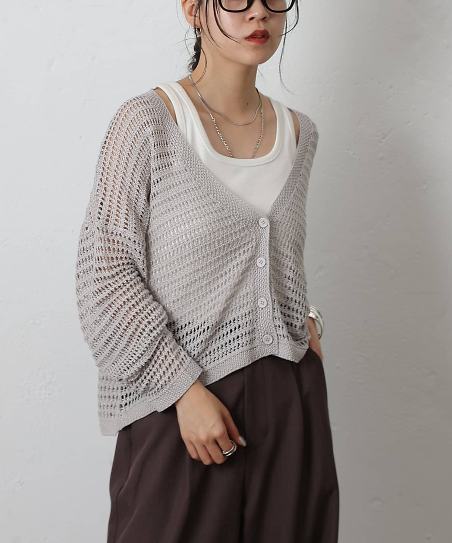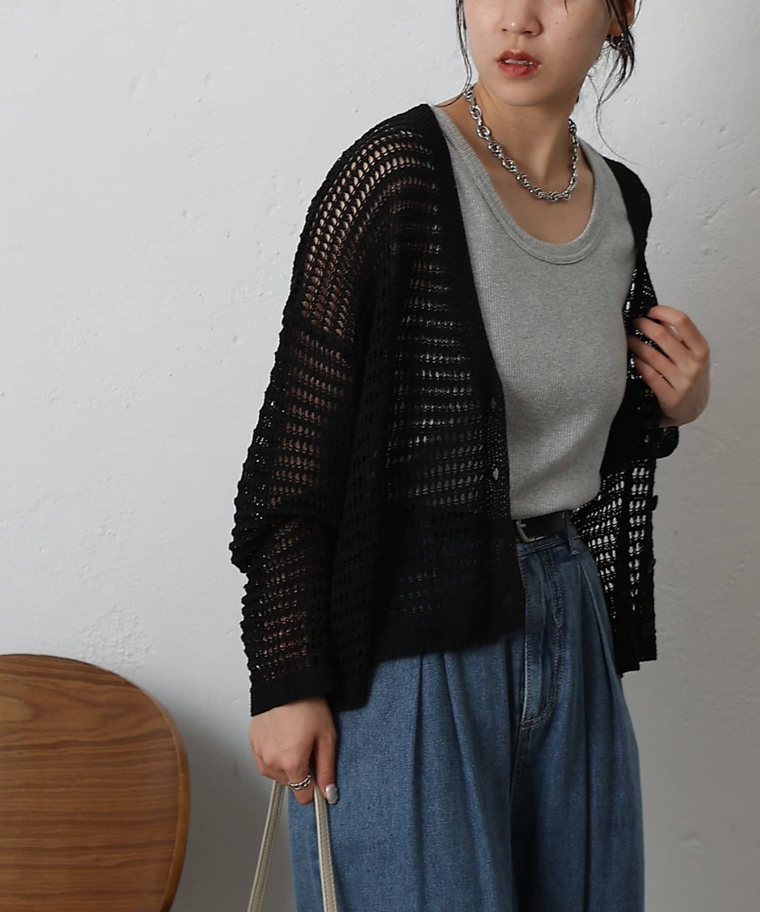 メッシュ編みカーディガン