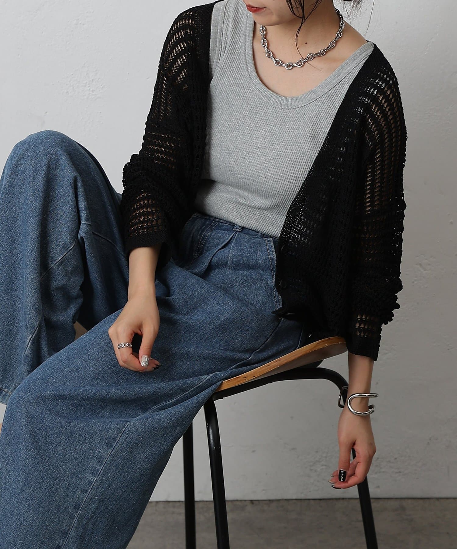 【涼しげメッシュ編みで叶える、ヘルシーな抜け感スタイル】