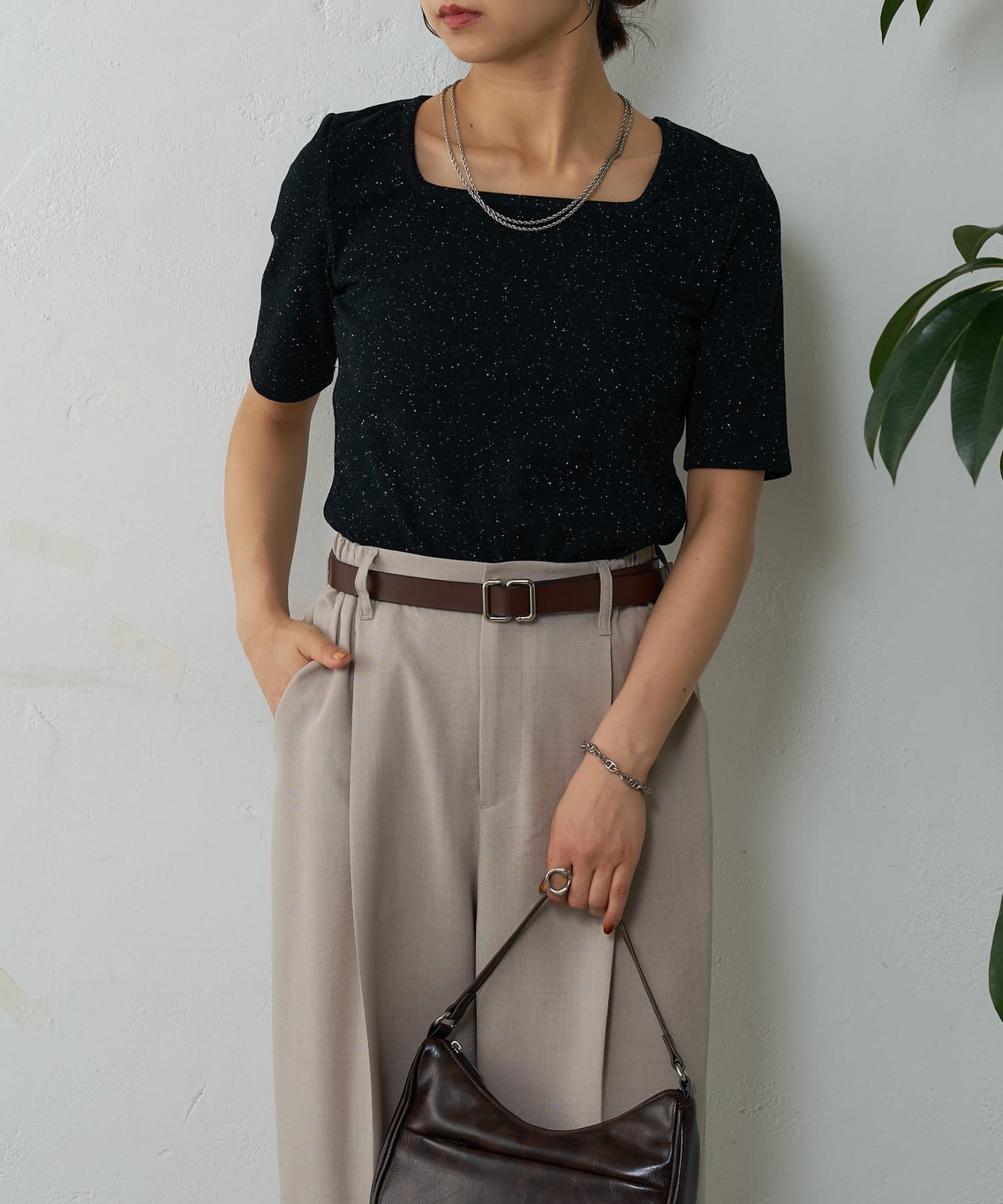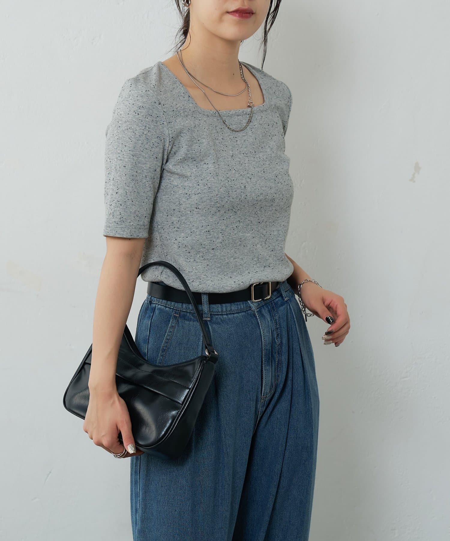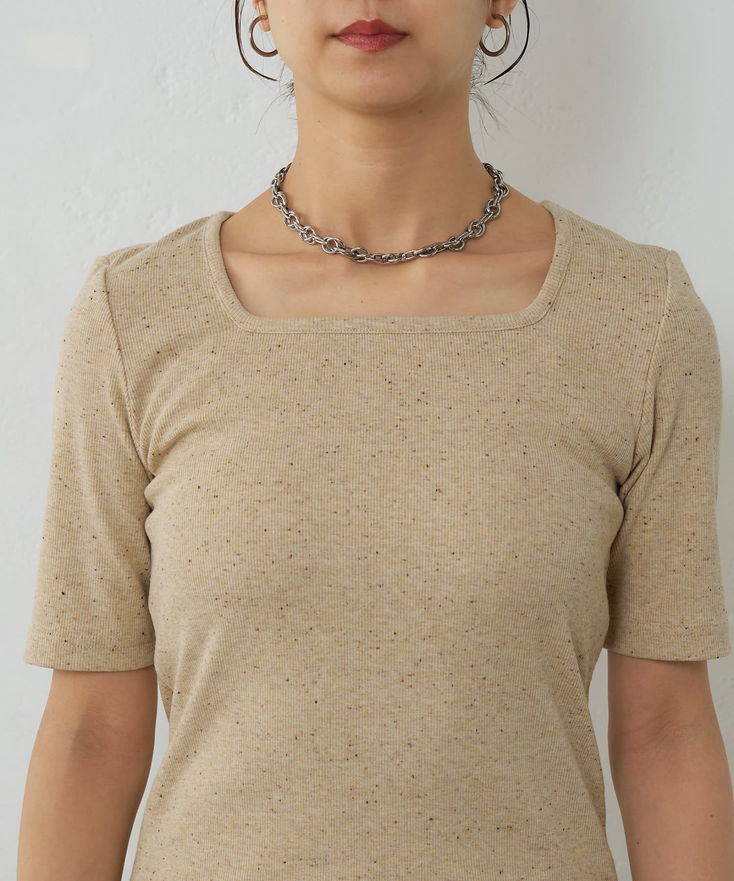 【着るだけで旬顔。ネップテレコのスクエアネックプルオーバー】