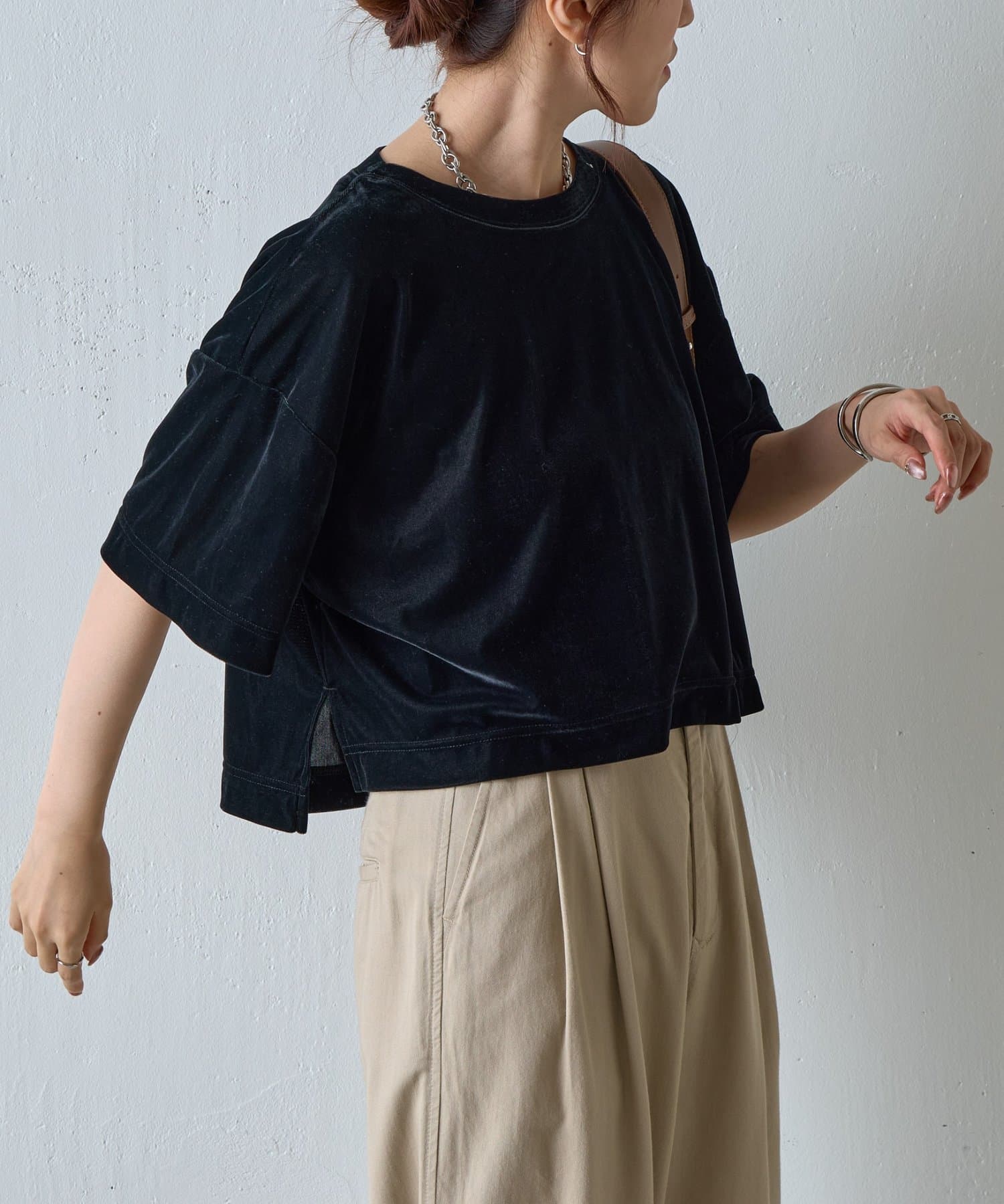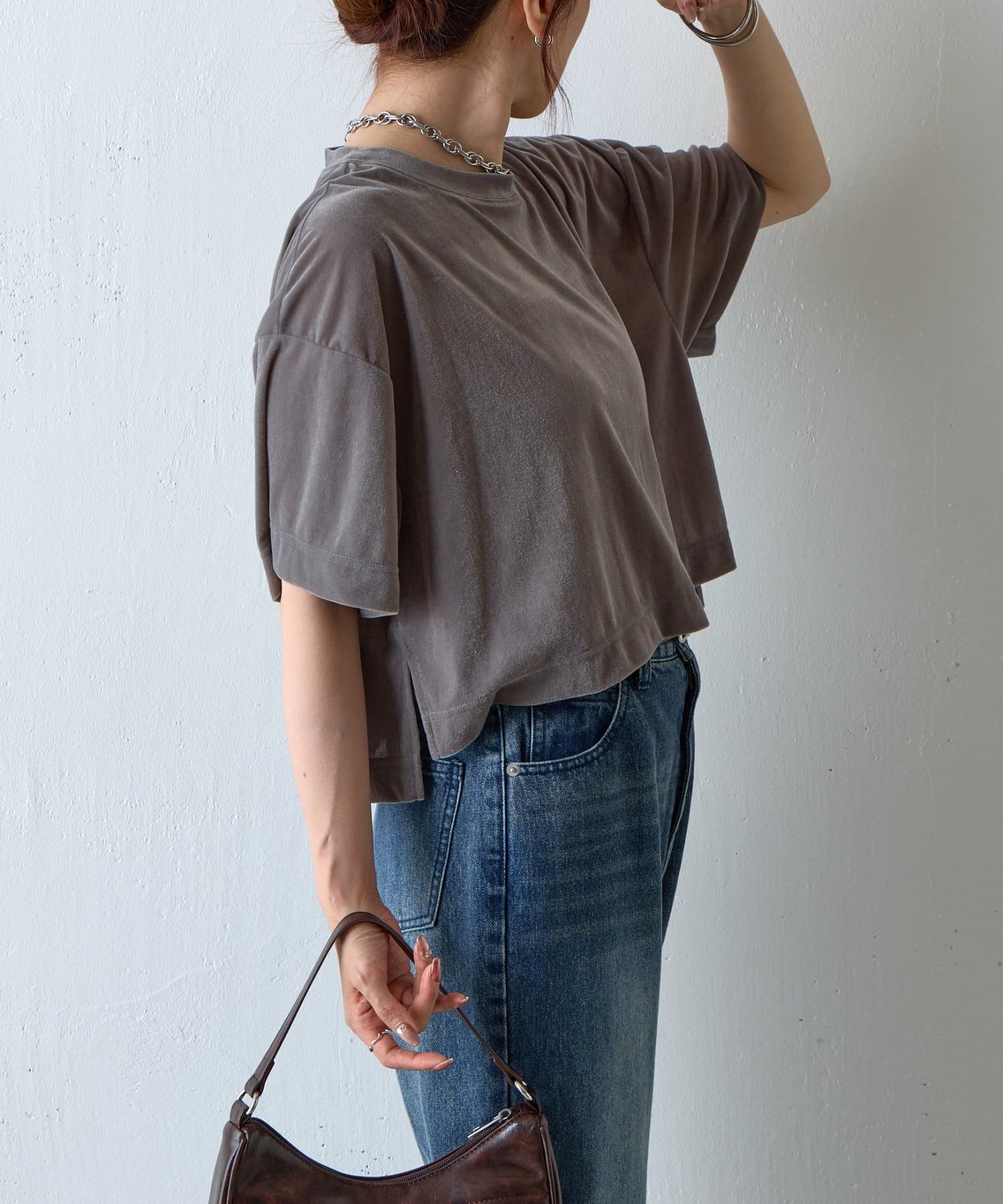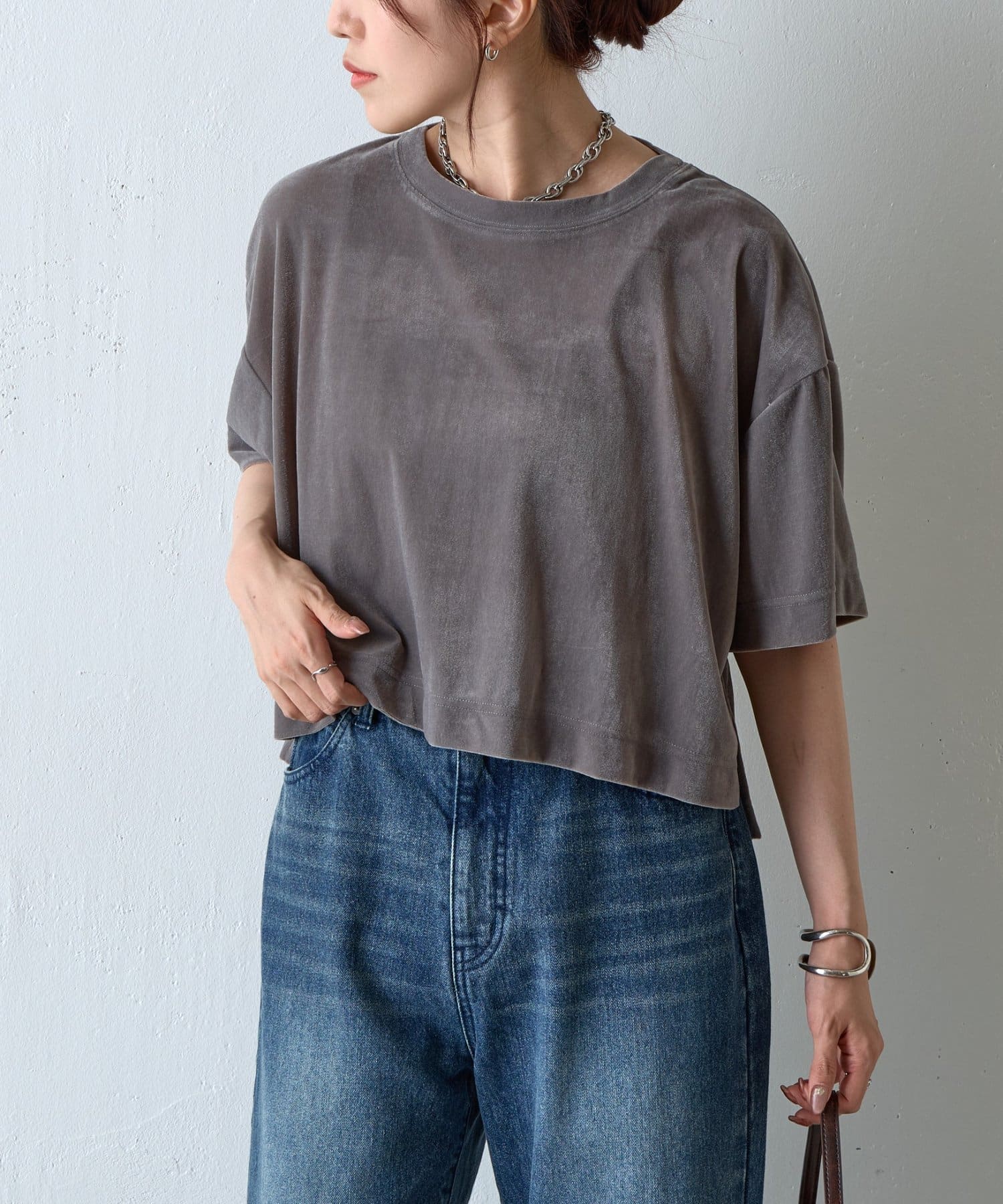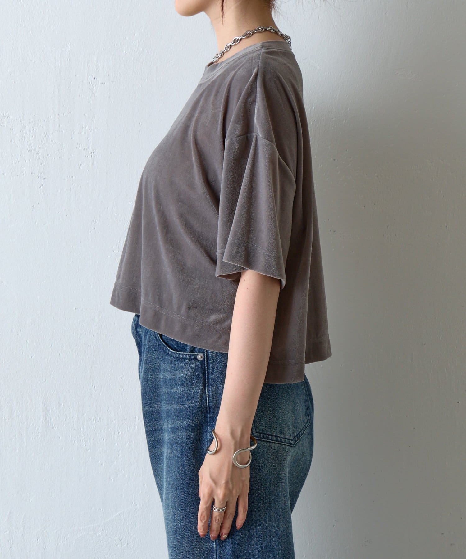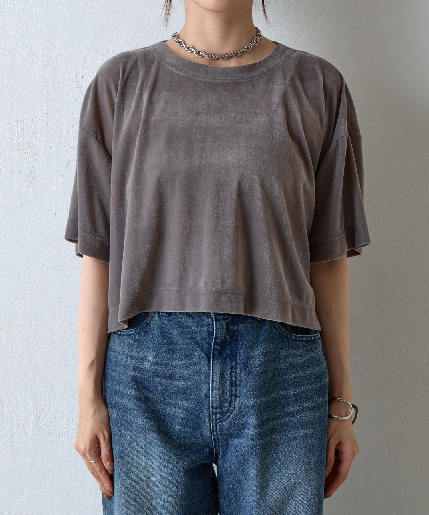 シアーベロアワイドクロップドTシャツ