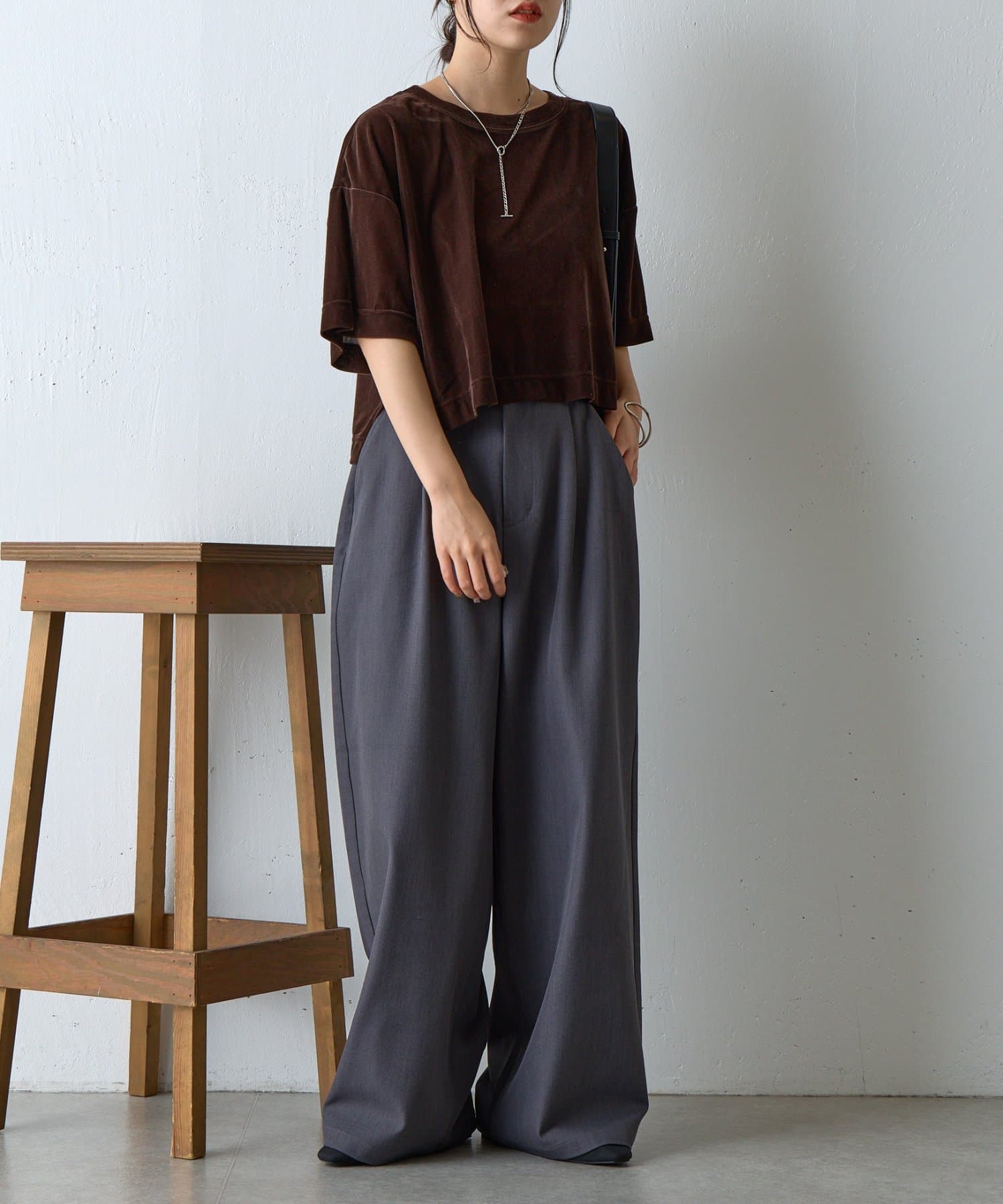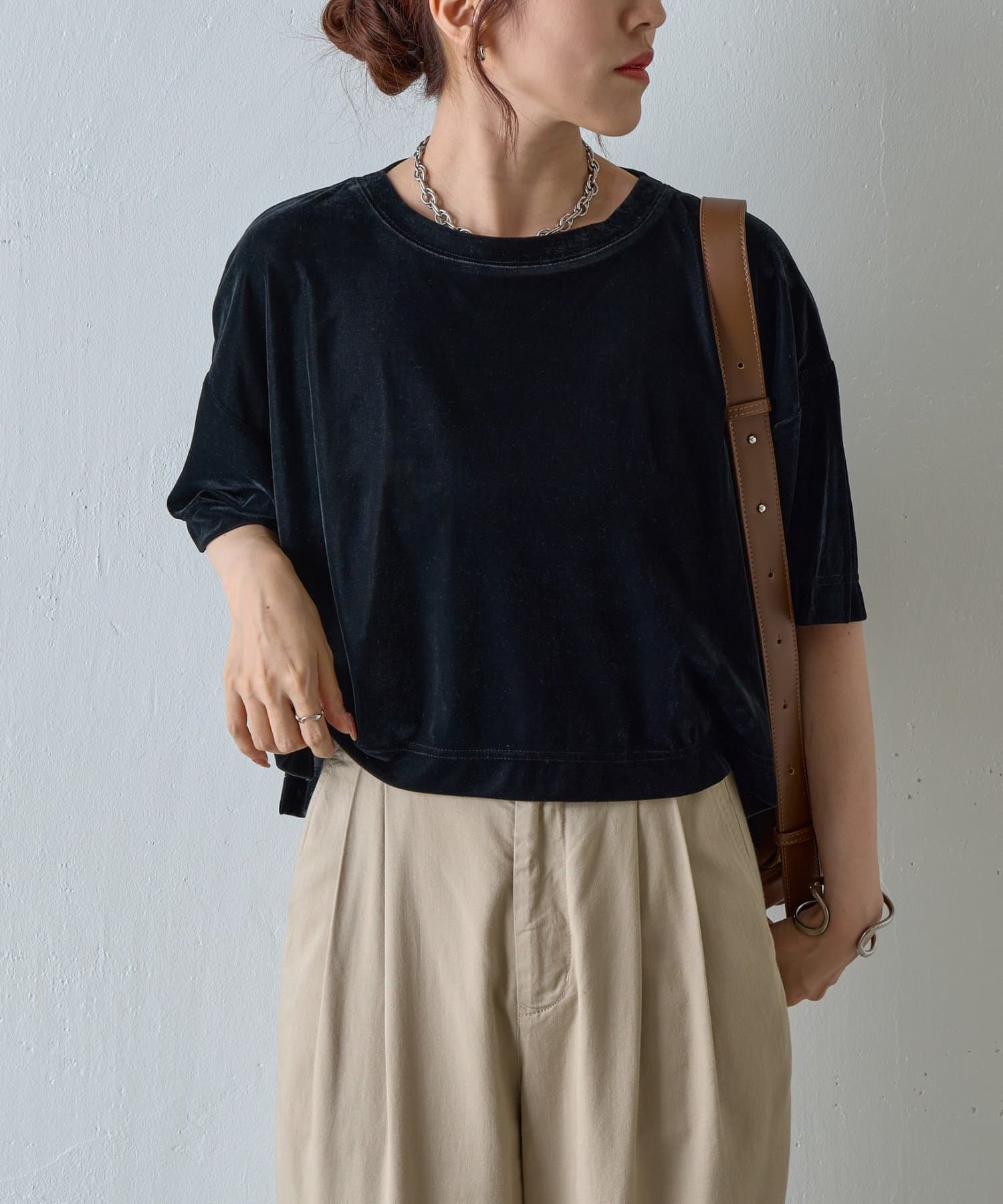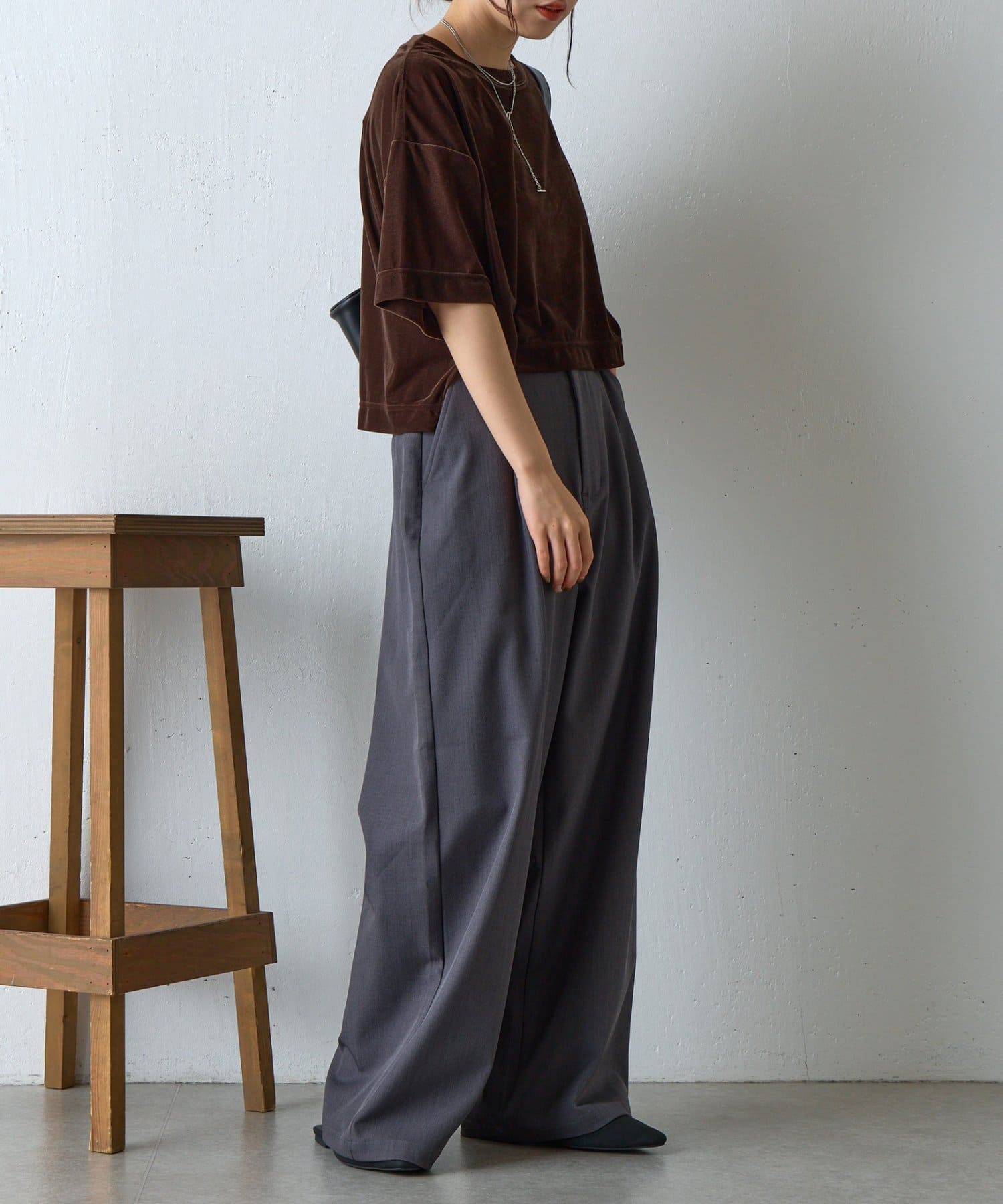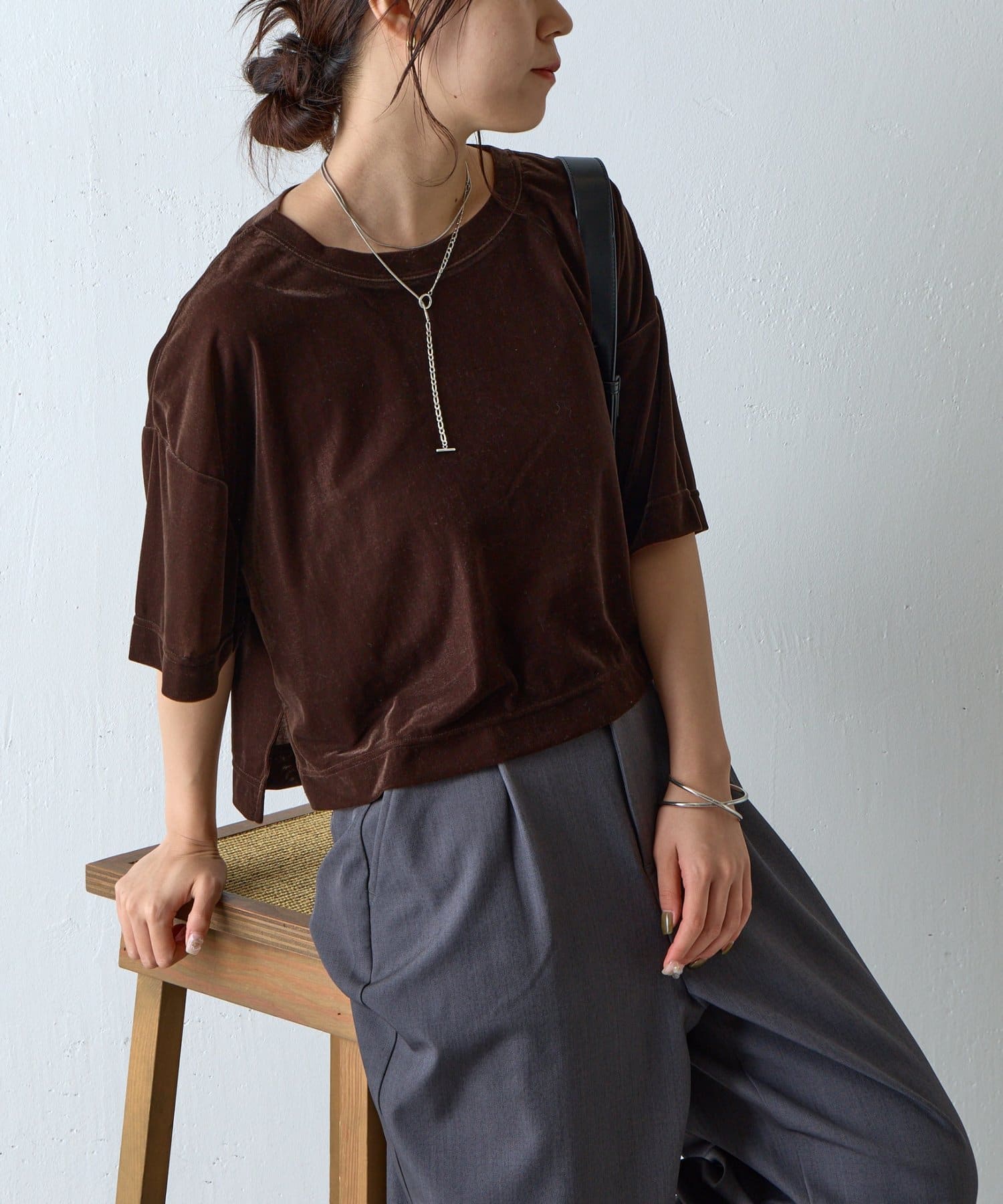 シアーベロアワイドクロップドTシャツ