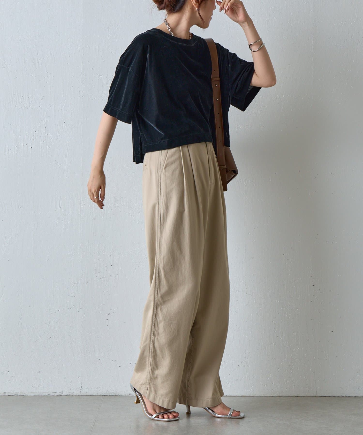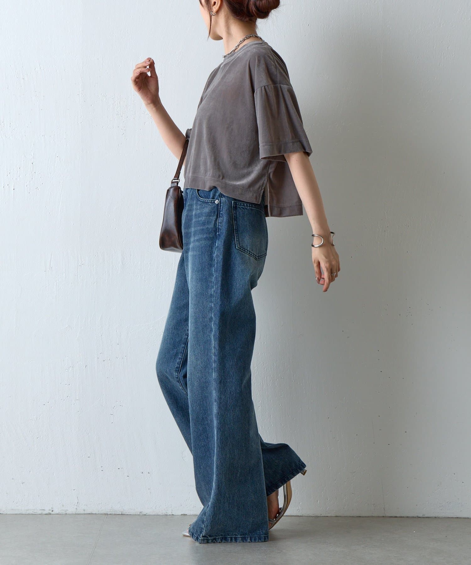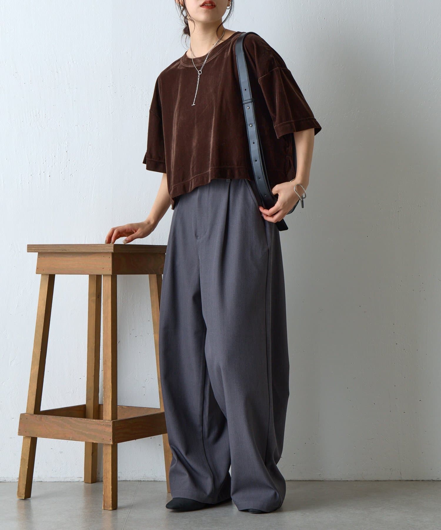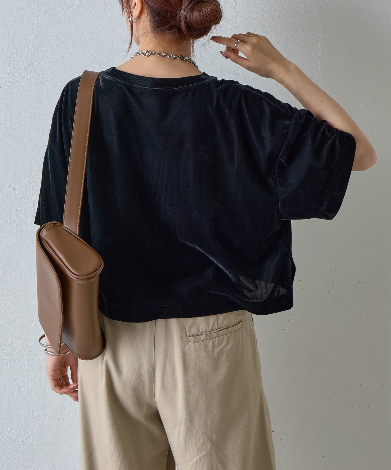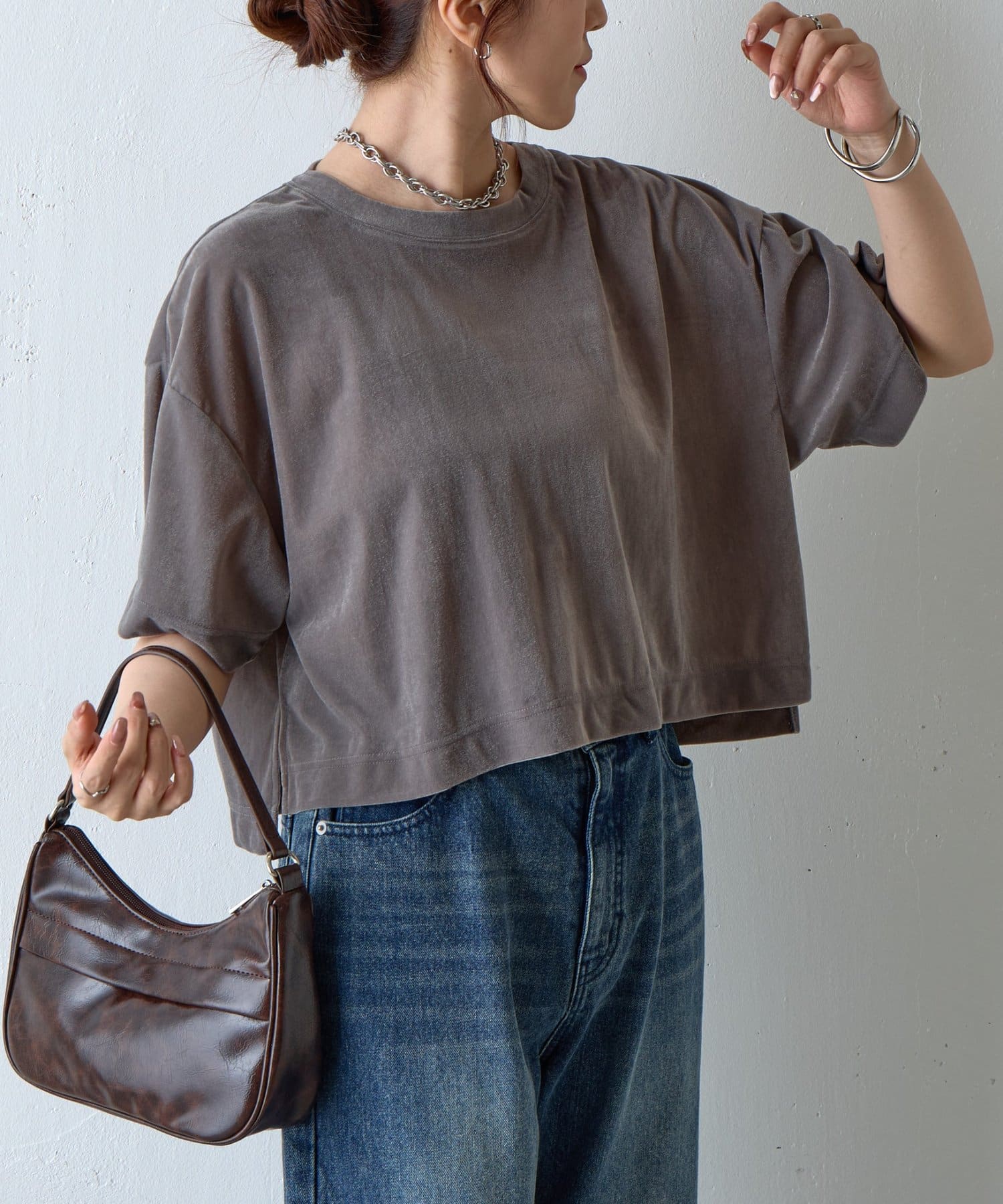 シアーベロアワイドクロップドTシャツ