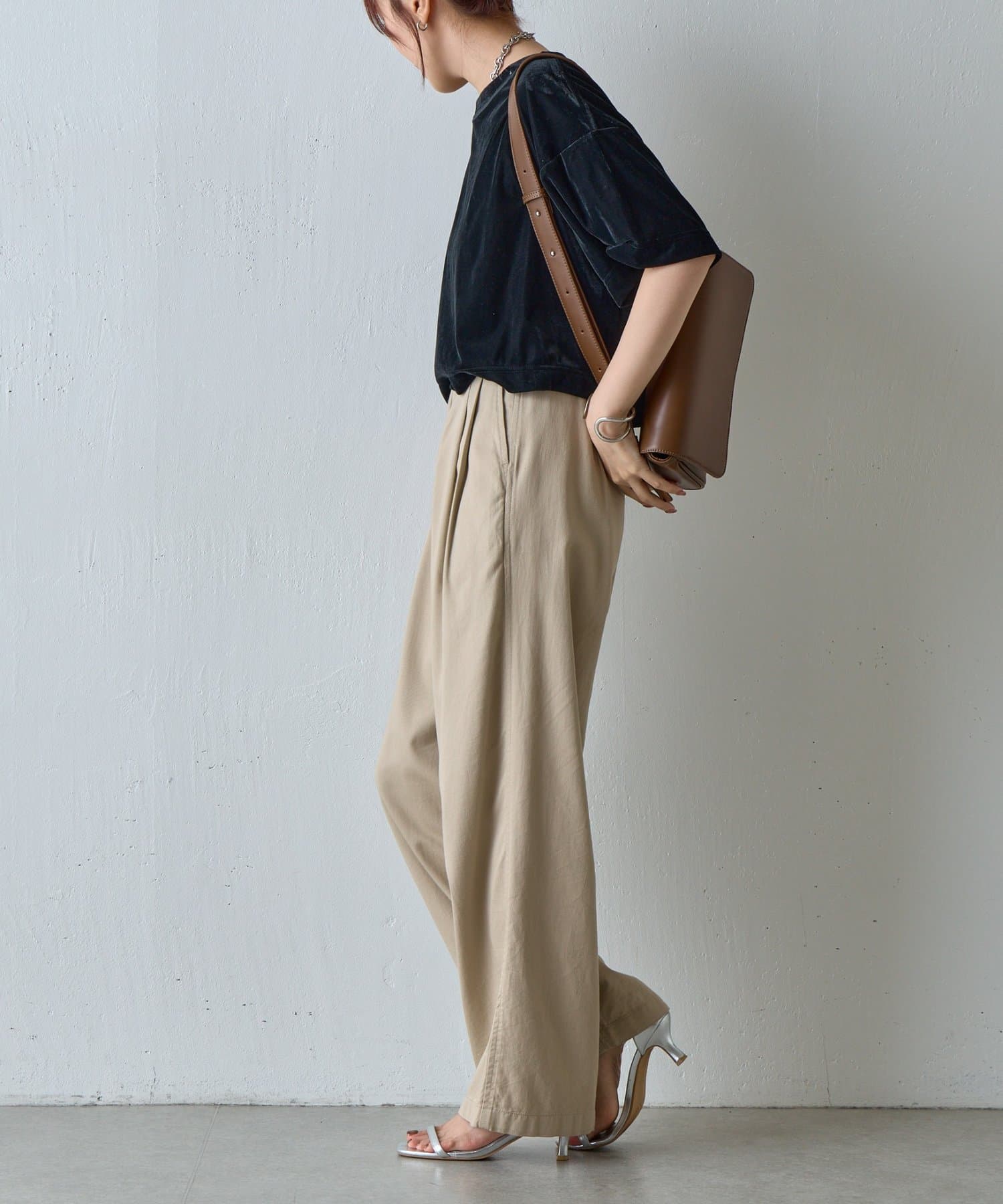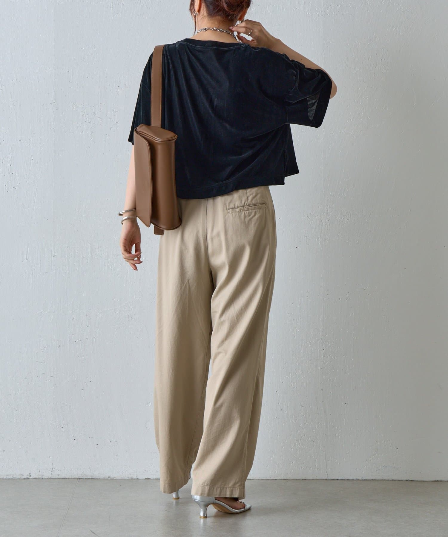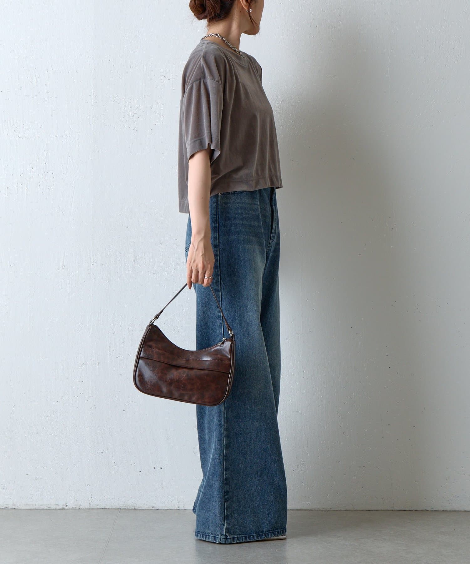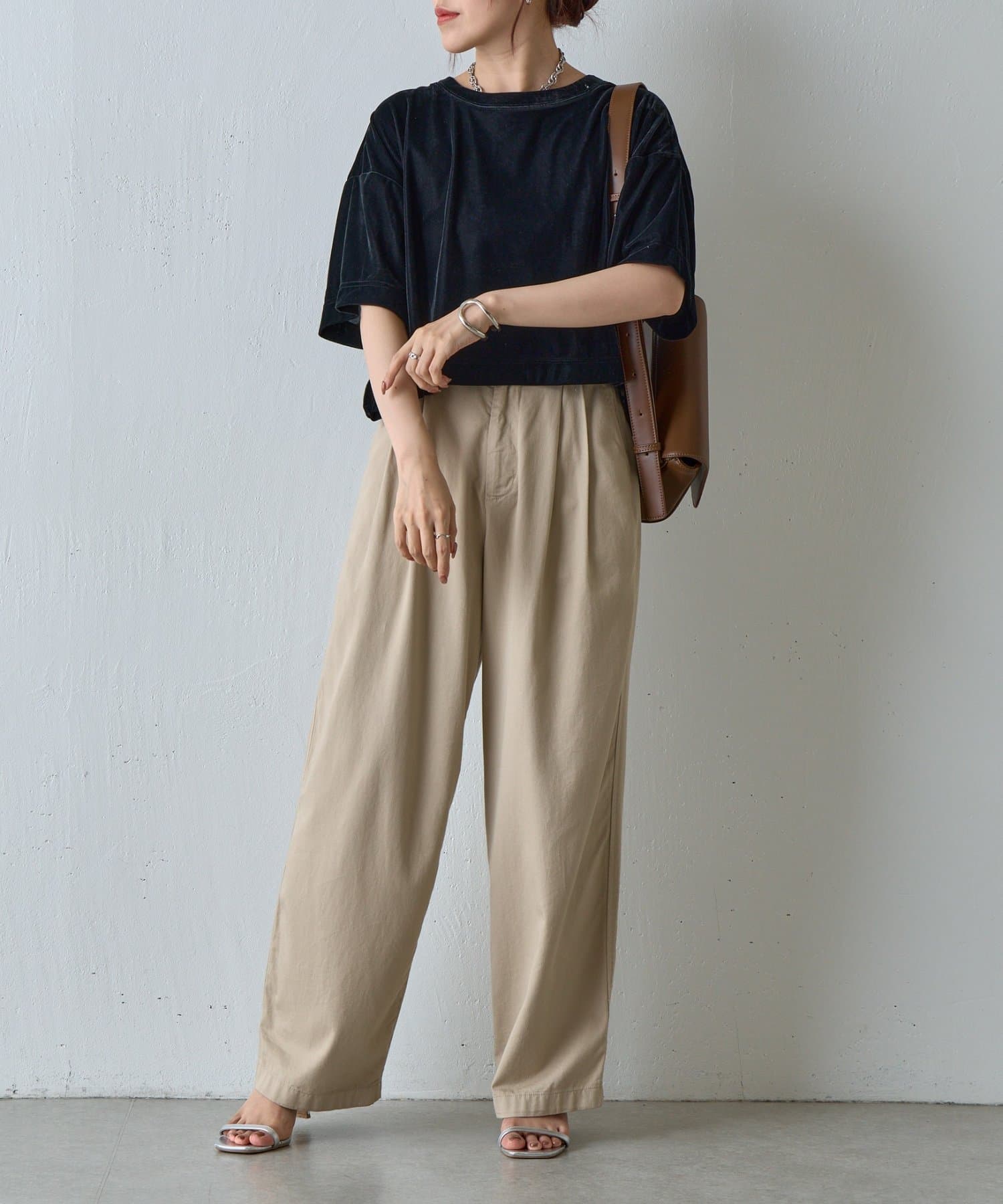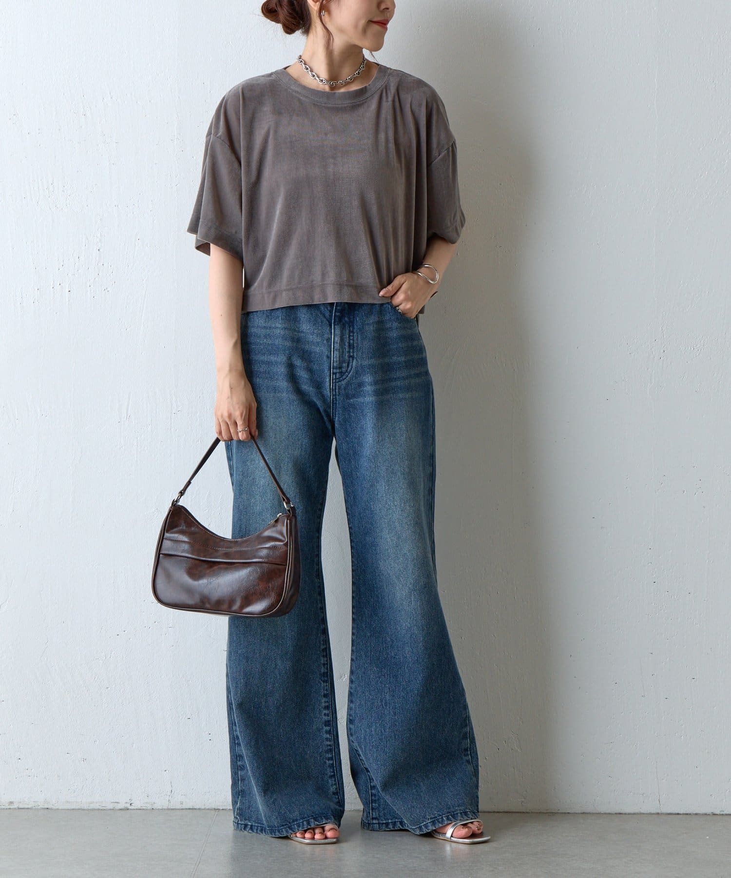 シアーベロアワイドクロップドTシャツ
