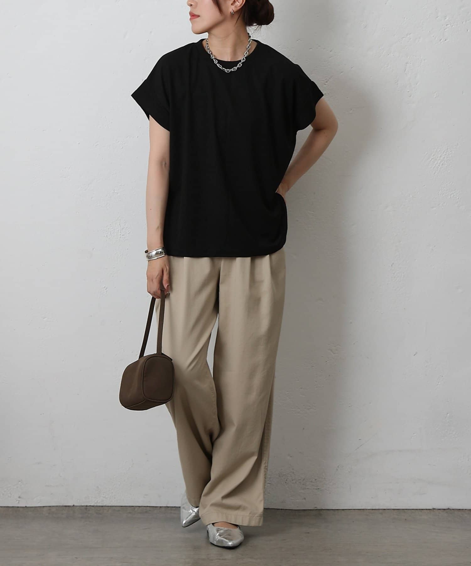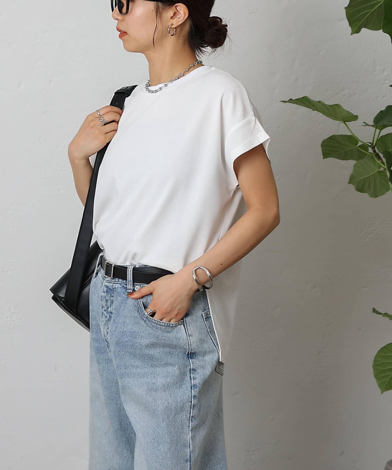 "快適な着心地でカジュアルなのにどこか上品”そんな理想を叶えるミニワッフルフレンチプルオーバーが登場。表面感のあるミニワッフル素材は、さらっとした肌触りで夏でも快適なので、暑い日もべたつかず、心地よく過ごせるのが嬉しいポイントです◎計算されたシルエットで、ゆったりとした着心地ながらもすっきりと見えるので、スタイルアップ効果も抜群。気になる二の腕をさりげなくカバーしつつ、華奢見えが叶うフレンチスリーブにこだわりました。カジュアルながらも繊細なワッフル生地が上品な印象なので、オフィスにも、休日のリラックススタイルにも、シーンを選ばず活躍します。合わせやすいシンプルなカラーなので、どんなコーディネートにも相性抜群。デニムと合わせてカジュアルに、スカートと合わせてフェミニンに、オフィススタイルにもおすすめです◎さりげないサイドスリットが、おしゃれ度を格上げ。抜け感をプラスすることで、重くなりがちなワントーンコーデも軽やかに仕上がります。合わせるアイテム次第で、オンオフ問わず幅広いシーンで活躍する頼れる1着。
