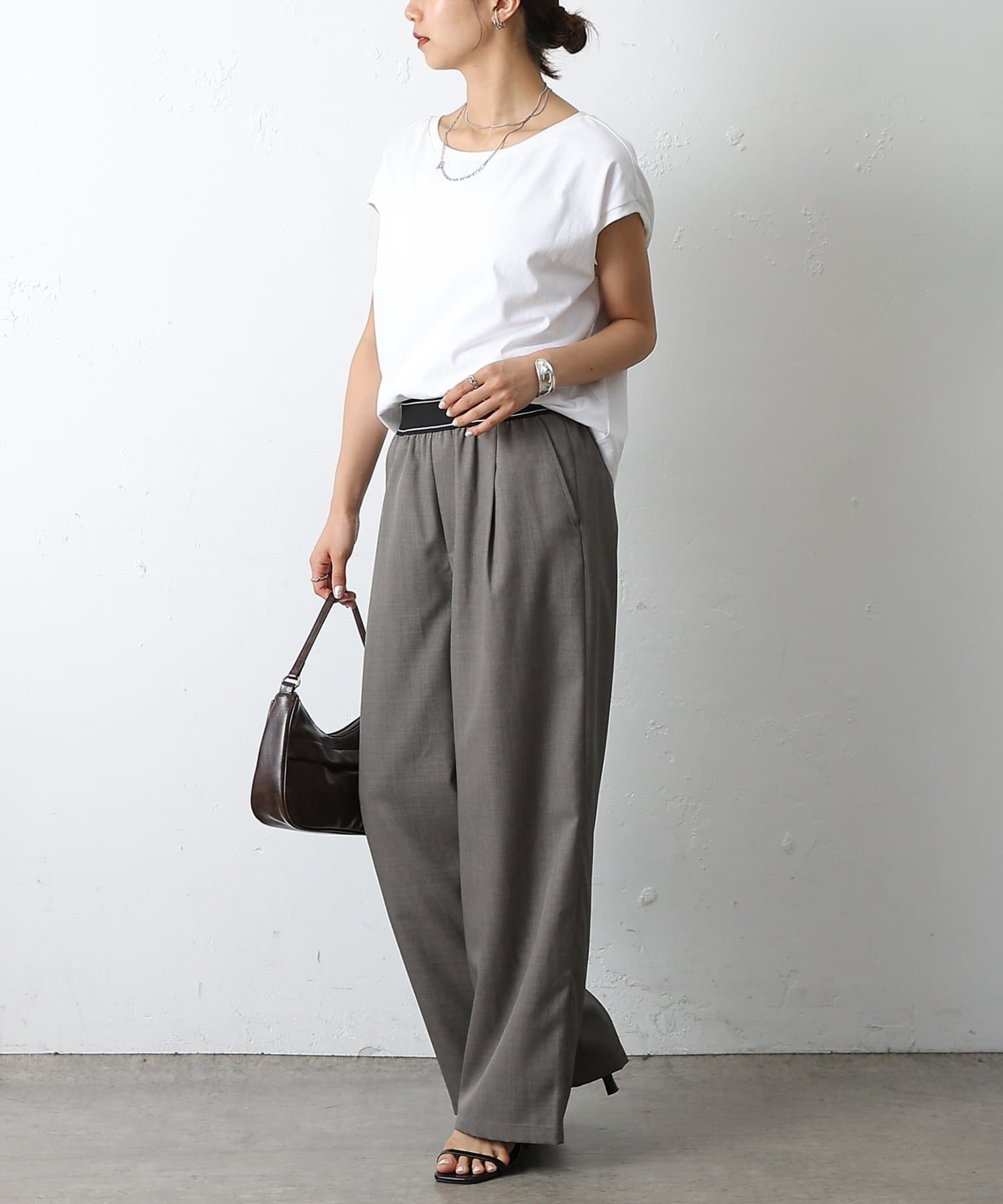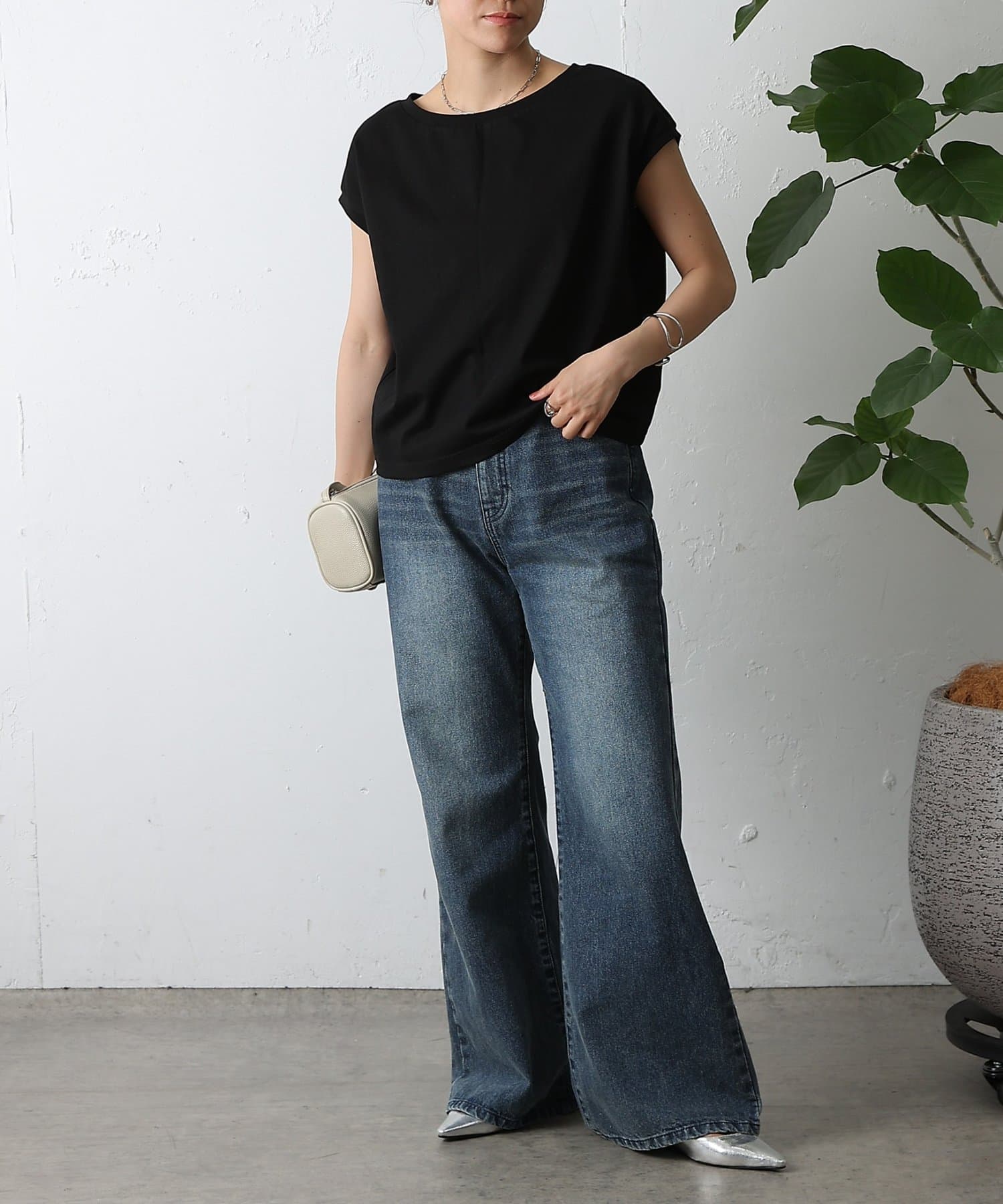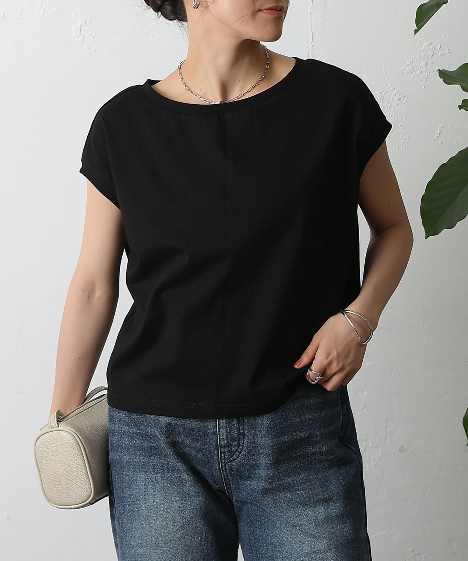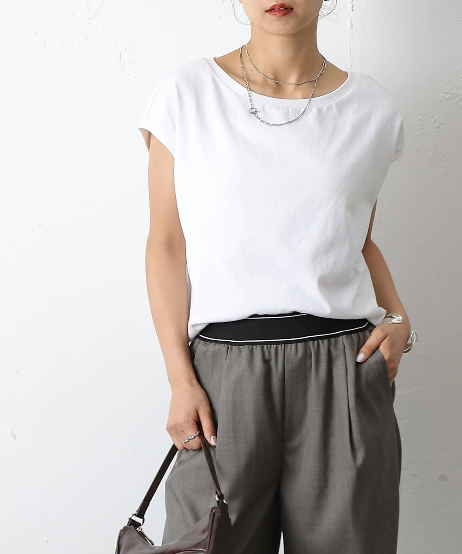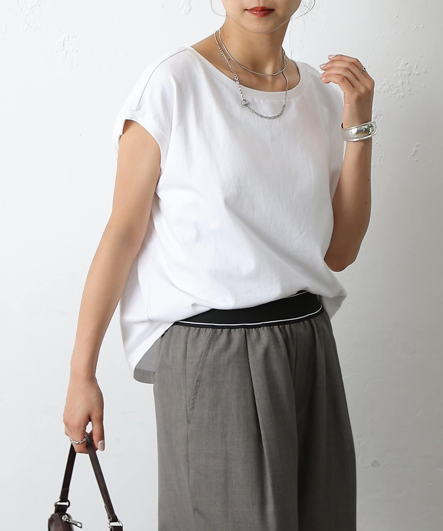 着心地の良さと着回しやすさを追求したフレンチスリーブトップスが登場しました。ゆるっとしたシルエットは、気になる体型をカバーしつつ、女性らしい華奢な印象を与えてくれます。計算された丈感とスタイルアップ見えするヘムのラインでどんなボトムスとも相性抜群。柔らかい生地感でストレスフリーな着心地なので、デイリーユースもおすすめです◎オフィススタイルから、休日のカジュアルスタイルまで、シーンを選ばず着回せるのが嬉しいポイント。