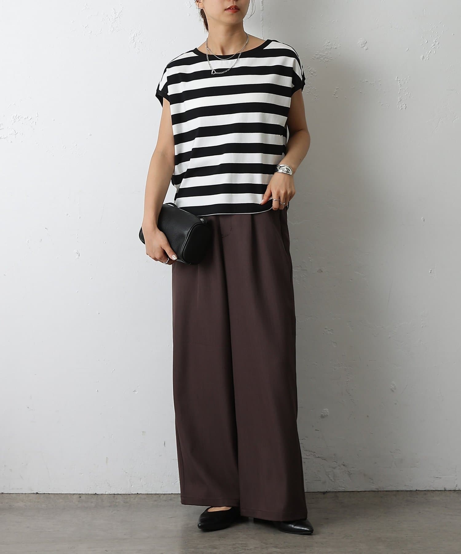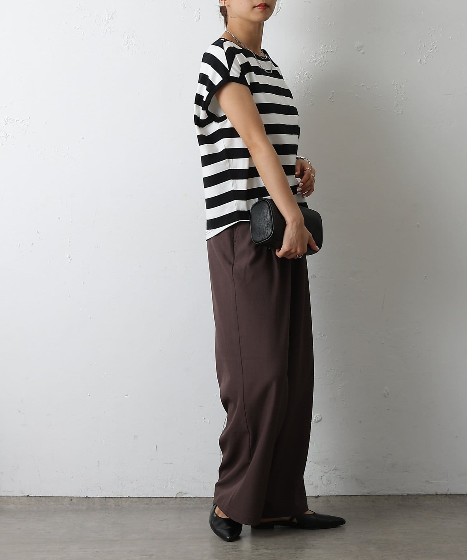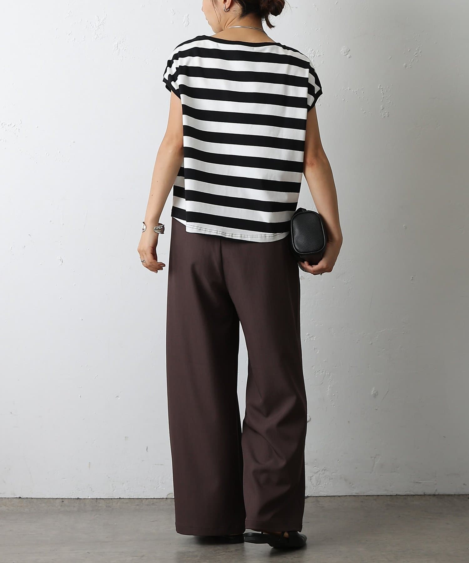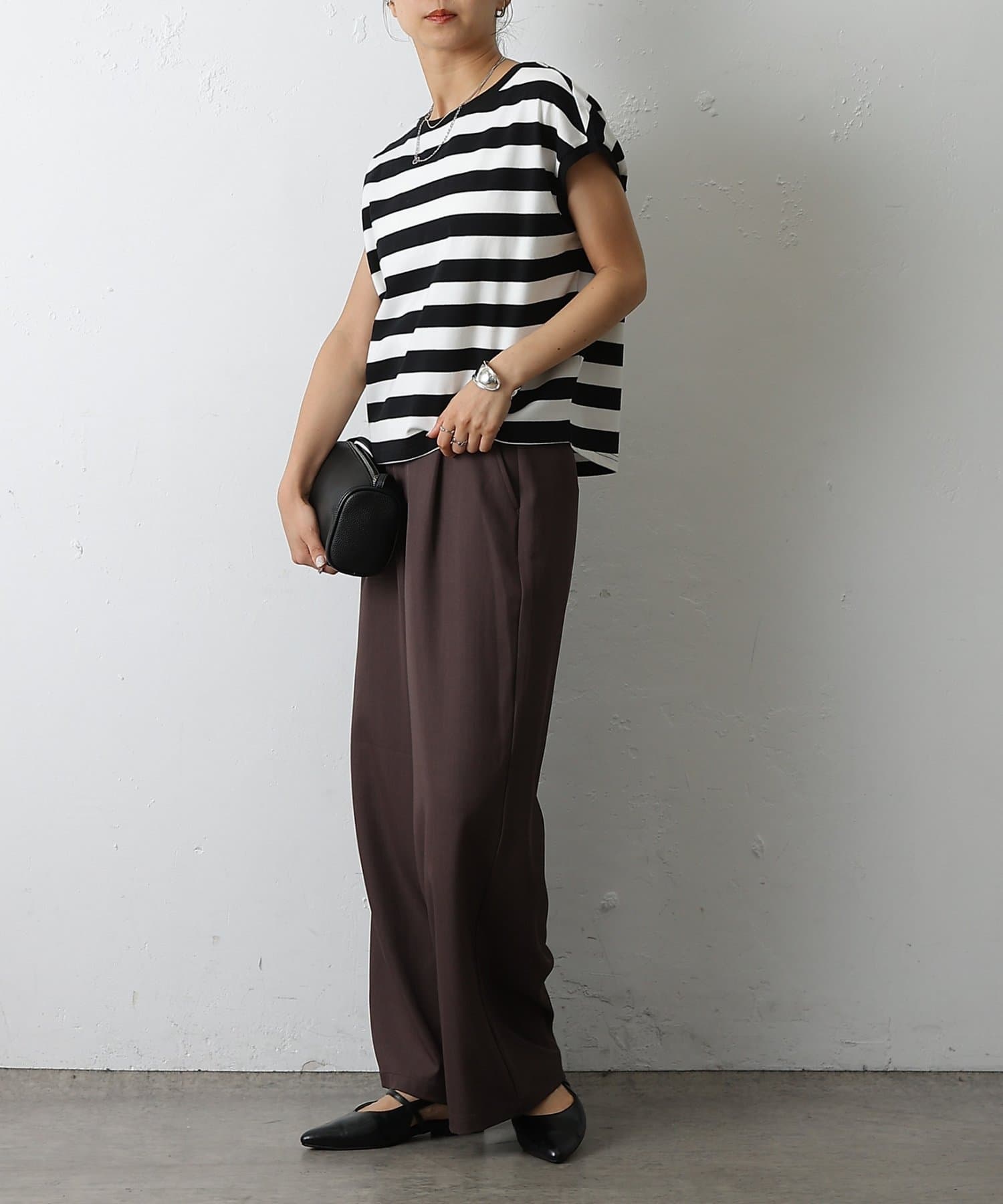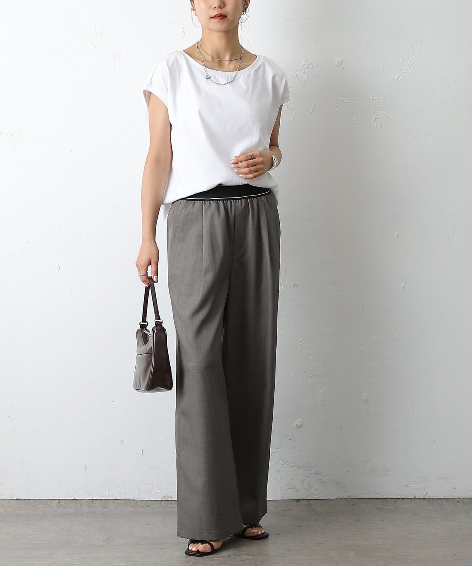 着心地の良さと着回しやすさを追求したフレンチスリーブトップスが登場しました。ゆるっとしたシルエットは、気になる体型をカバーしつつ、女性らしい華奢な印象を与えてくれます。計算された丈感とスタイルアップ見えするヘムのラインでどんなボトムスとも相性抜群。柔らかい生地感でストレスフリーな着心地なので、デイリーユースもおすすめです◎オフィススタイルから、休日のカジュアルスタイルまで、シーンを選ばず着回せるのが嬉しいポイント。
