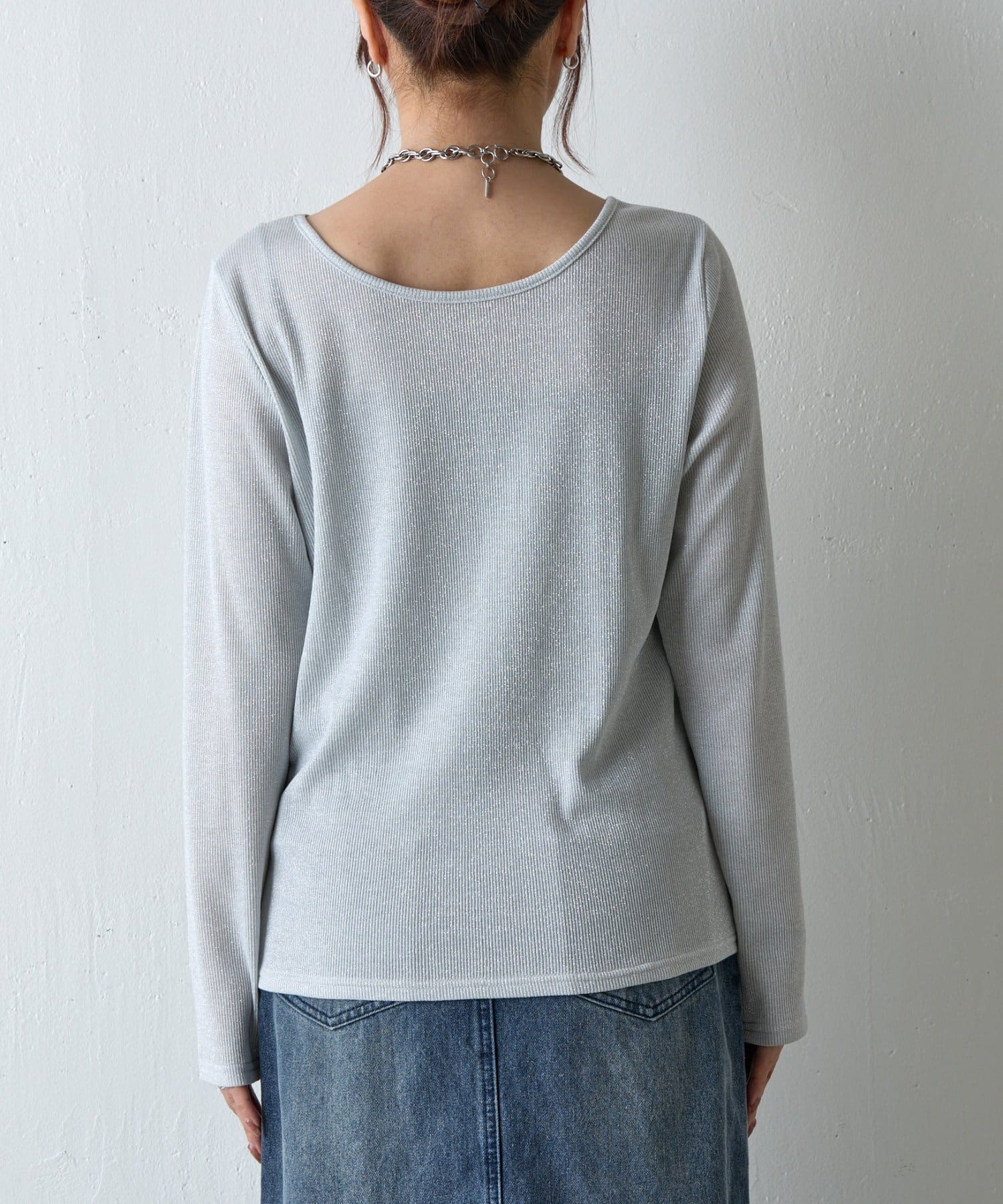 柔らかなフライス素材に繊細なラメを織り込んだ、着心地と華やかさを兼ね備えた一枚です。