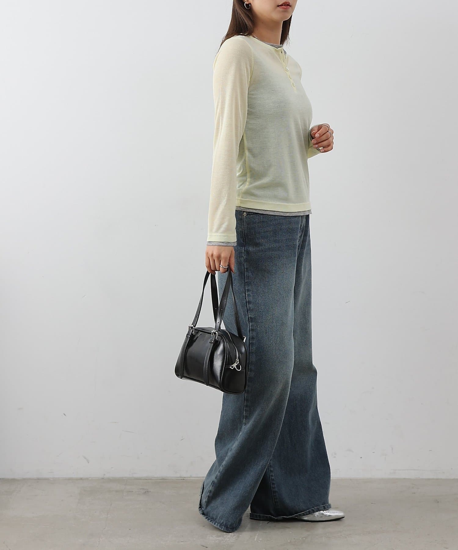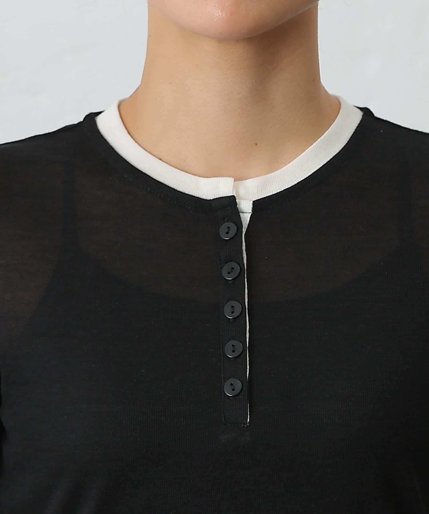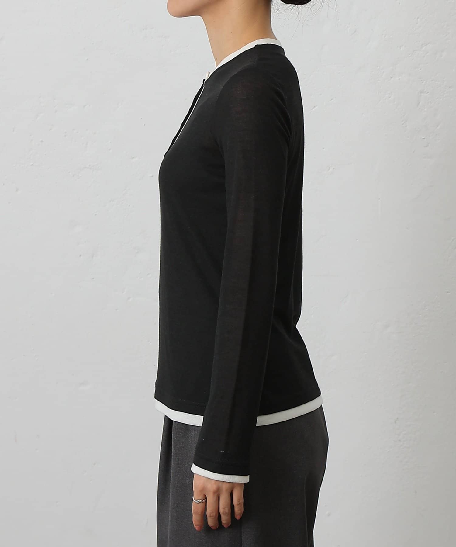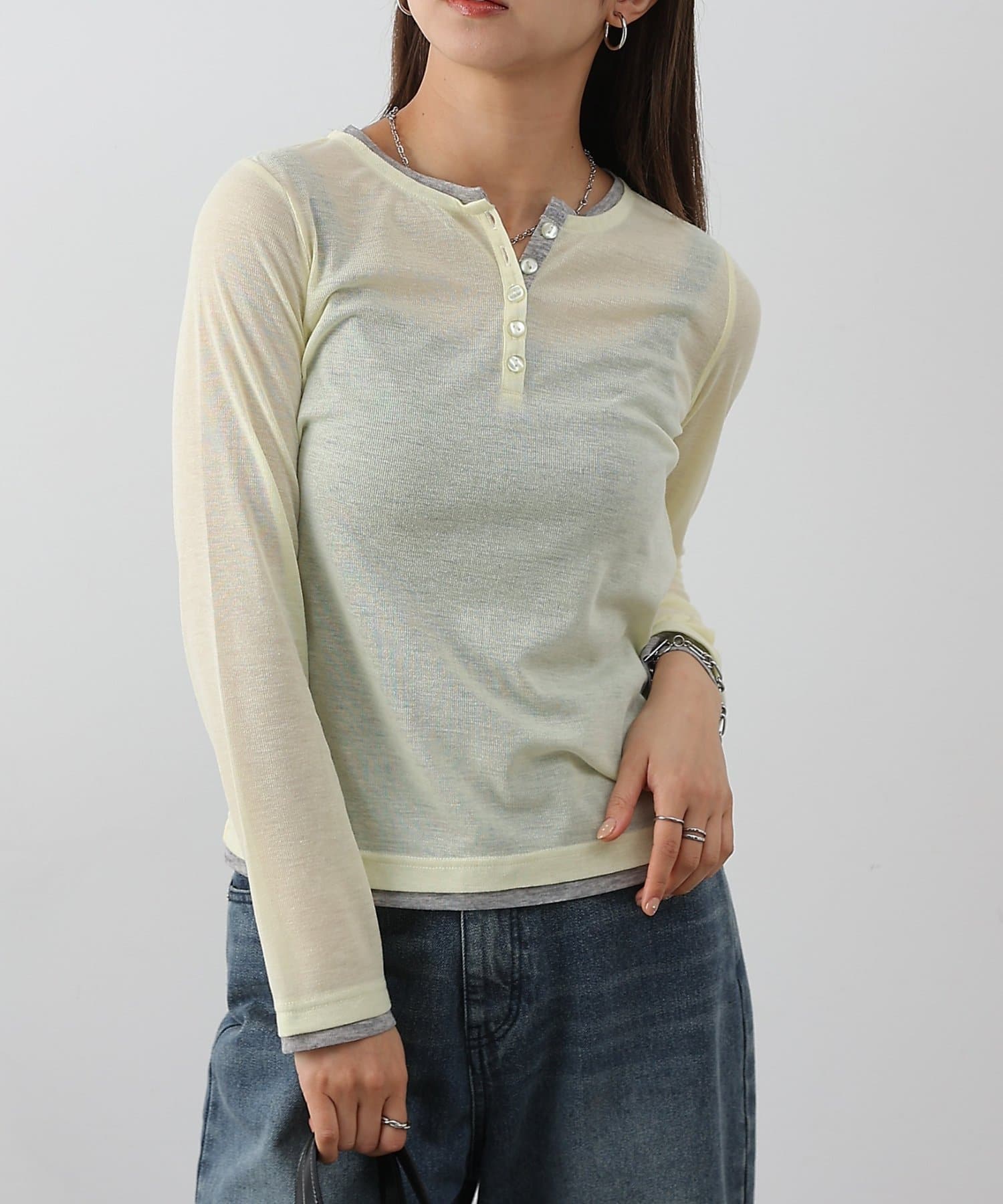 【1枚でレイヤード上手に、フェイクレイヤード×ヘンリーネックトップス】