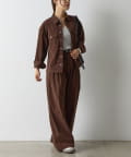 同素材のジャケットと合わせれば、こなれ感たっぷりのセットアップスタイルが完成。