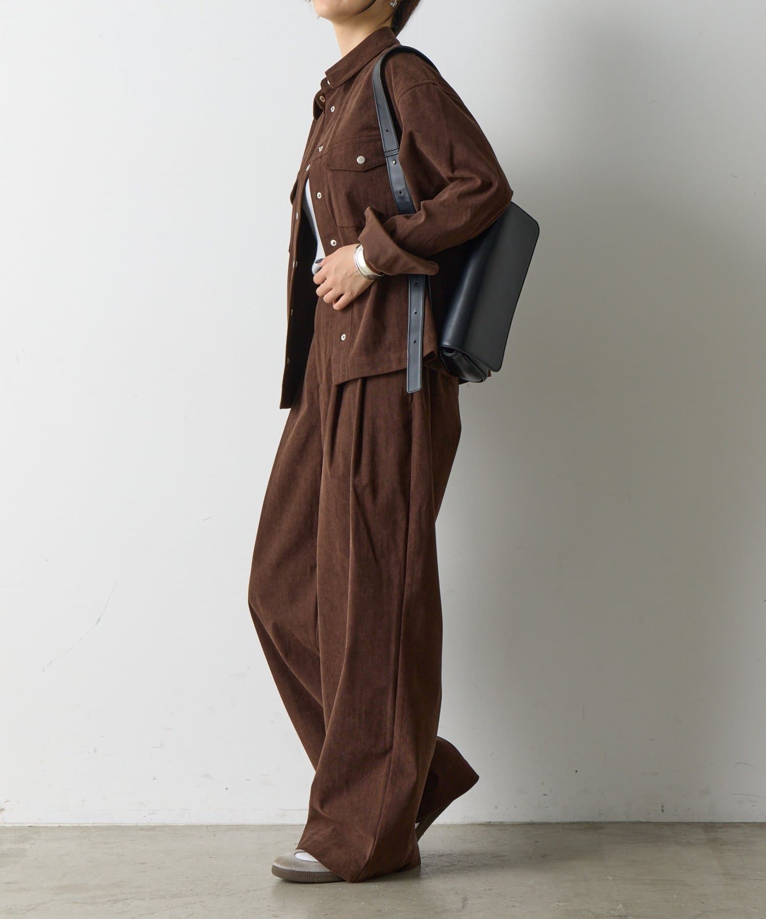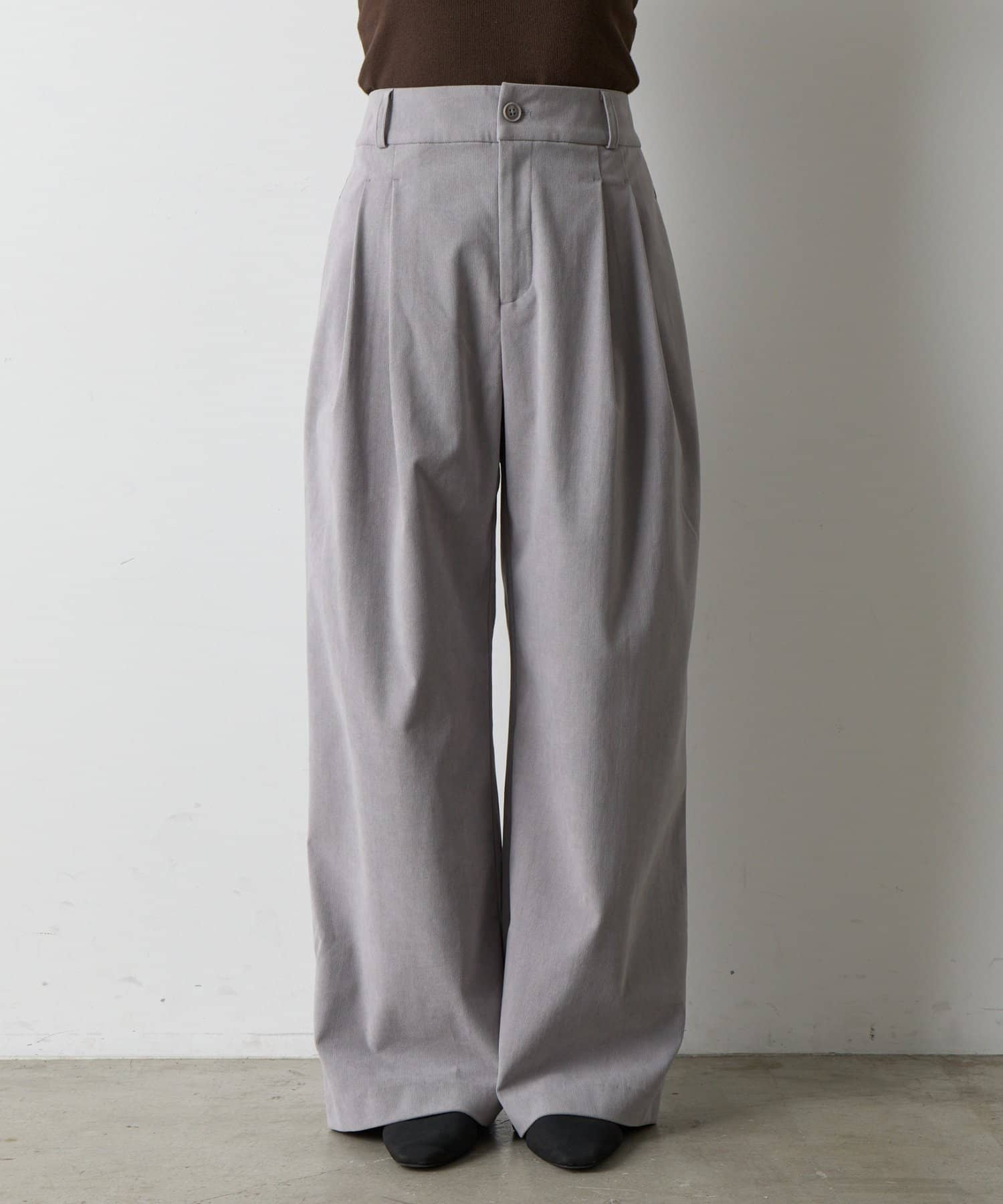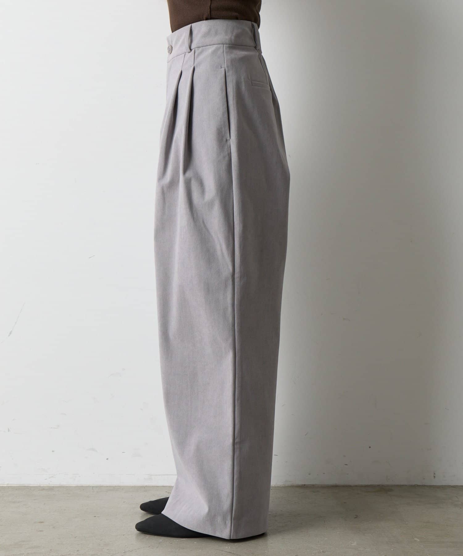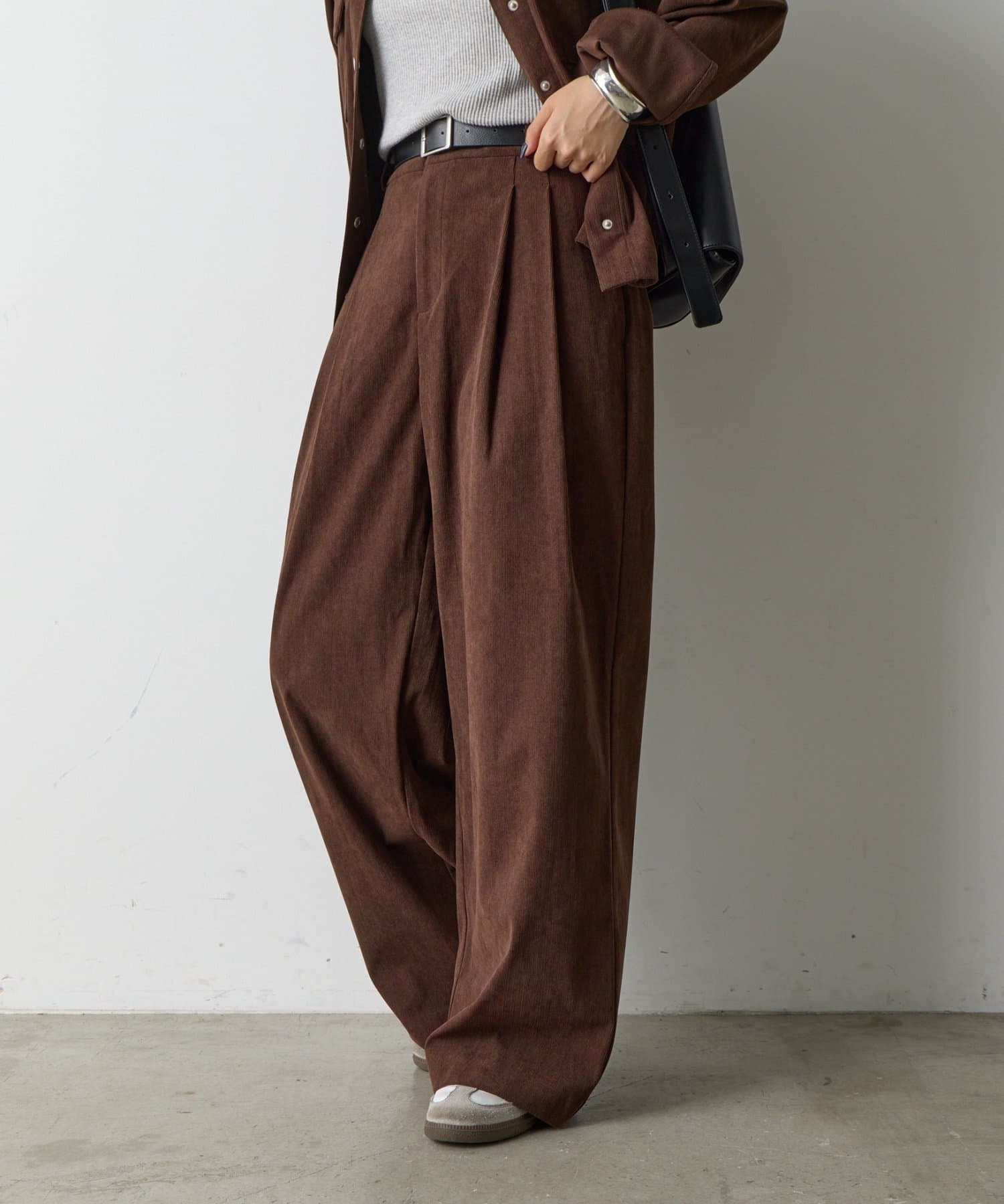 秋冬のトレンドを牽引するコーデュロイ素材で仕立てた、大人の女性のためのワイドパンツが登場。