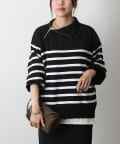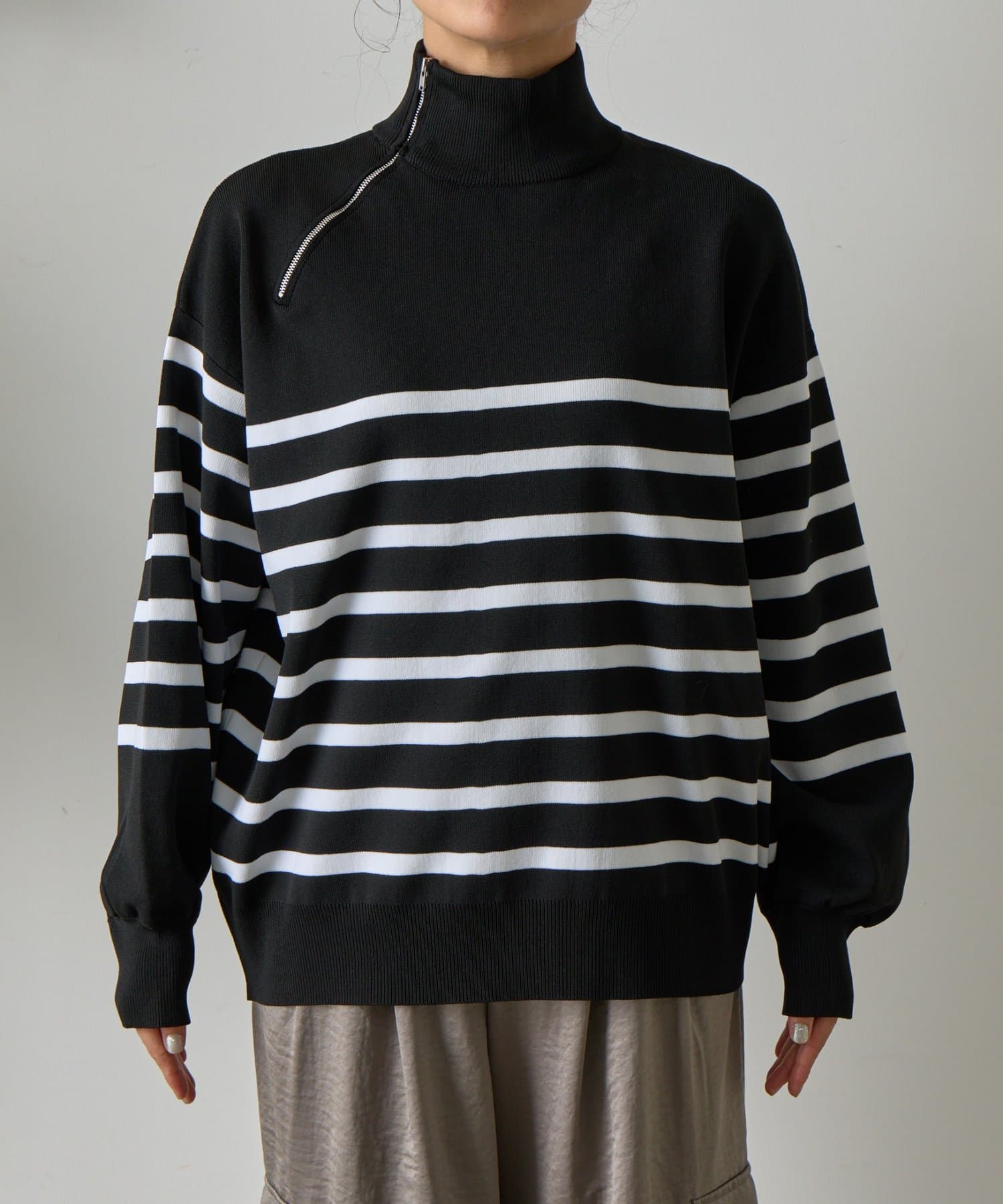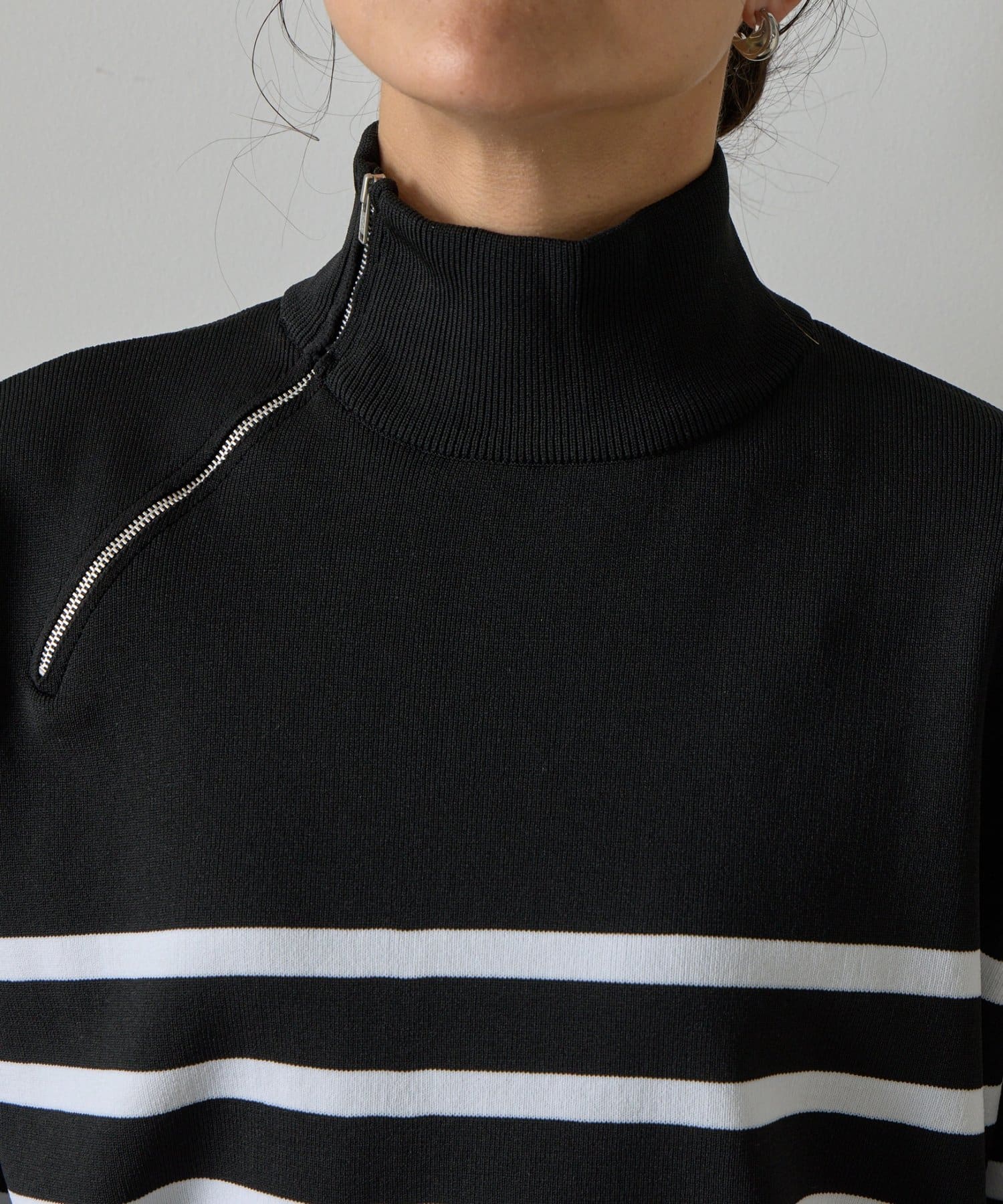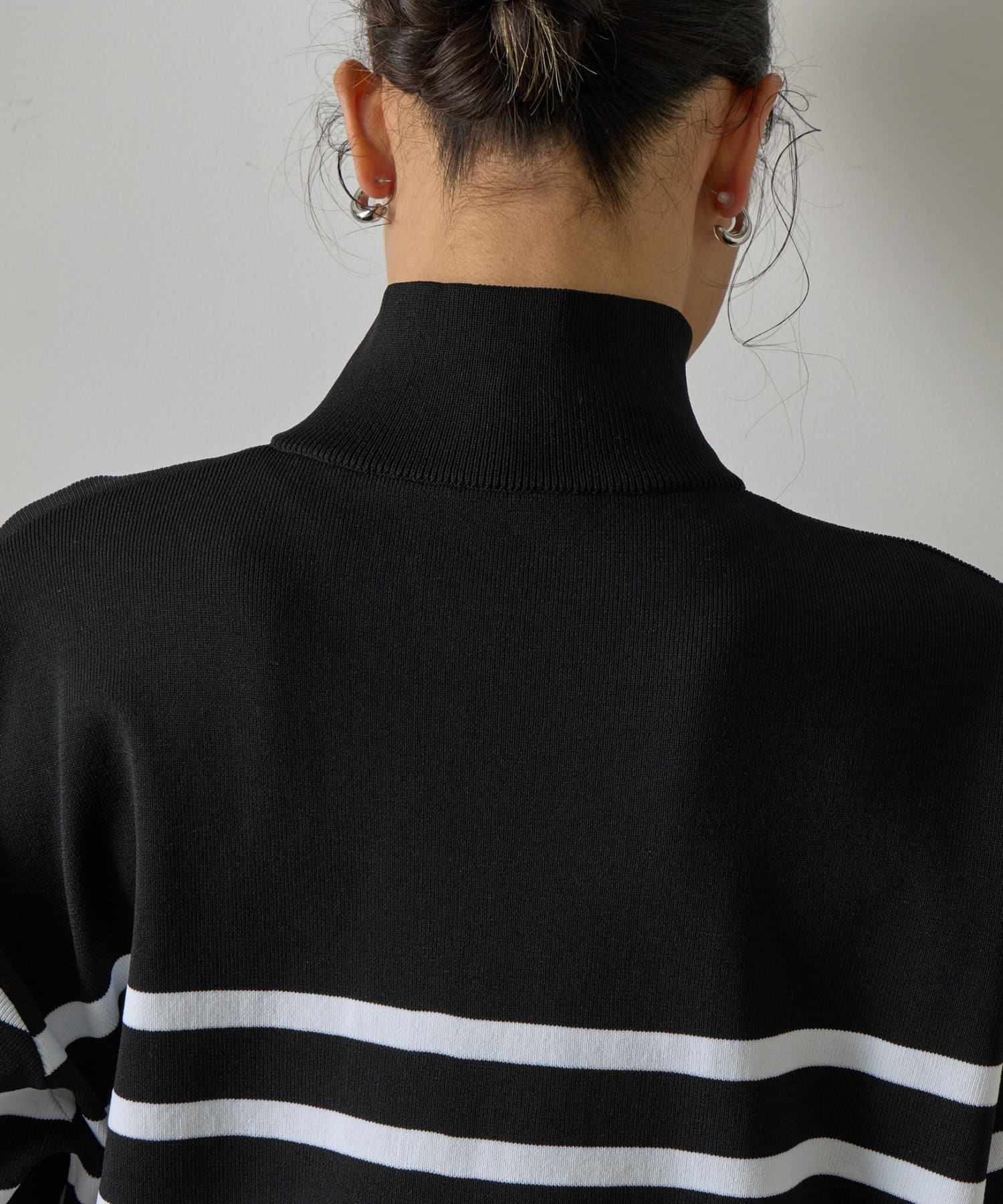 エステルヤーンサイドネックジップボーダーニット