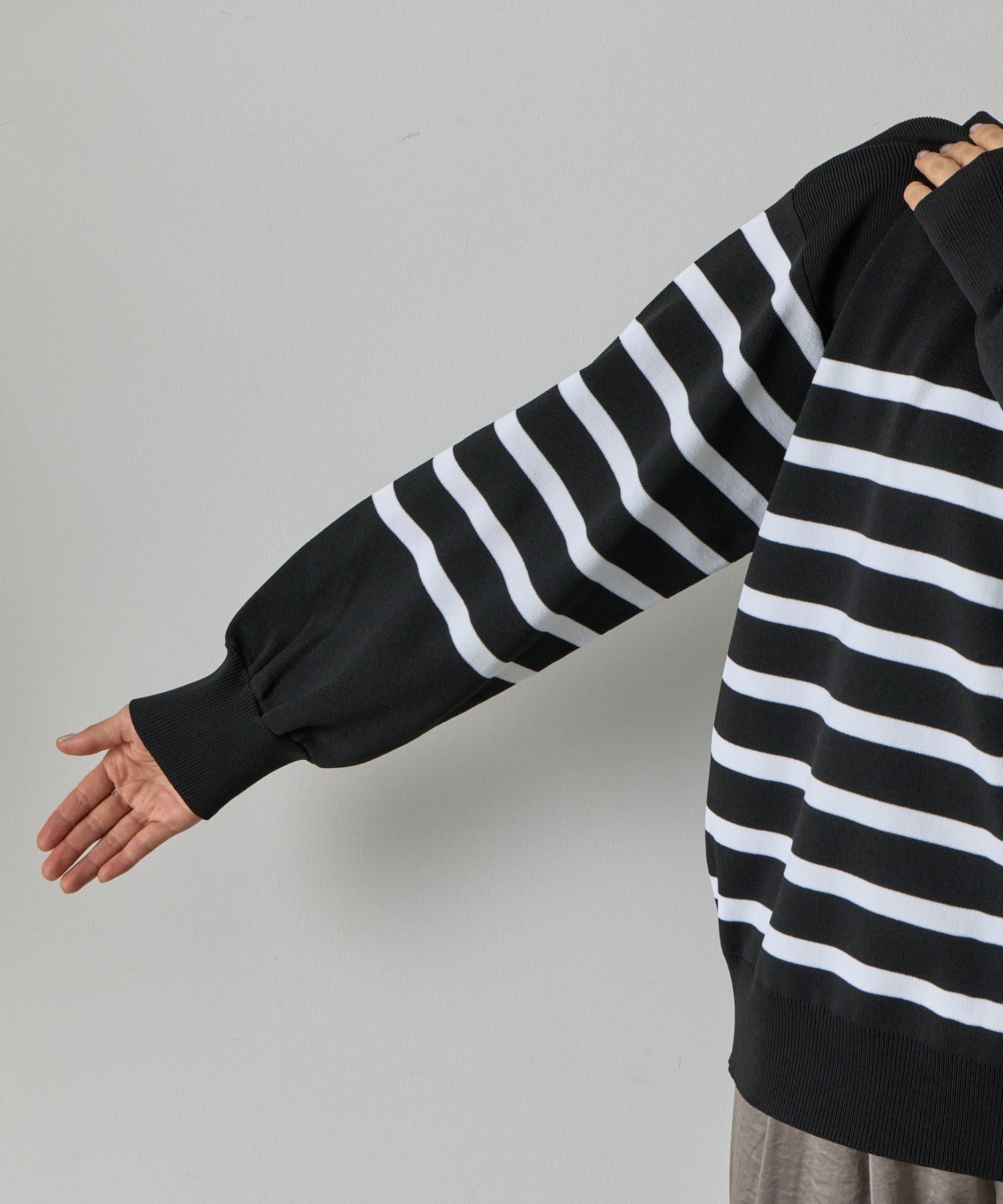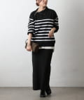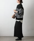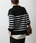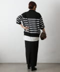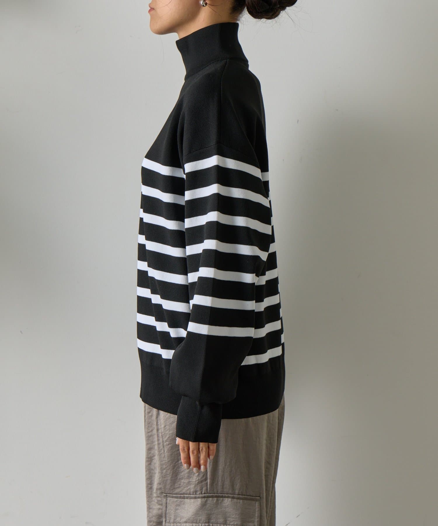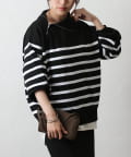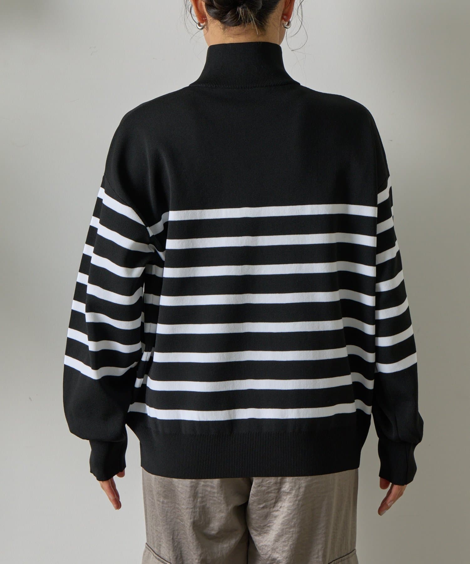エステルヤーンサイドネックジップボーダーニット