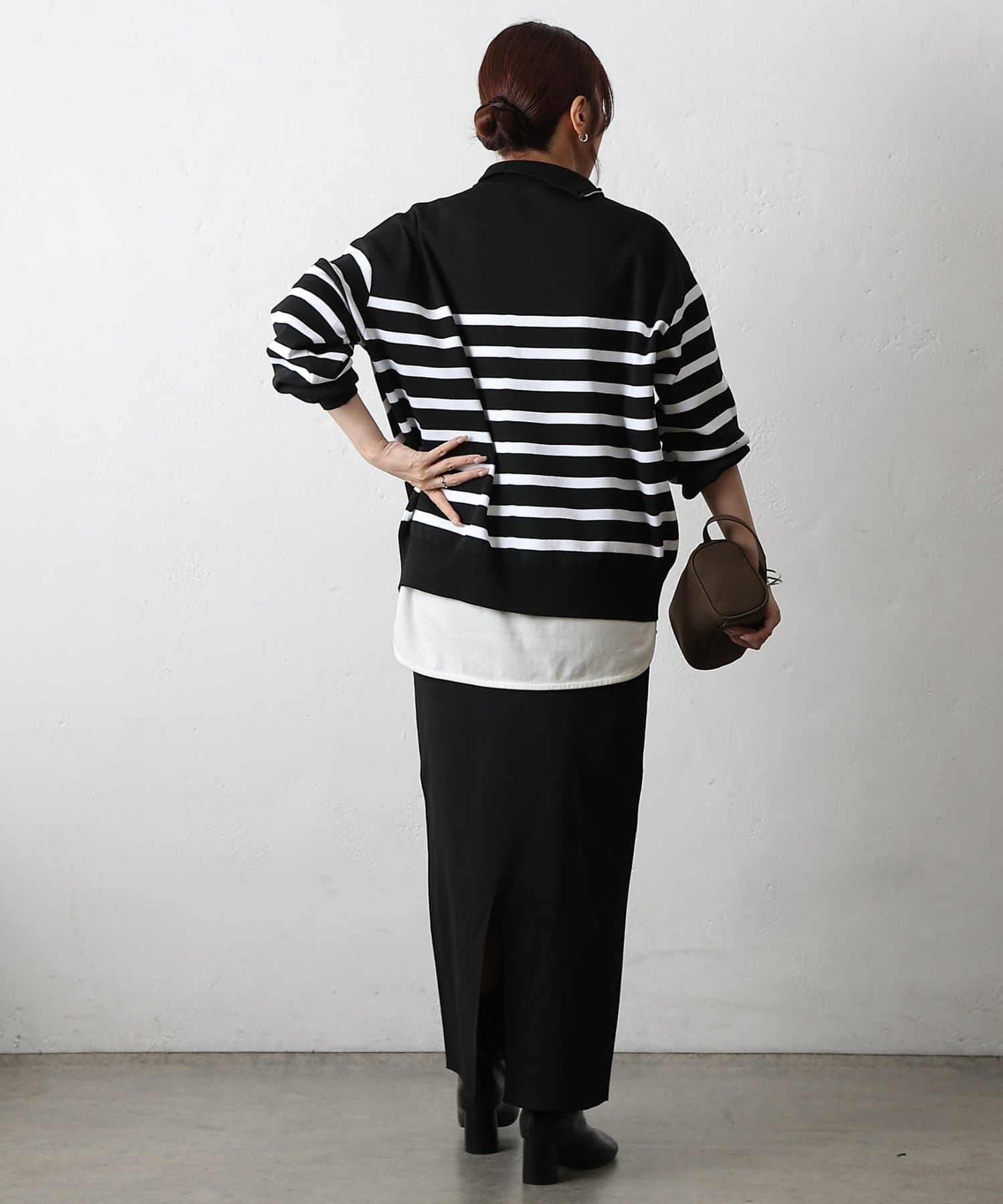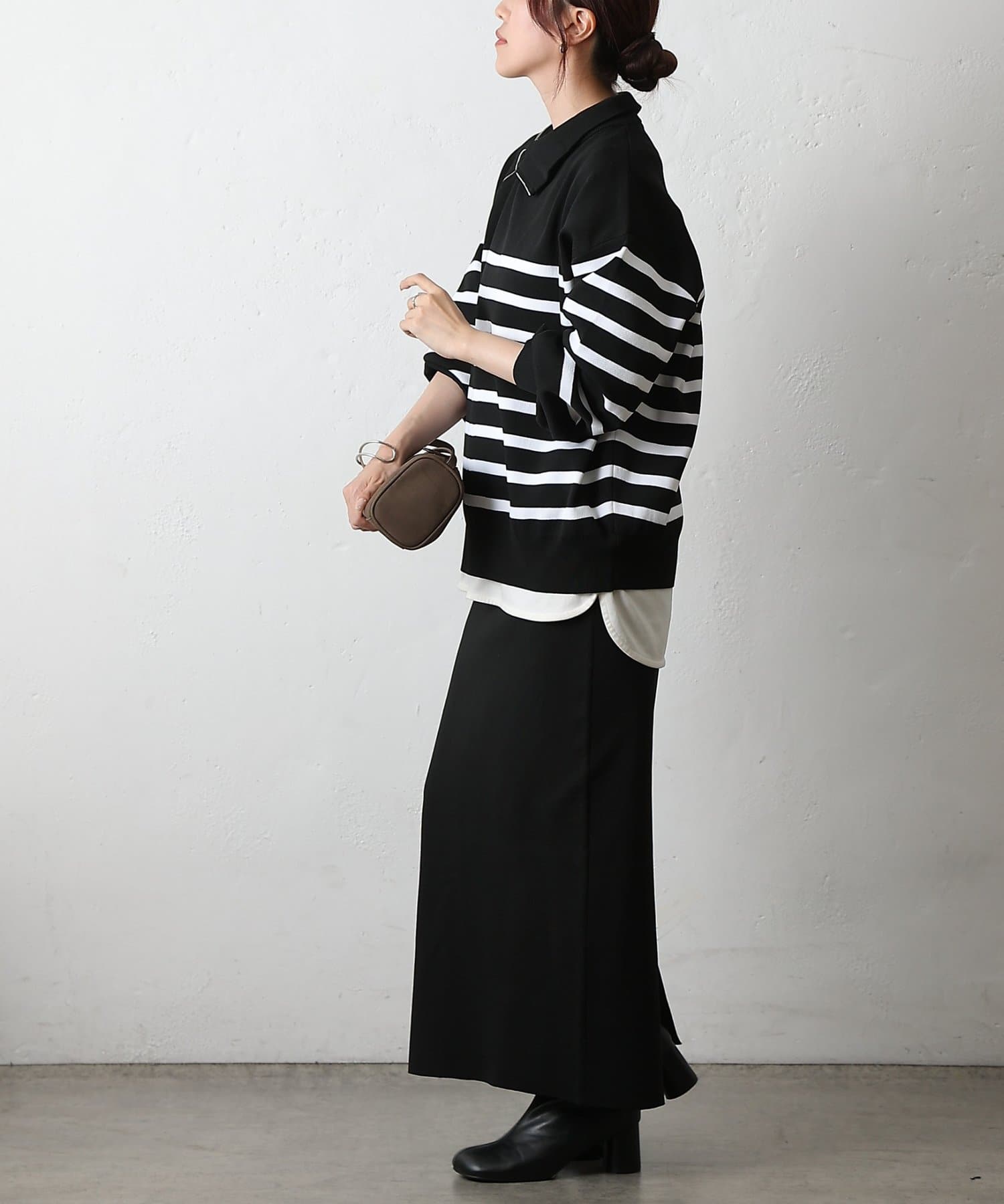 柔らかくストレッチのきく生地感と、少しゆとりのあるサイズ感でストレスフリーに着ていただけます。