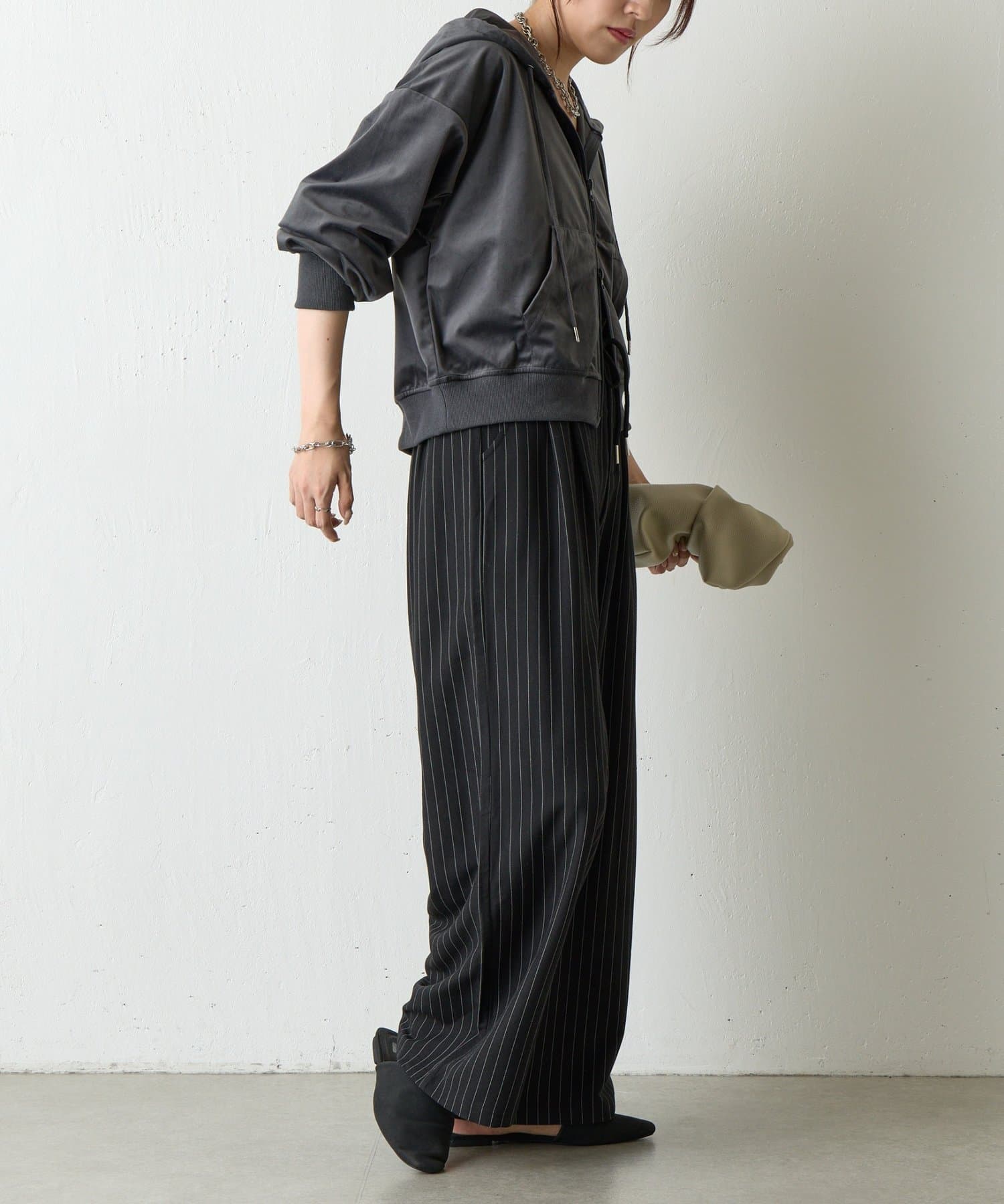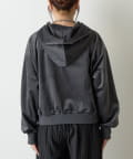 定番のパーカーデザインに、光の当たり具合でさりげなく表情が変わる素材感をプラスすることで、