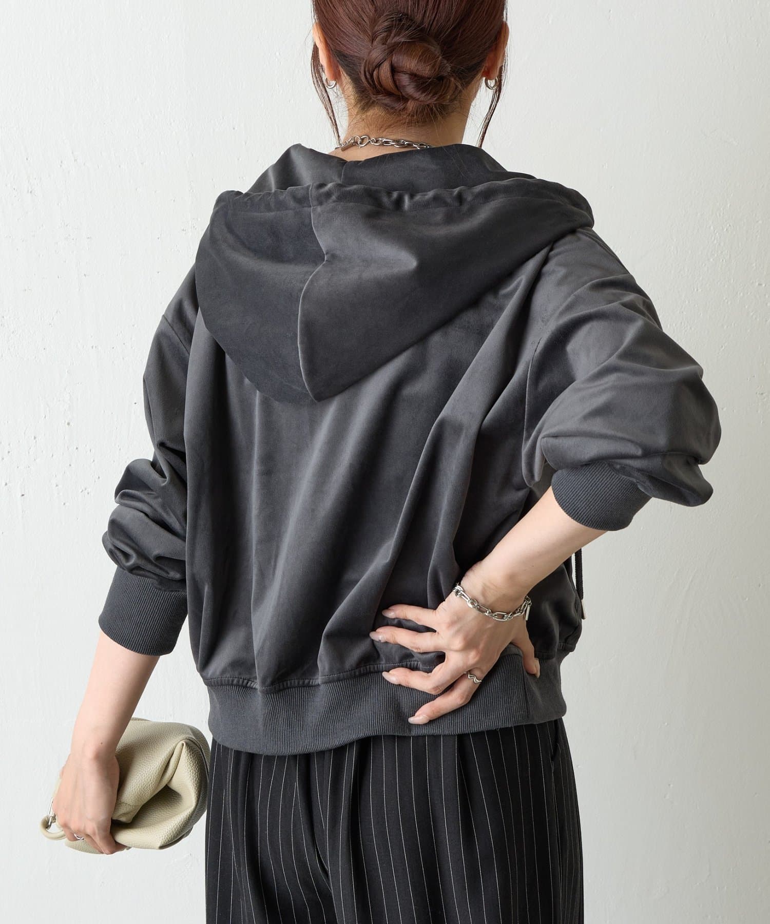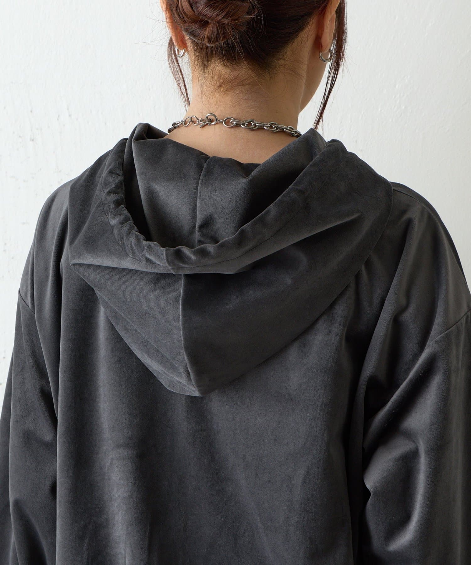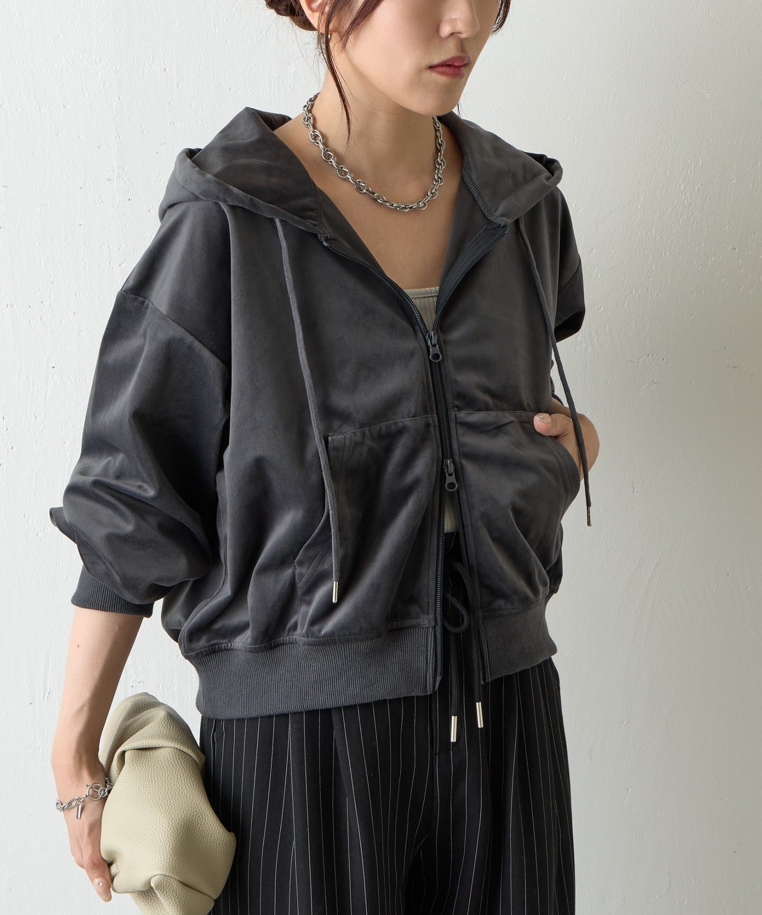 【大人のリラックス感を演出、ベロア素材の上質パーカー】