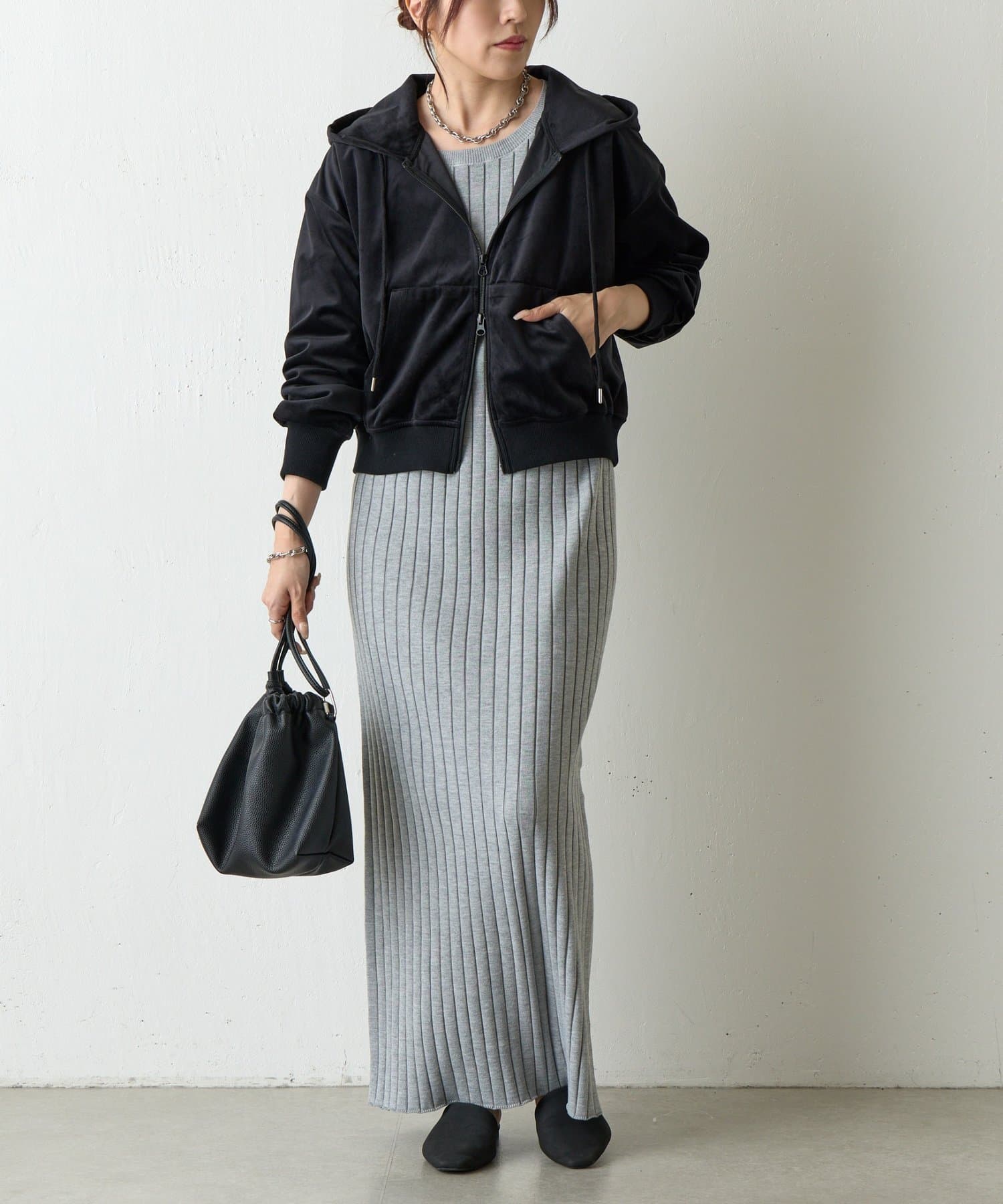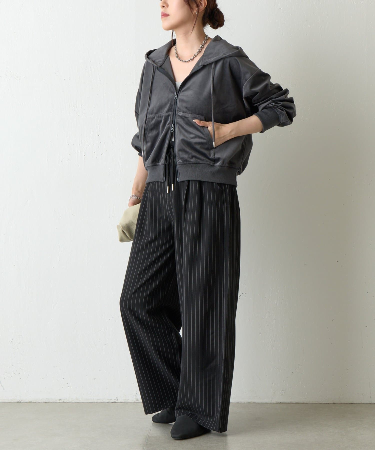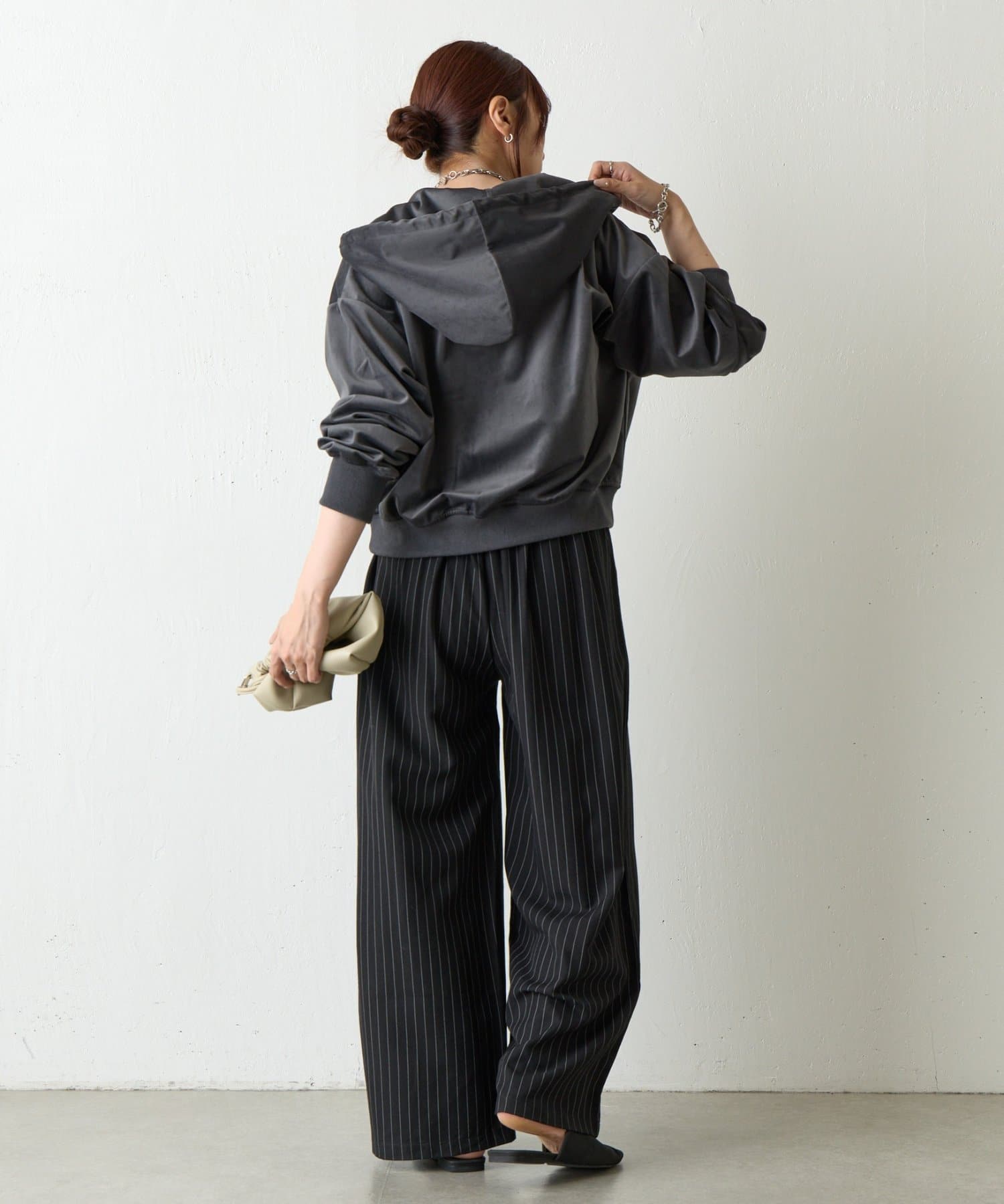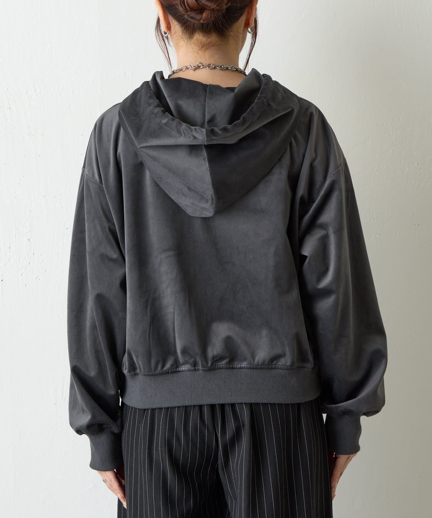 【大人のリラックス感を演出、ベロア素材の上質パーカー】